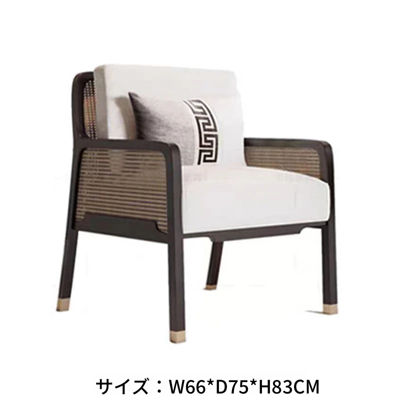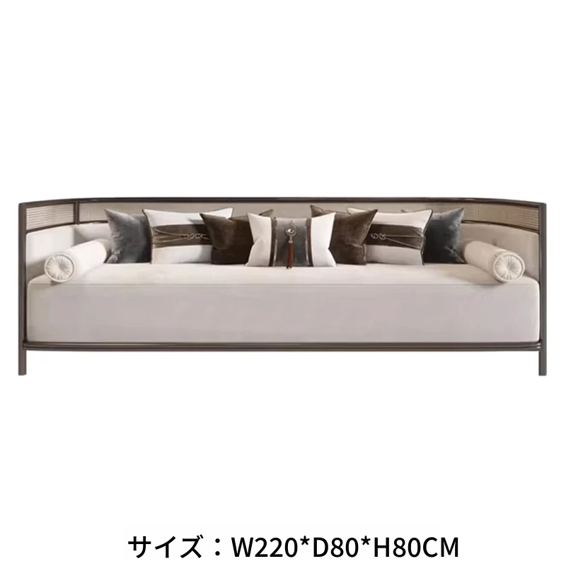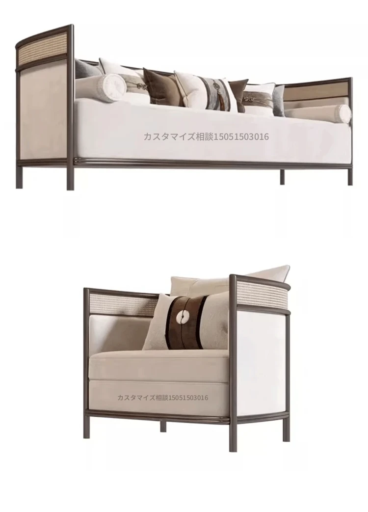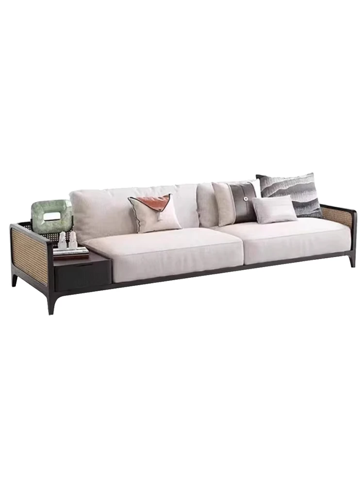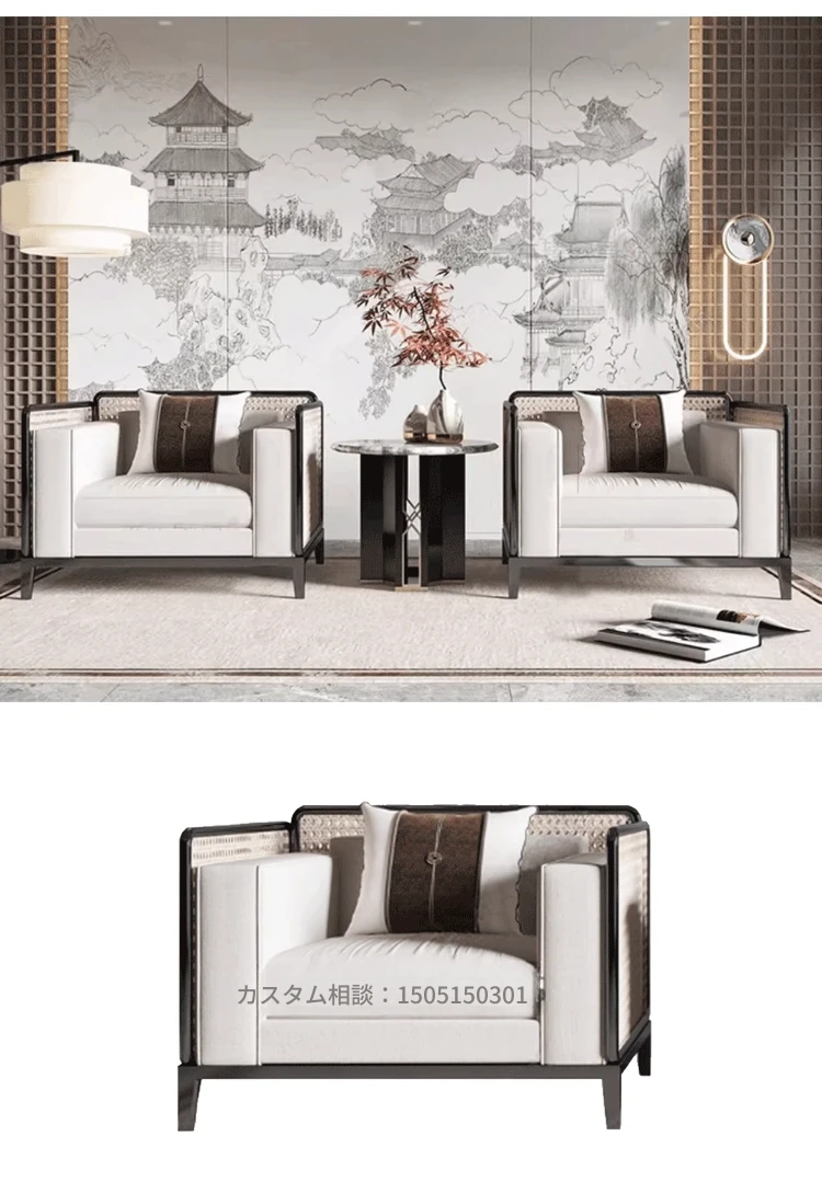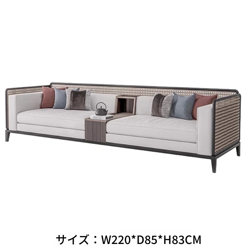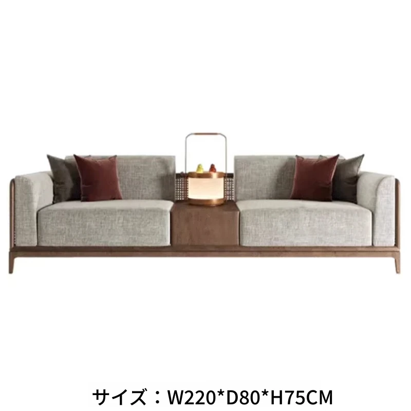 新中式スタイルの無垢材とラタン編みの3人掛けソファ - モダンな客室やホテルロビーにぴったりの北欧風リラックス接客ブース。洗練されたデザインで、居心地の良い空間を演出します!