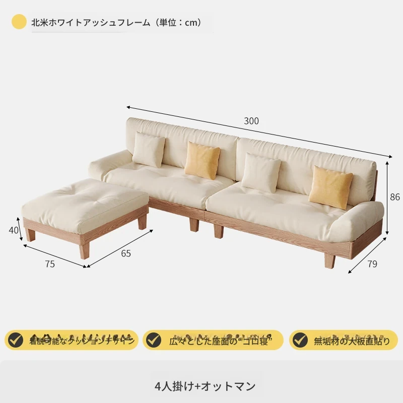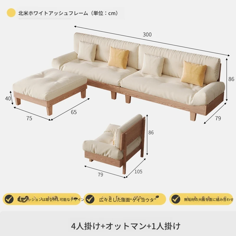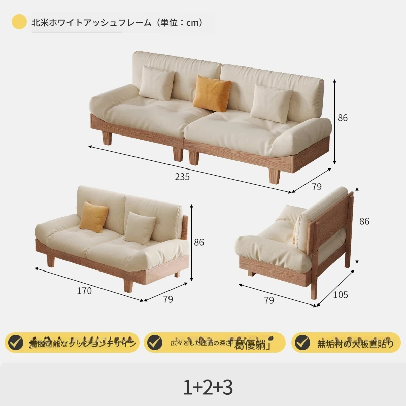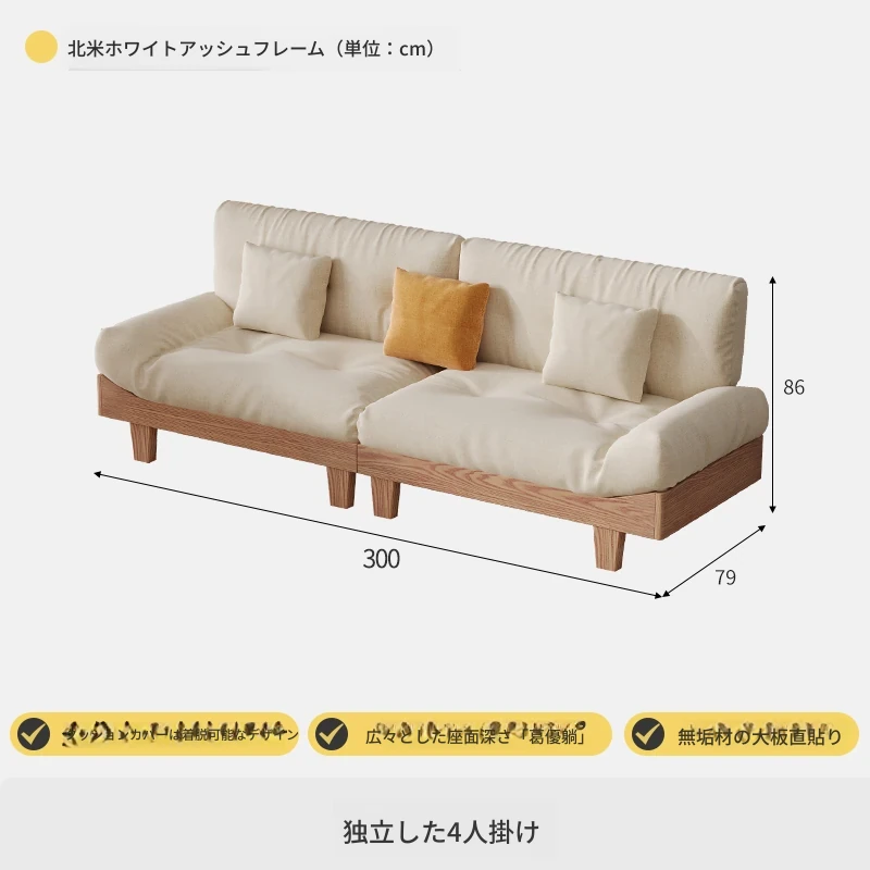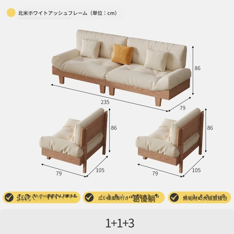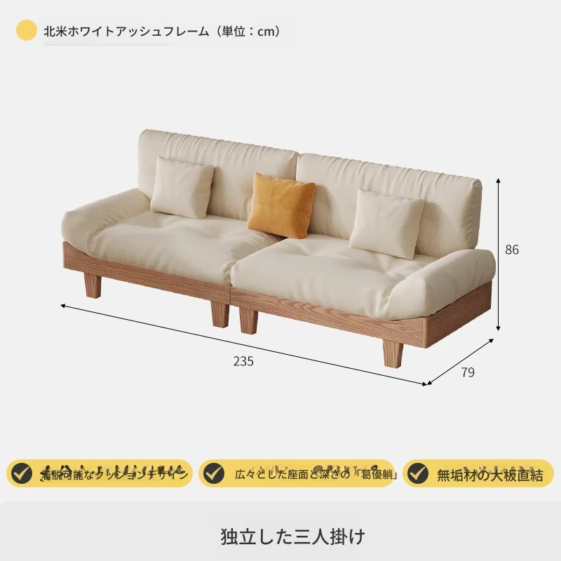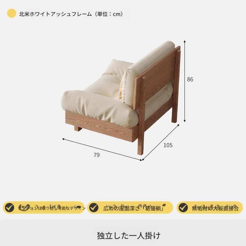 北欧スタイルのホワイトアッシュウッドクラウドソファ - 家庭用小型ハウスに最適!モダンでシンプルなデザイン、天然木とファブリックの組み合わせで、快適な羽毛ソファを実現しました。あなたのリビングにぴったりの一品です!