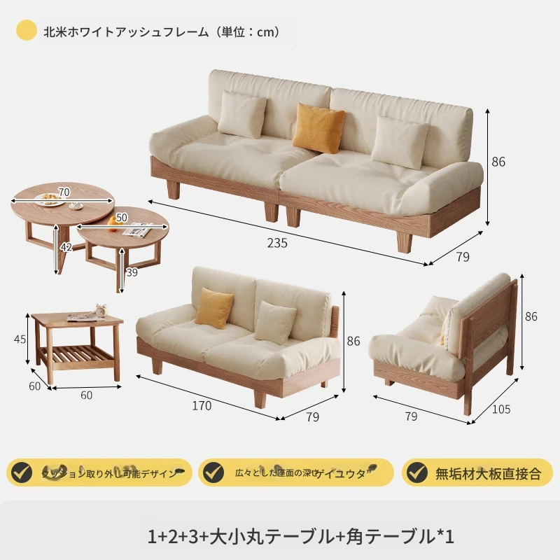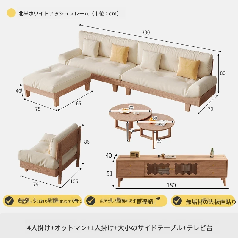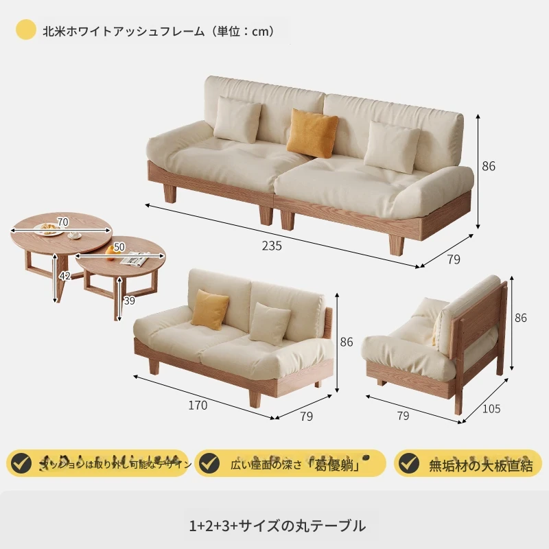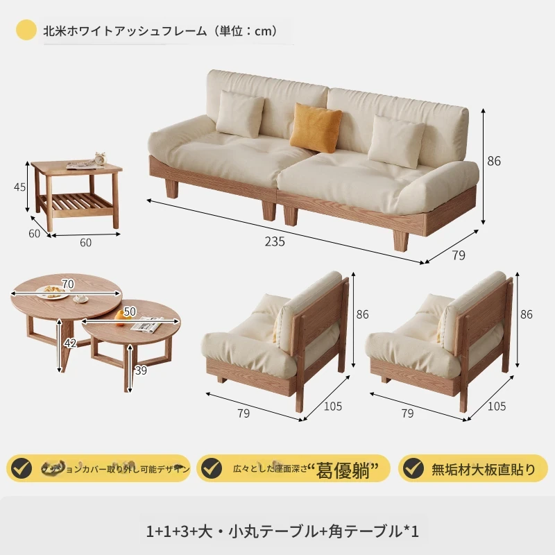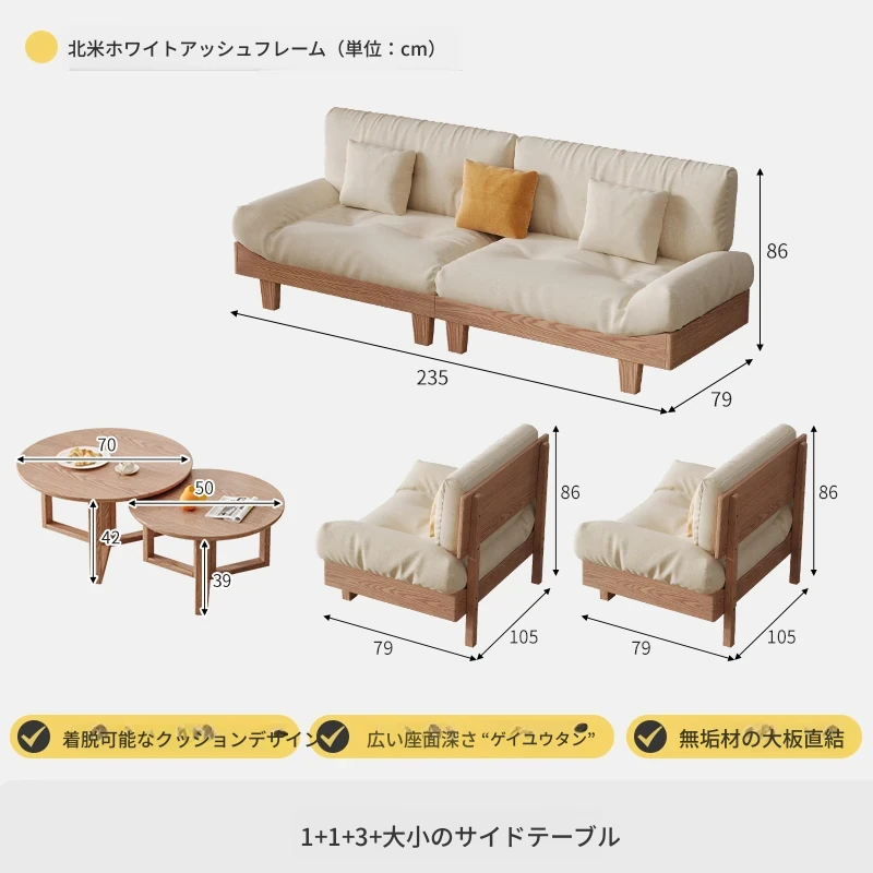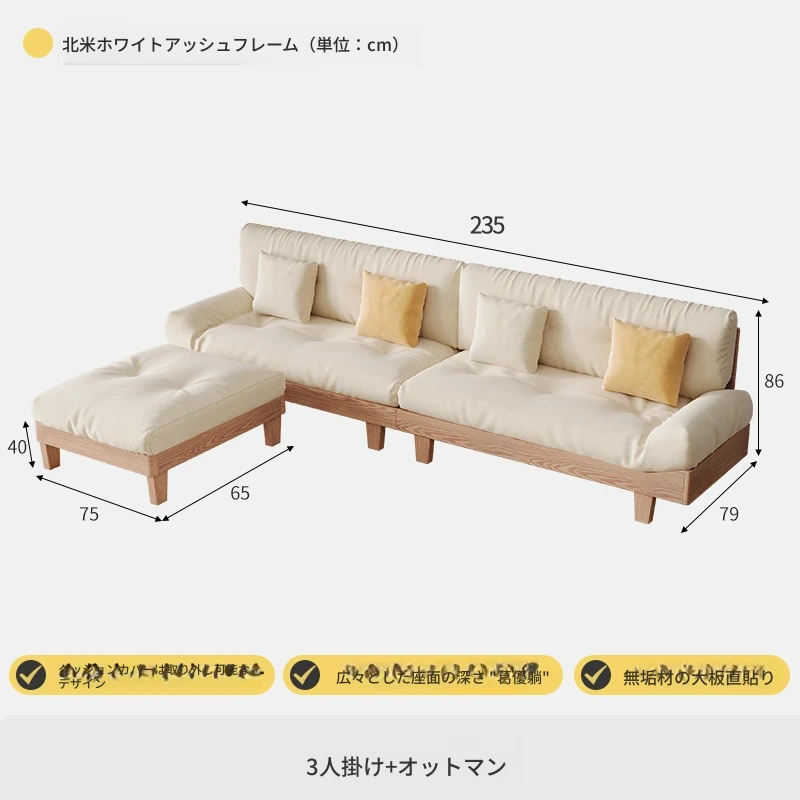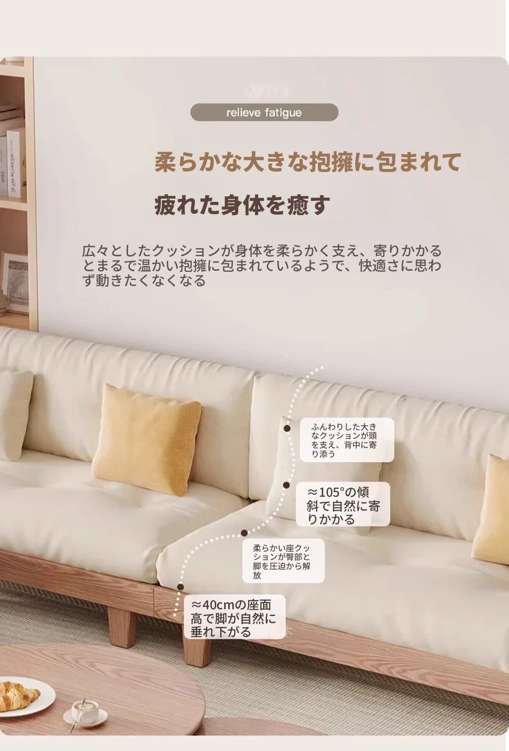 北欧スタイルのホワイトアッシュウッドクラウドソファ - 家庭用小型ハウスに最適!モダンでシンプルなデザイン、天然木とファブリックの組み合わせで、快適な羽毛ソファを実現しました。あなたのリビングにぴったりの一品です!