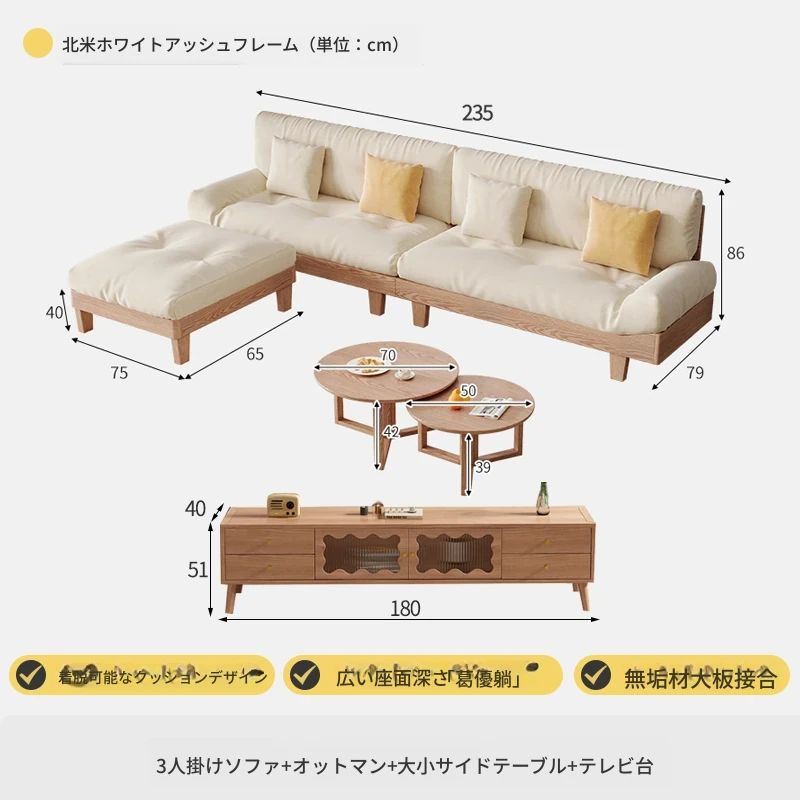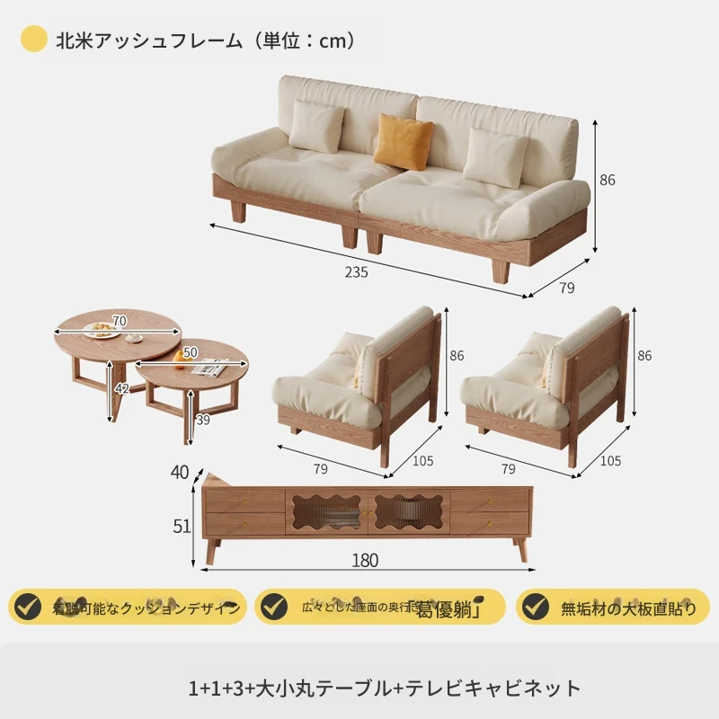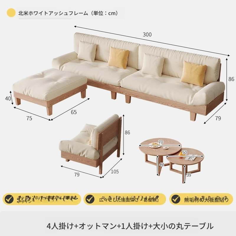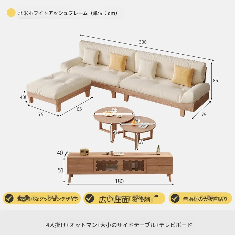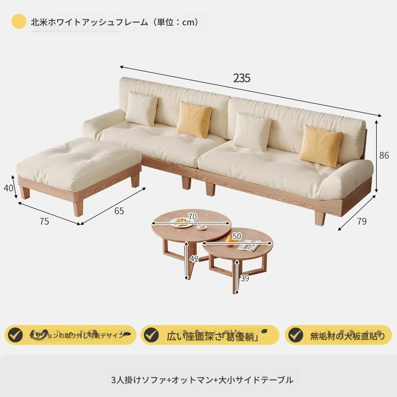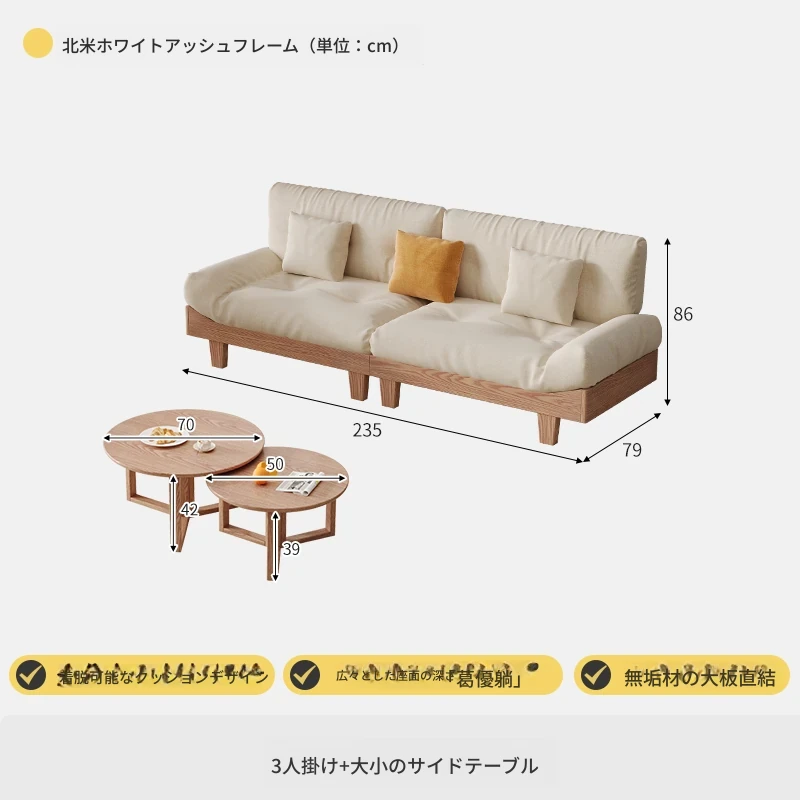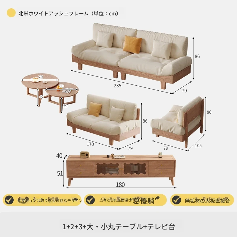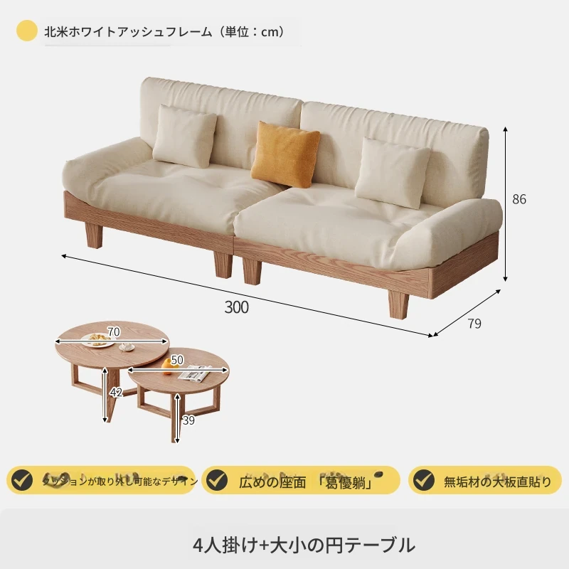 北欧スタイルのホワイトアッシュウッドクラウドソファ - 家庭用小型ハウスに最適!モダンでシンプルなデザイン、天然木とファブリックの組み合わせで、快適な羽毛ソファを実現しました。あなたのリビングにぴったりの一品です!