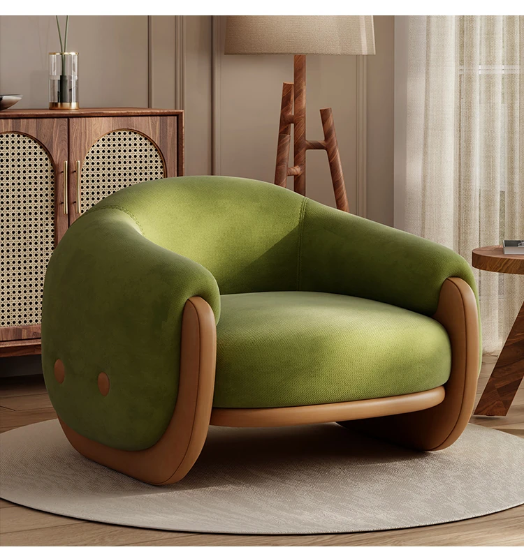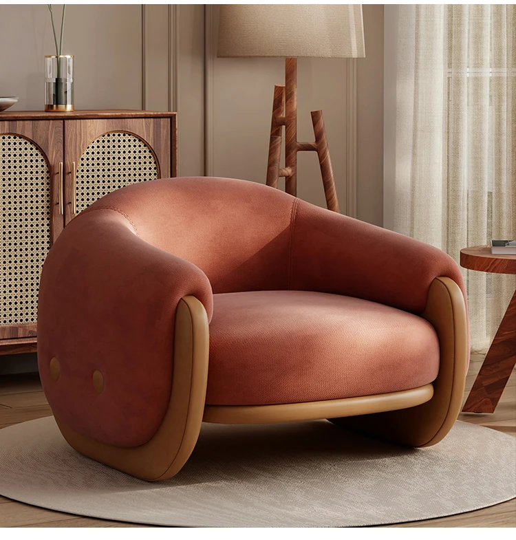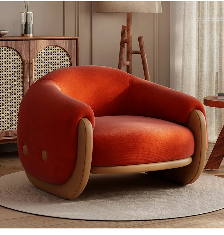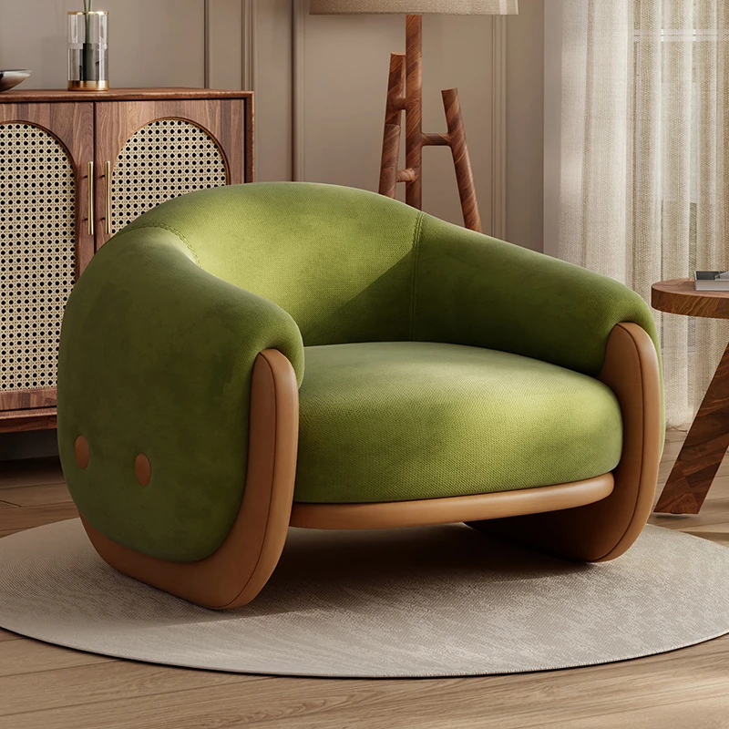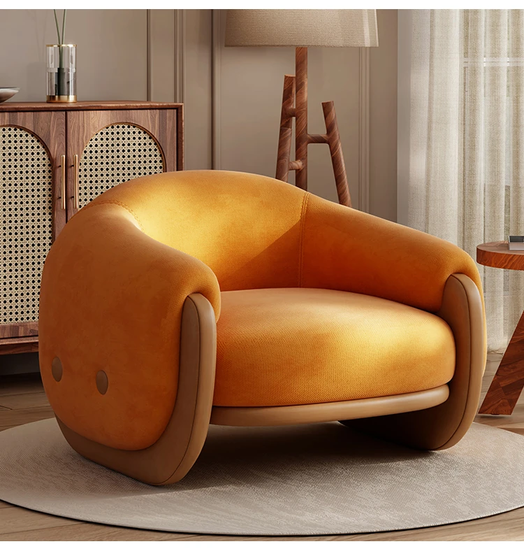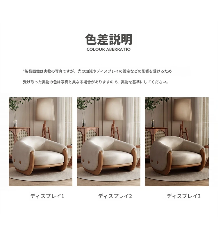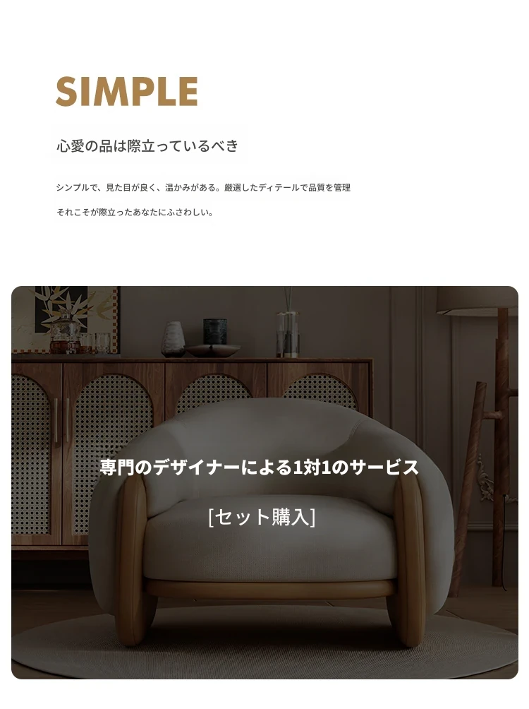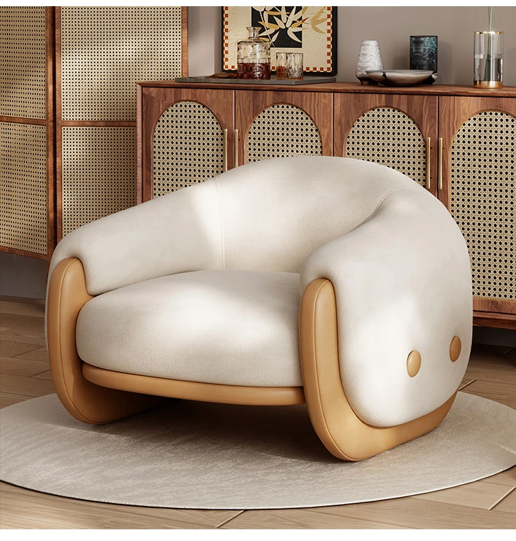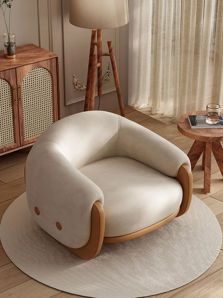 クリーミーな風合いの北欧スタイル一人掛けソファチェア。リビングやバルコニーにぴったりのリラックスチェア!小さなスペースにも最適な布製の快適な寝椅子で、心地よいひとときをお楽しみください。