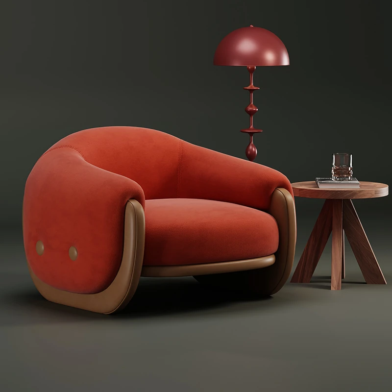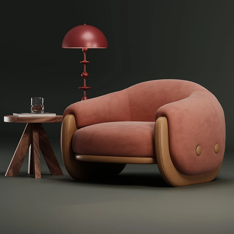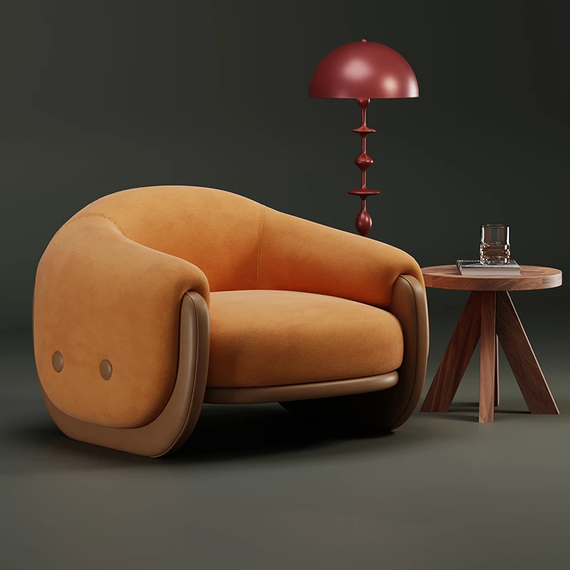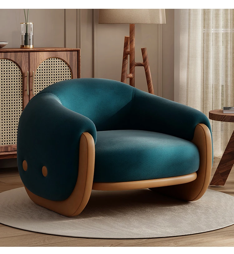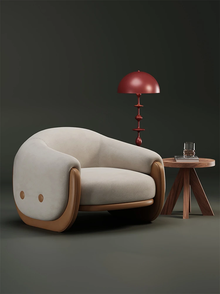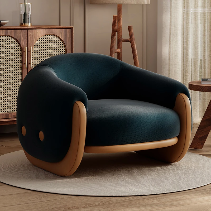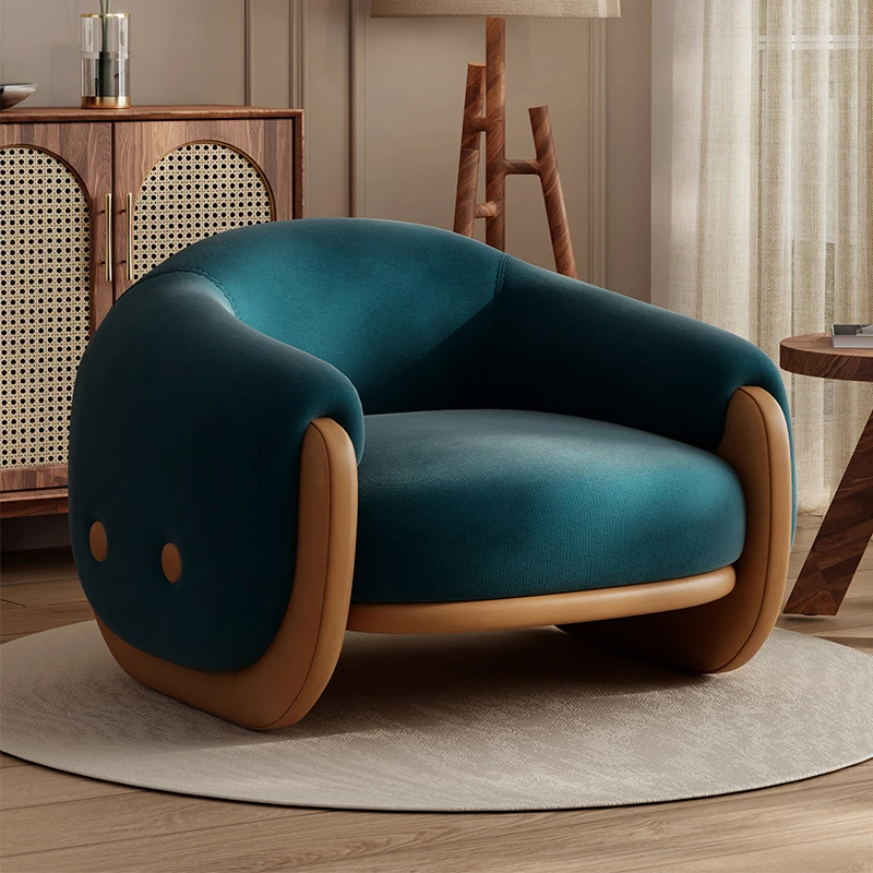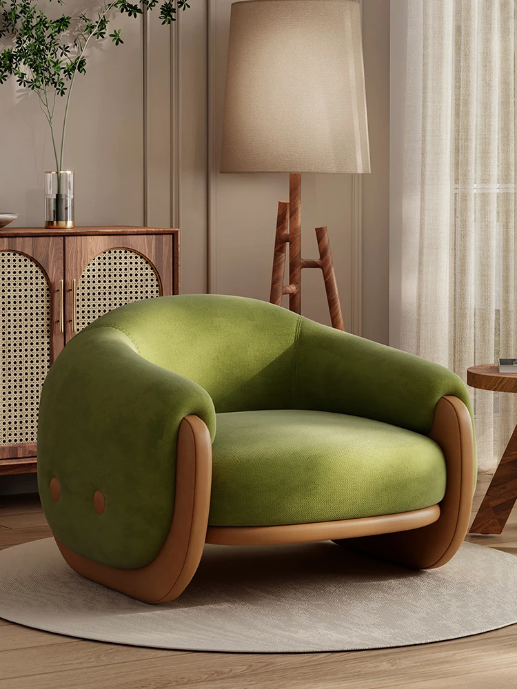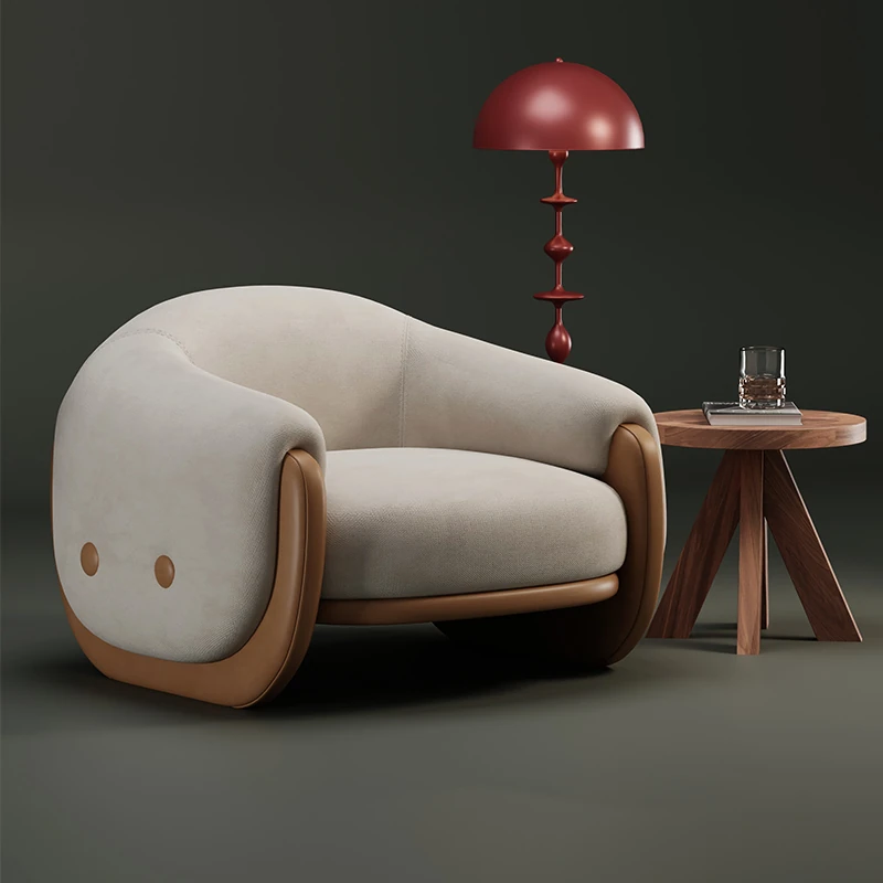 クリーミーな風合いの北欧スタイル一人掛けソファチェア。リビングやバルコニーにぴったりのリラックスチェア!小さなスペースにも最適な布製の快適な寝椅子で、心地よいひとときをお楽しみください。