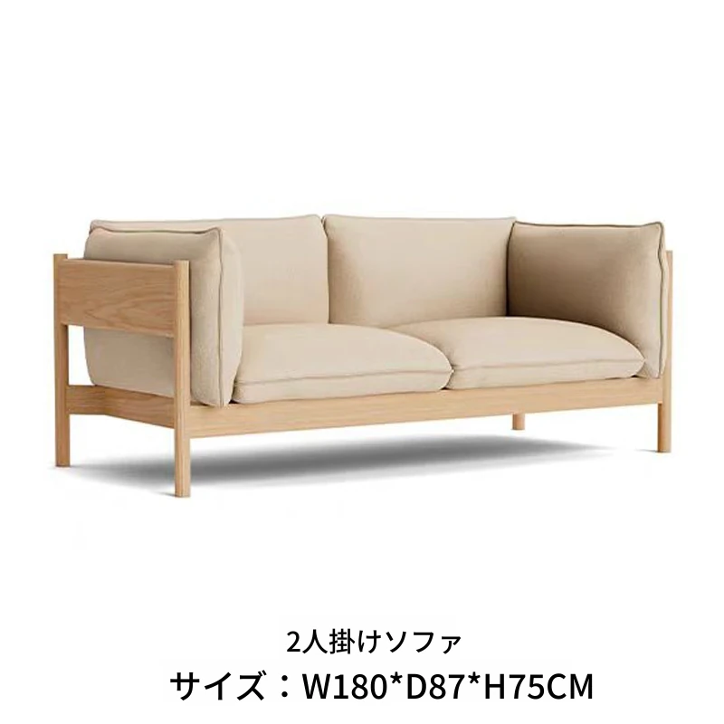 2人用ソファ(ナチュラルウッド+アイボリー布)