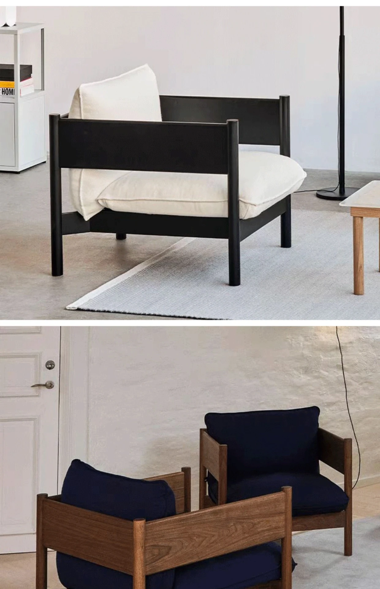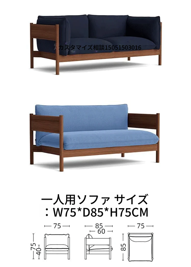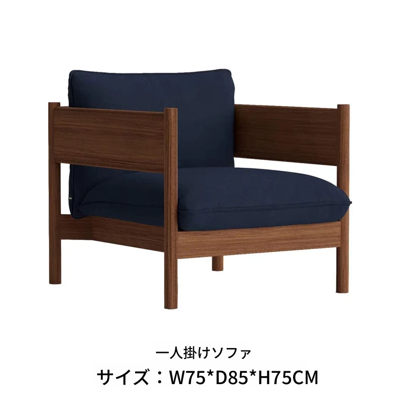 1人用ソファ(ウォールナット+ダークブルー布)