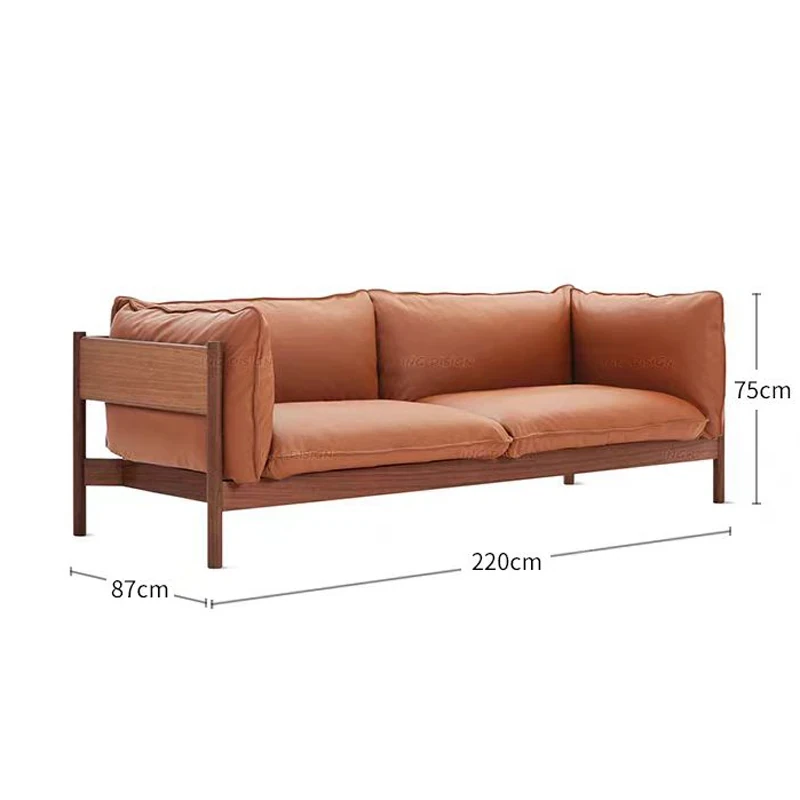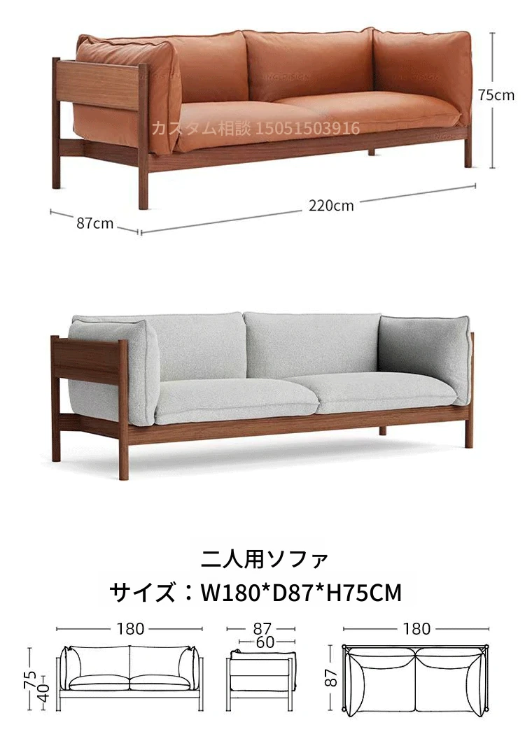 3人用ソファ(ウォールナット+オレンジレザー)