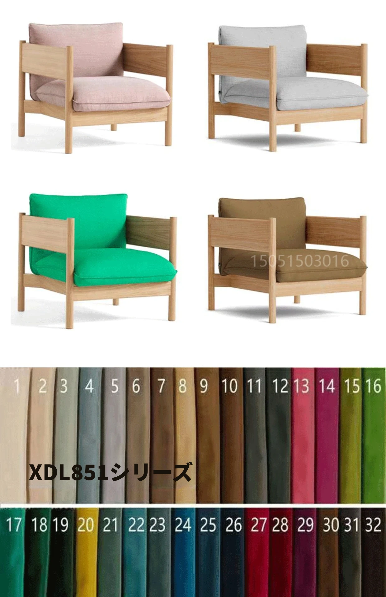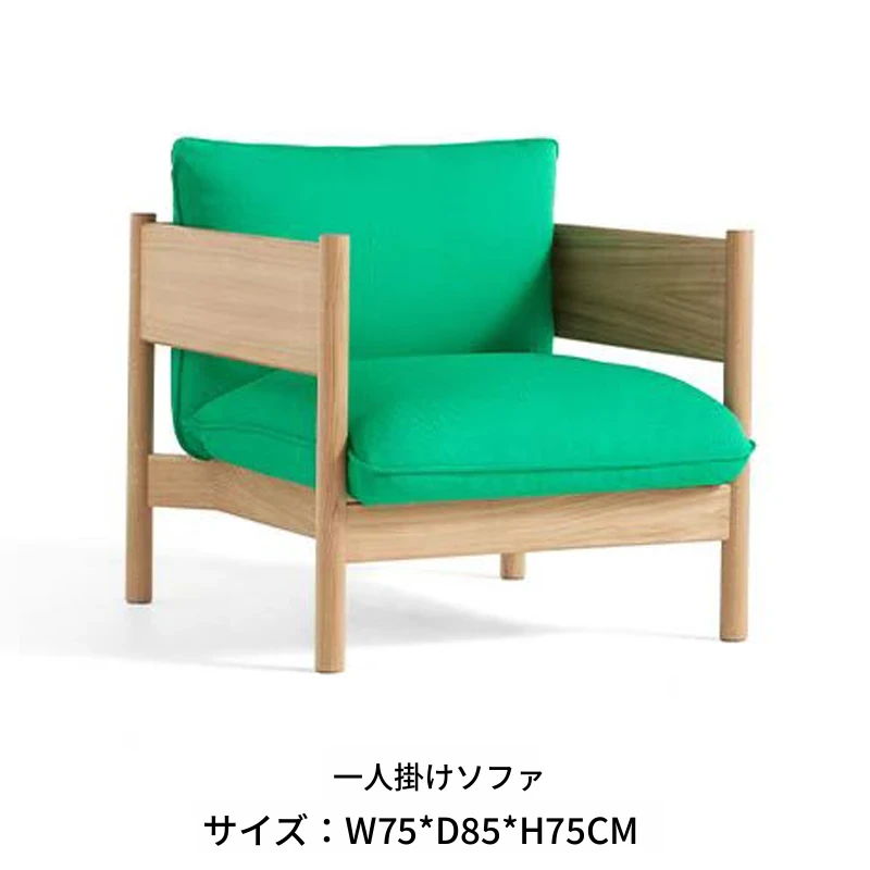 1人用ソファ(ナチュラルウッド+グリーン布)