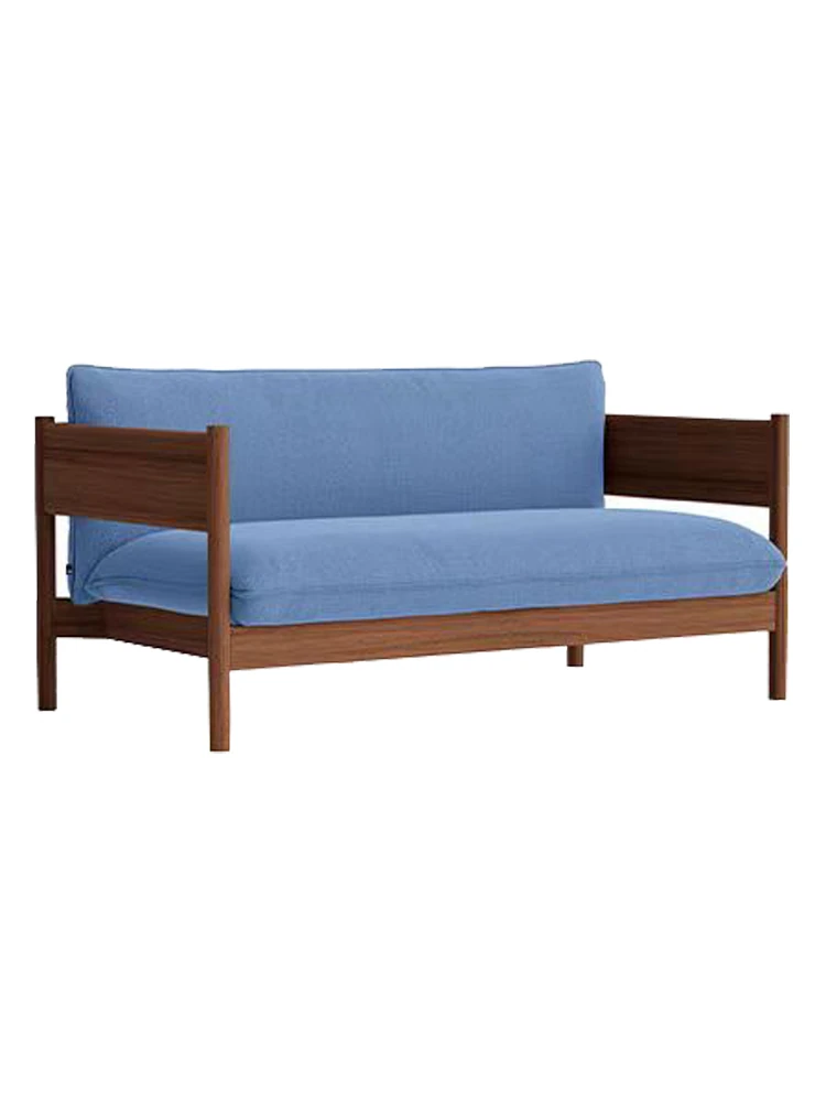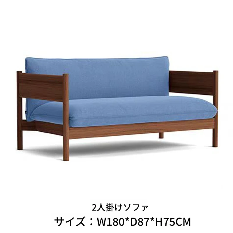 2人用ソファ(ウォールナット+ブルー布)