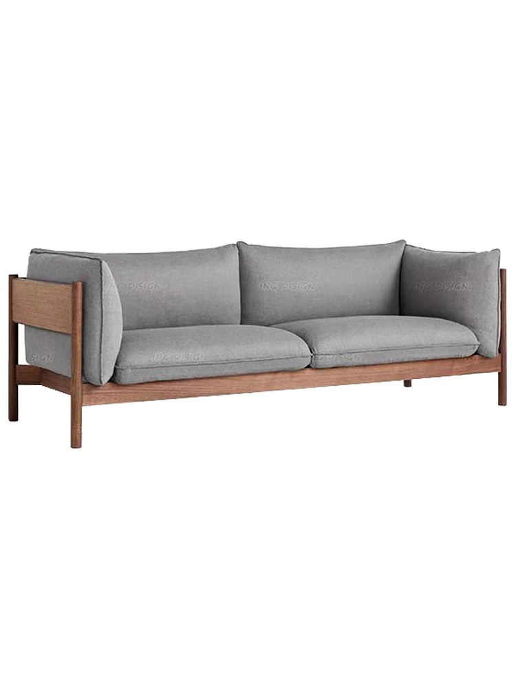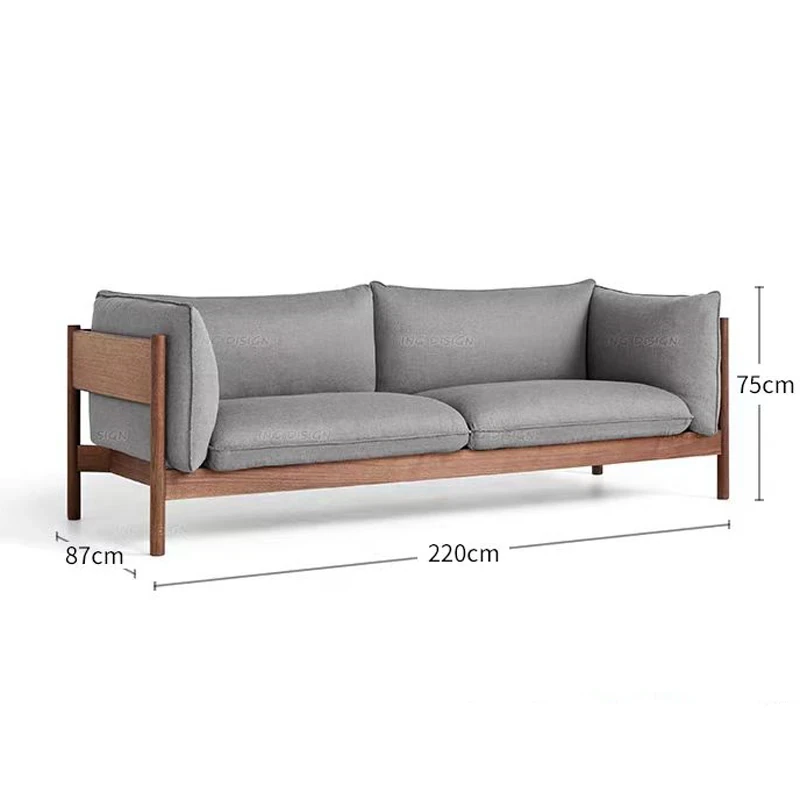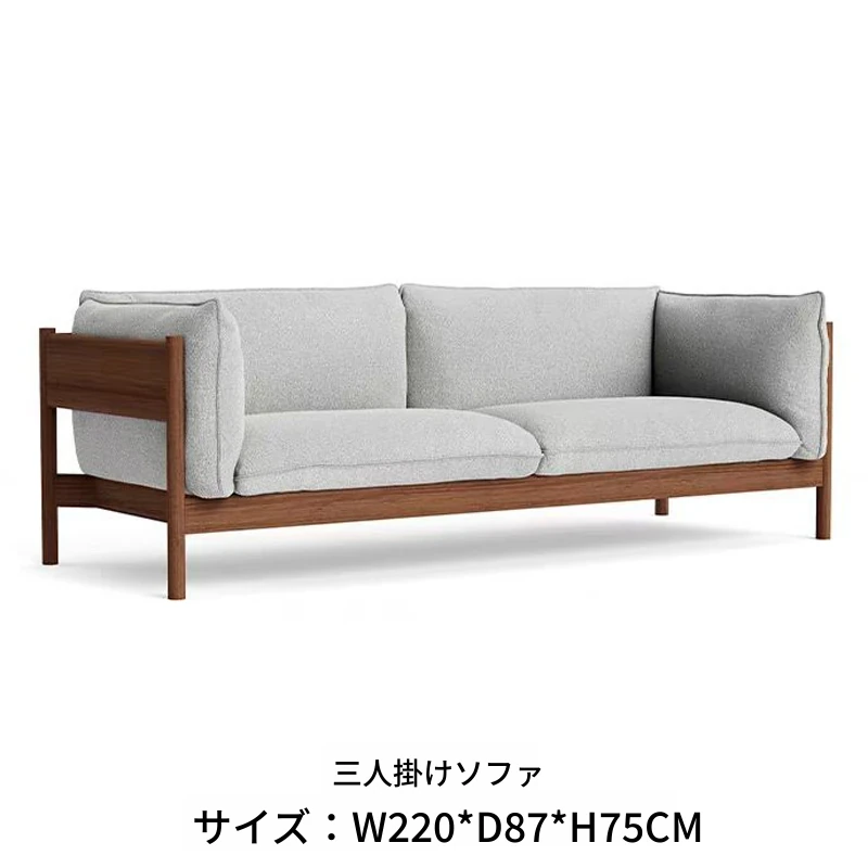 3人用ソファ(ウォールナット+ライトグレー布)