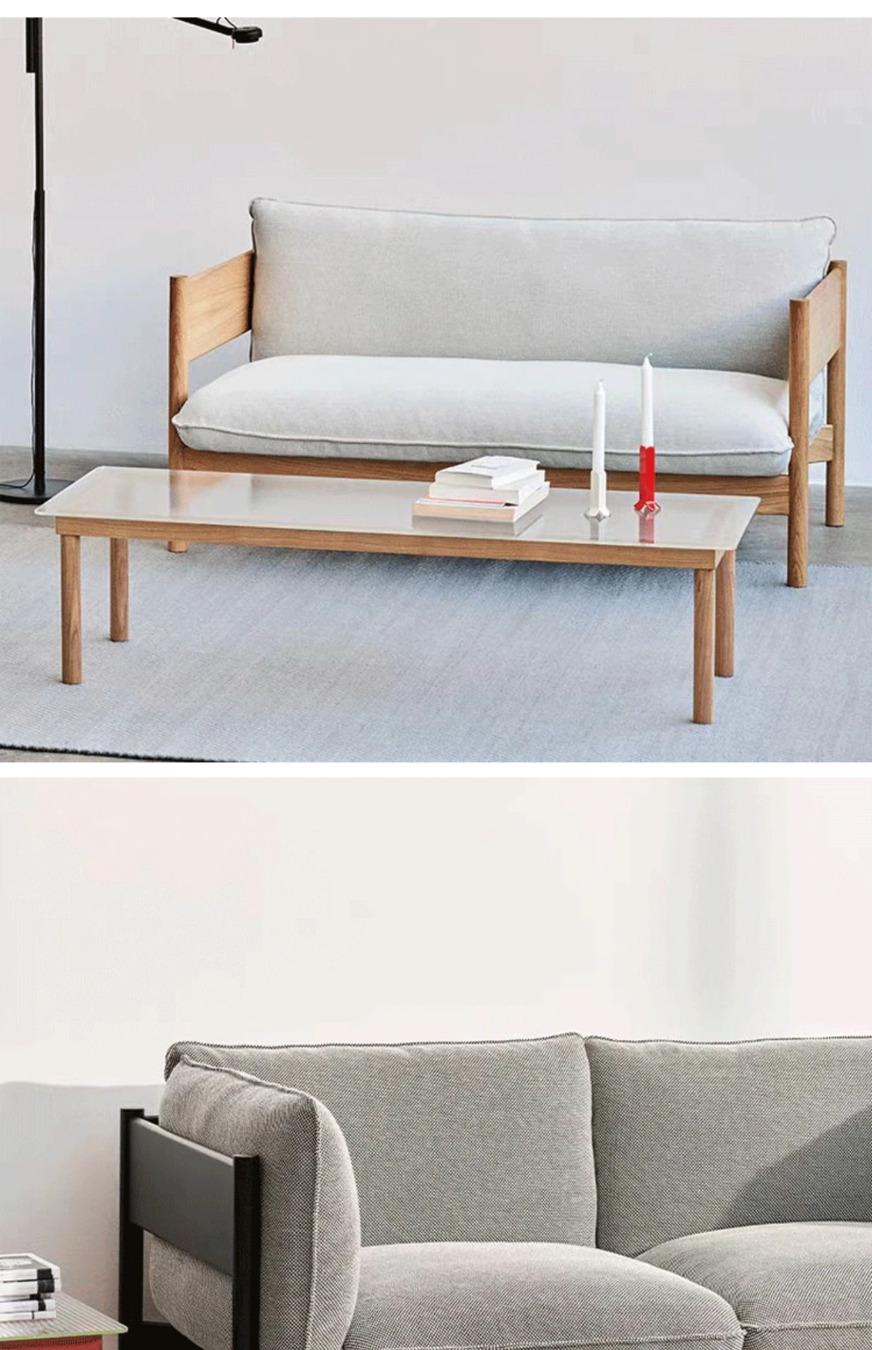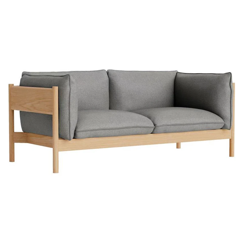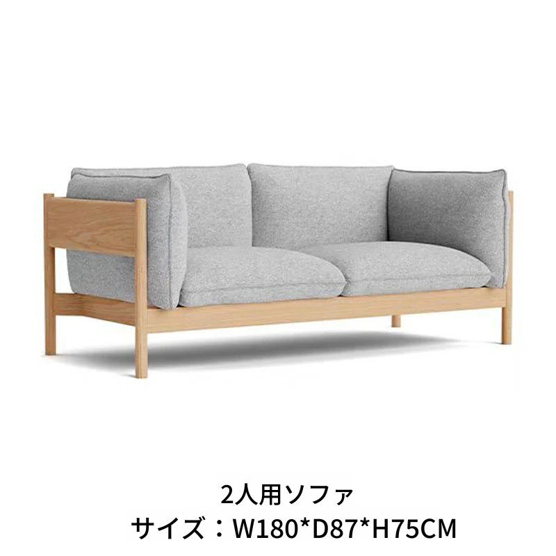 2人用ソファ(ナチュラルウッド+ライトグレー布)