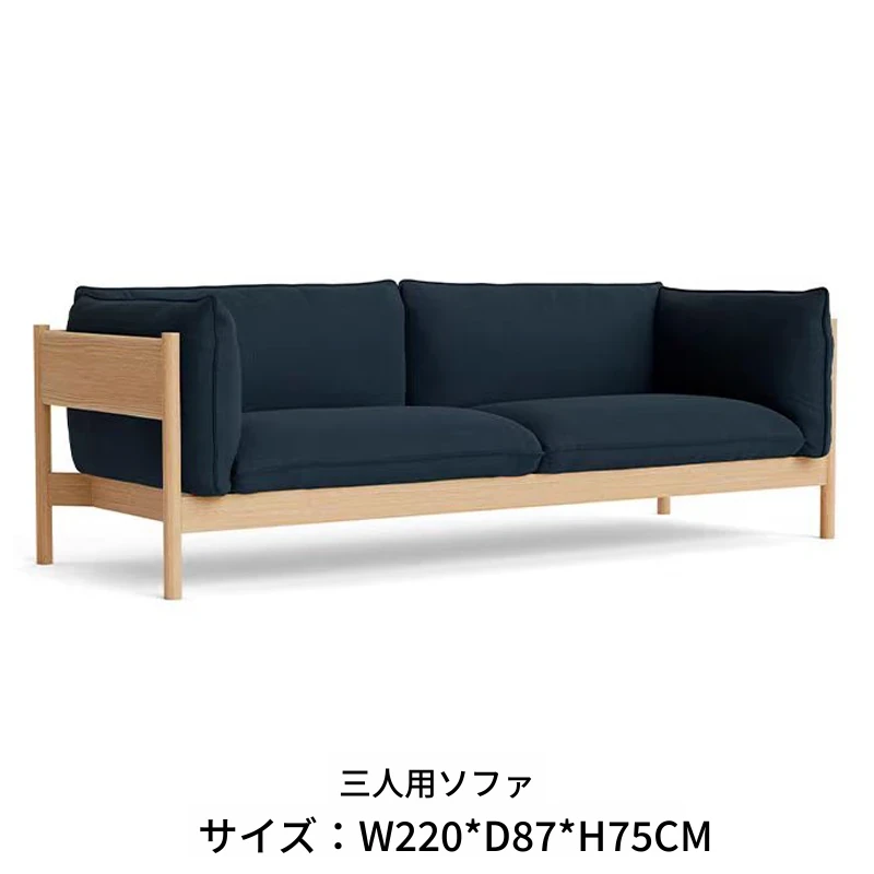 3人用ソファ(ナチュラルウッド+ダークブルー布)