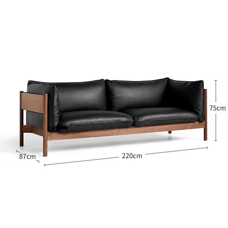 3人用ソファ(ウォールナット+ブラックレザー)