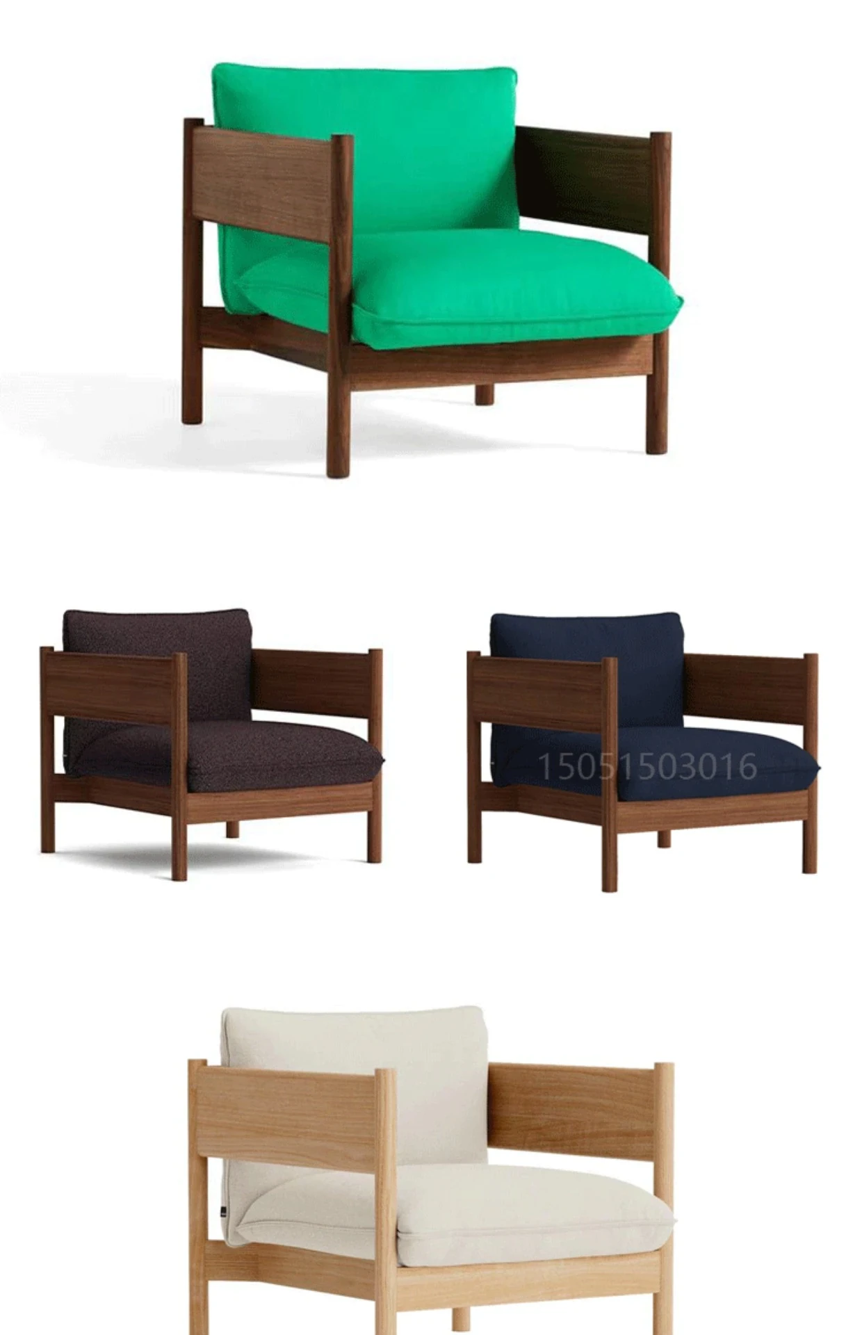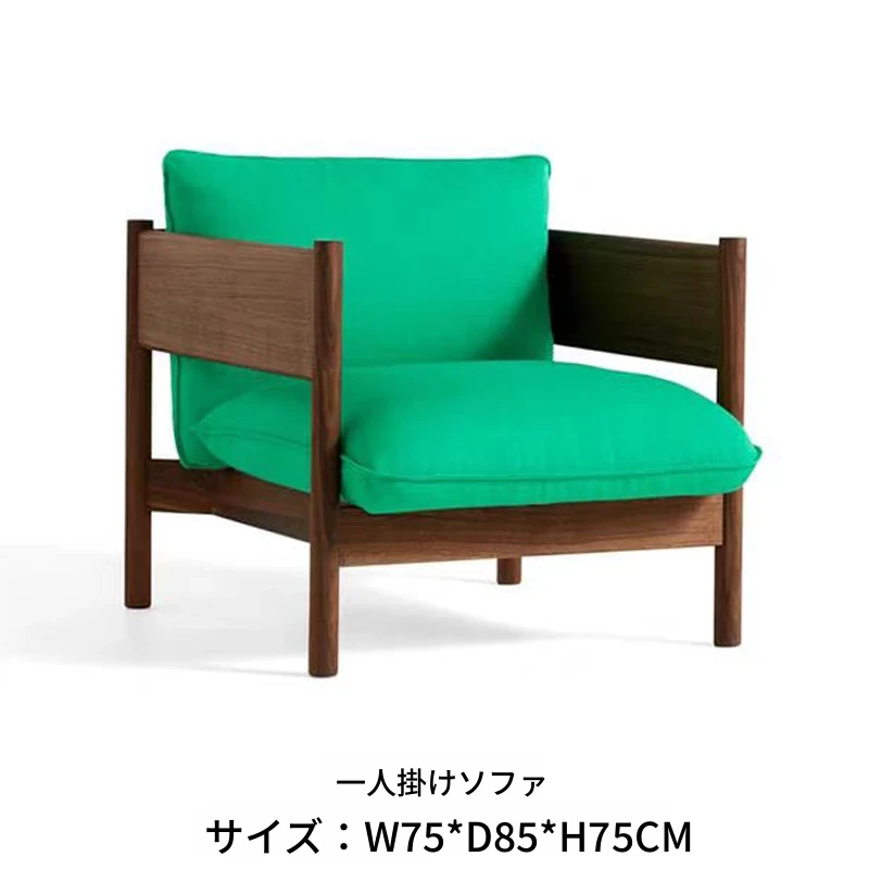 1人用ソファ(ウォールナット+グリーン布)