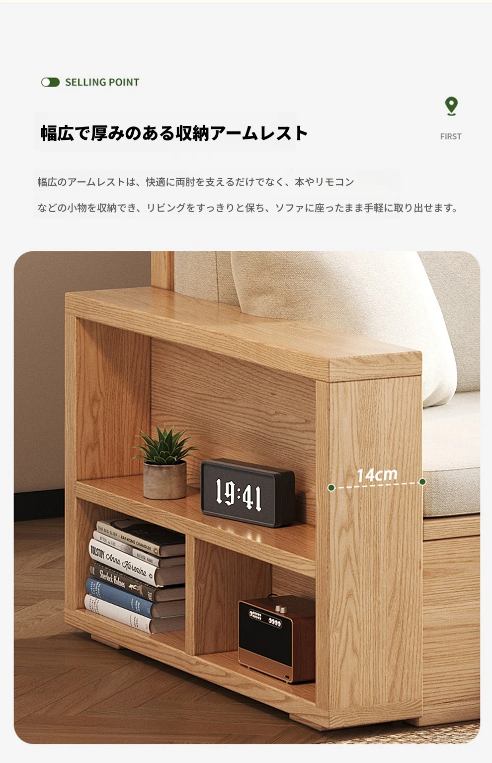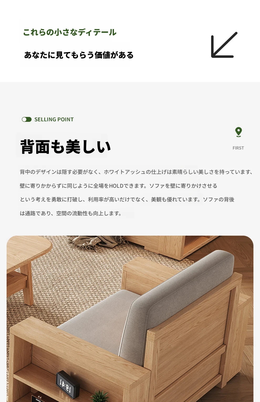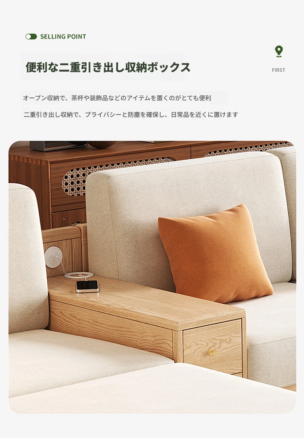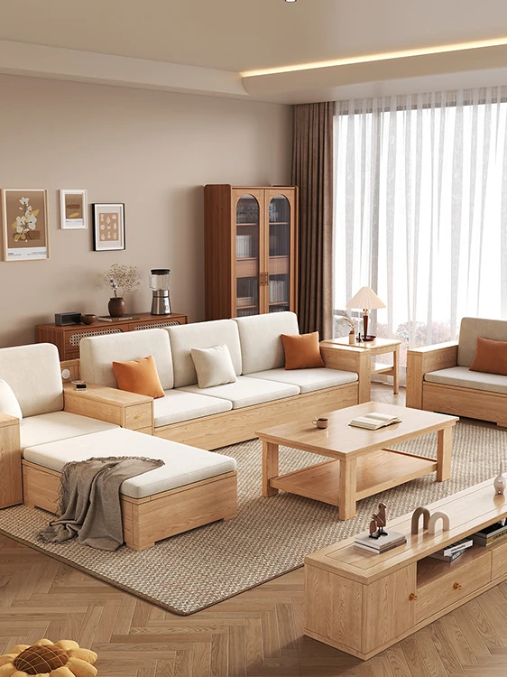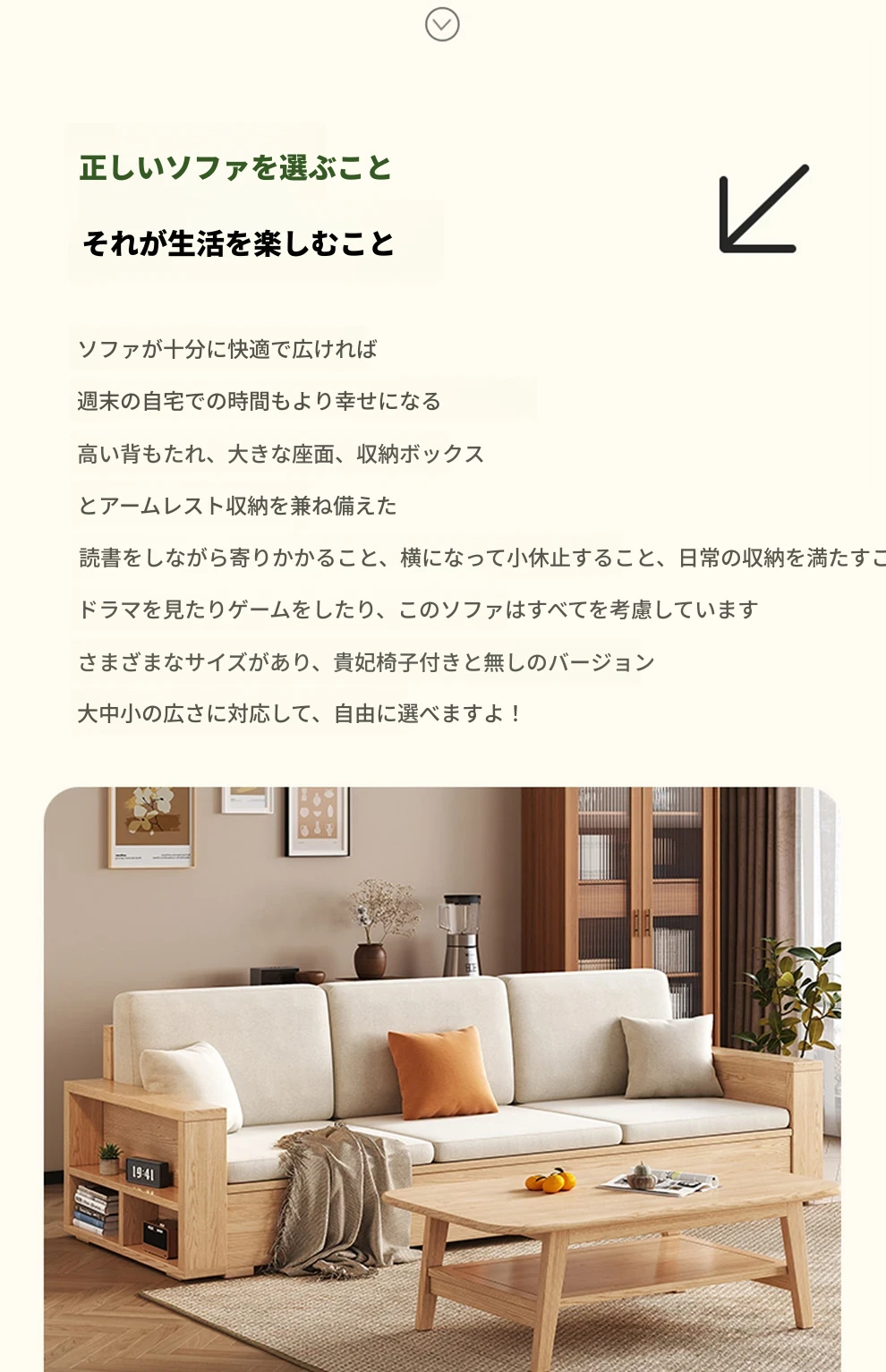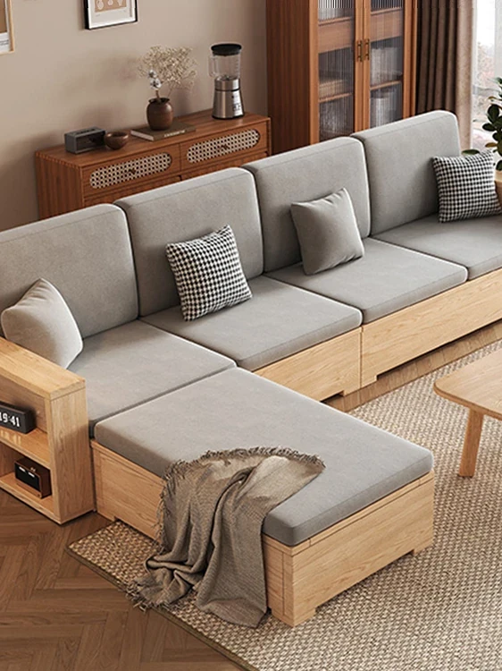 北欧スタイルの木製ソファ - 小さなリビングに最適なモダンでシンプルなデザイン!高収納ボックス付きのホワイトアッシュフレームで、スペースを有効活用しながら快適さを提供します。おしゃれで機能的なこのソファで、心地よい空間を演出しましょう!