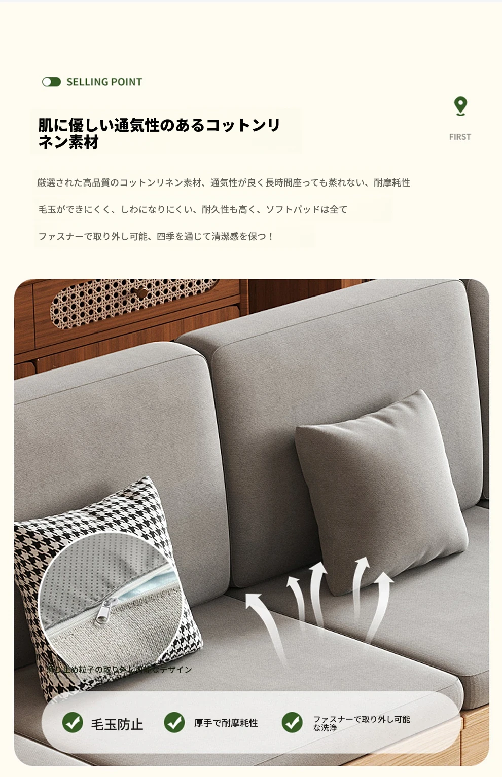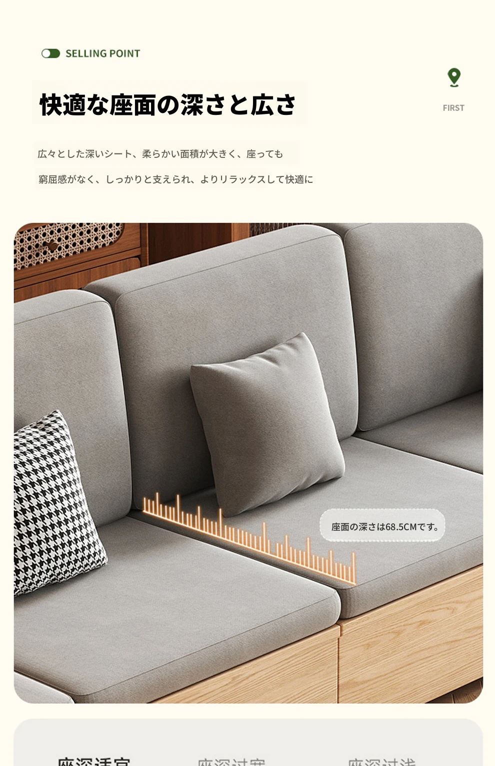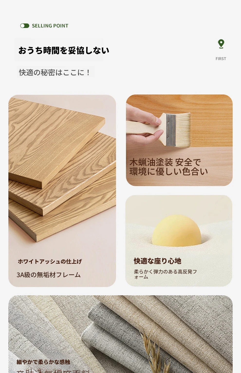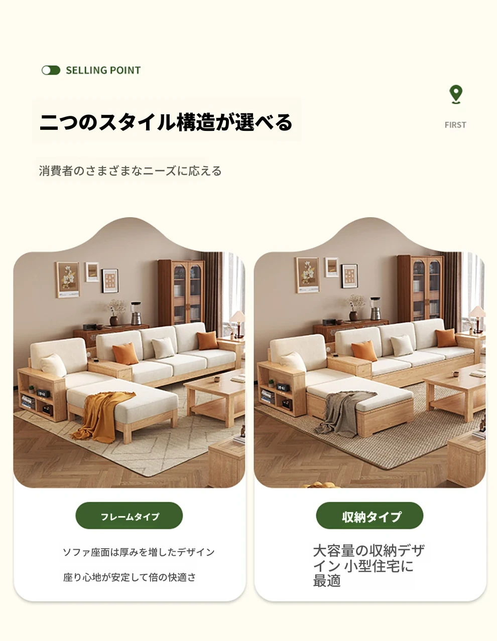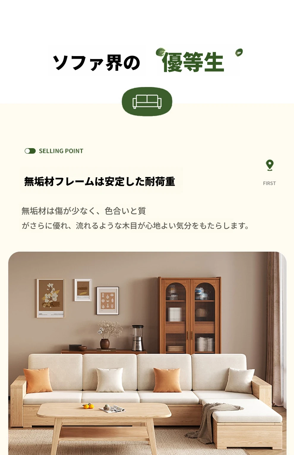 北欧スタイルの木製ソファ - 小さなリビングに最適なモダンでシンプルなデザイン!高収納ボックス付きのホワイトアッシュフレームで、スペースを有効活用しながら快適さを提供します。おしゃれで機能的なこのソファで、心地よい空間を演出しましょう!