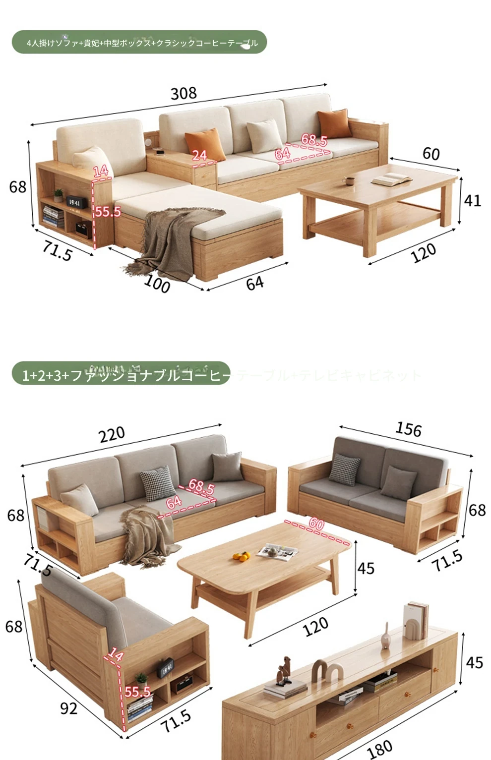 【収納タイプ】1+1+3+ローテーブル+テレビボード+角テーブル*2