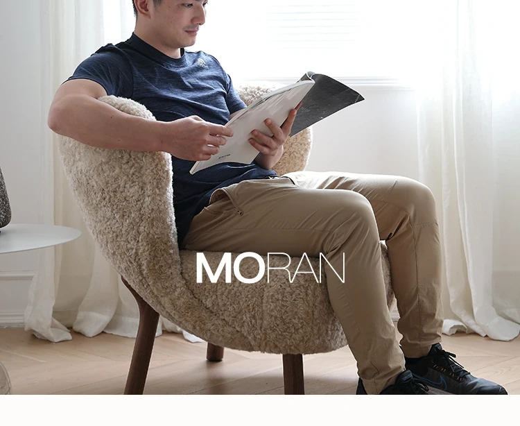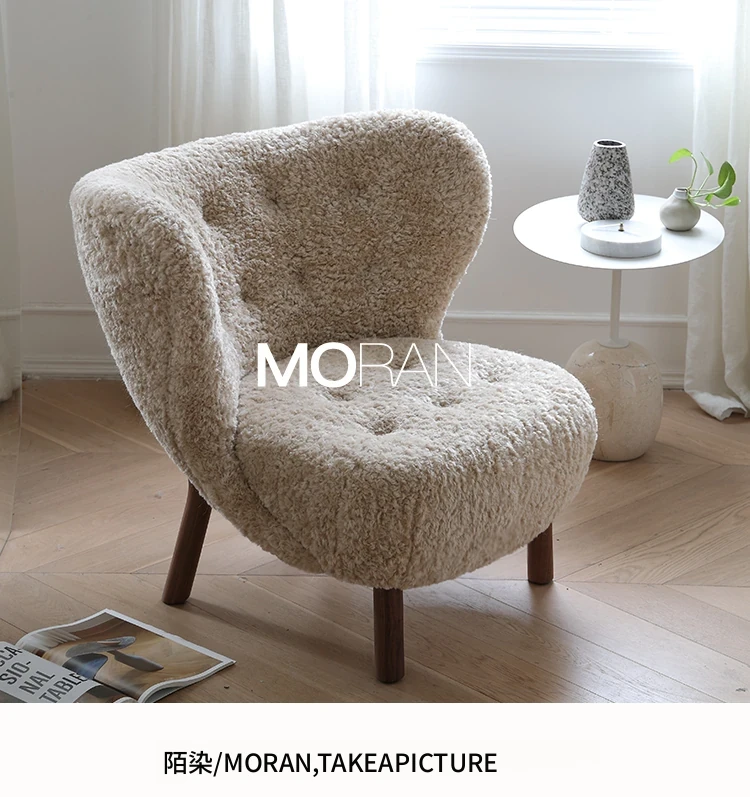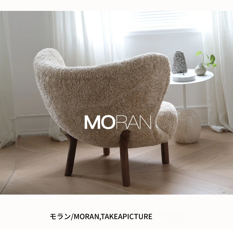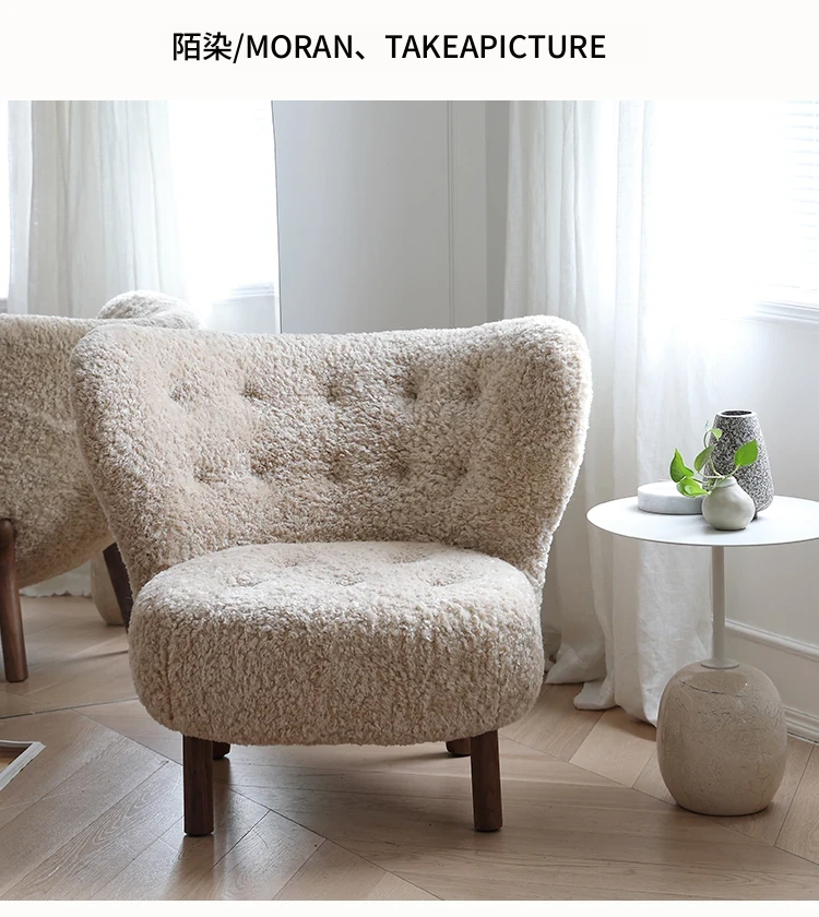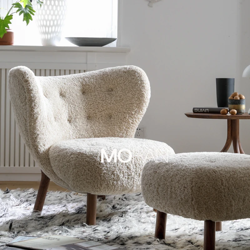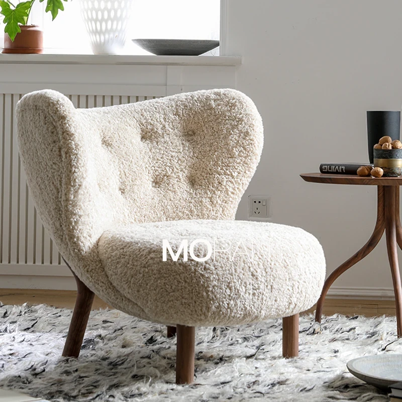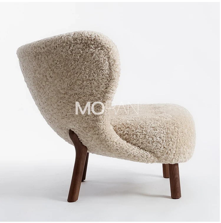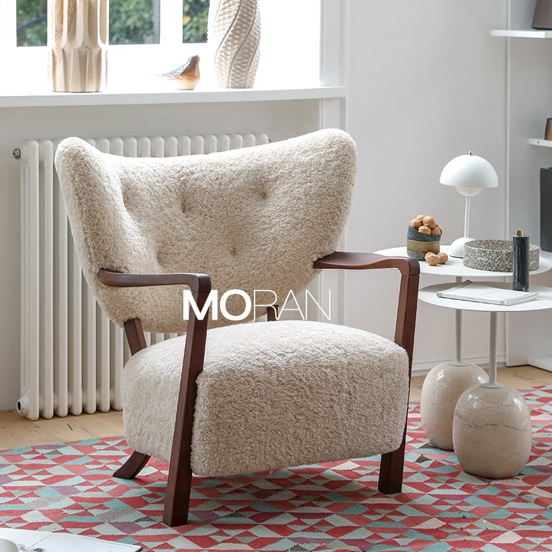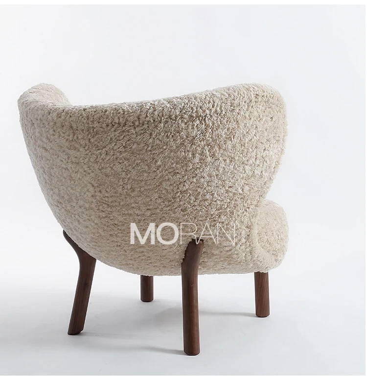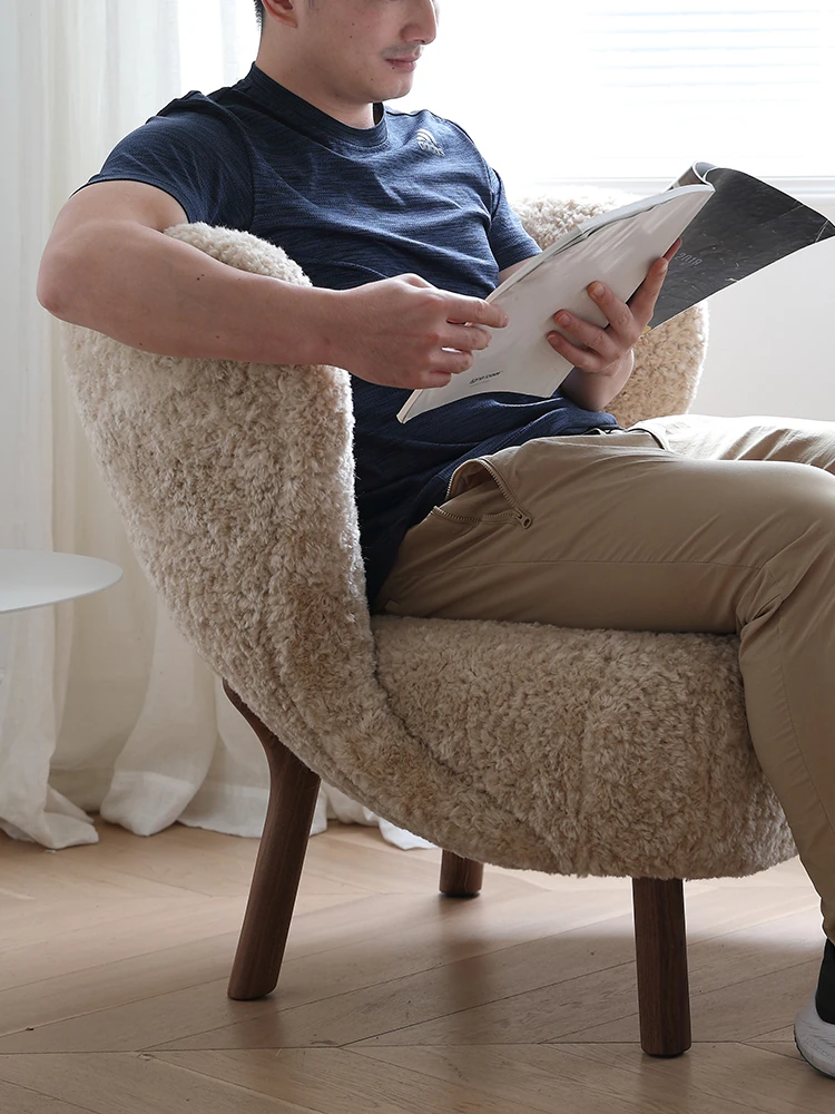 モダンデザインのデンマークスタイル、シンプルな無垢材とラムウールのコンビネーション。洗練された一人掛けソファチェア、ウォールナット仕上げで、あなたのリビングをより魅力的に演出します!