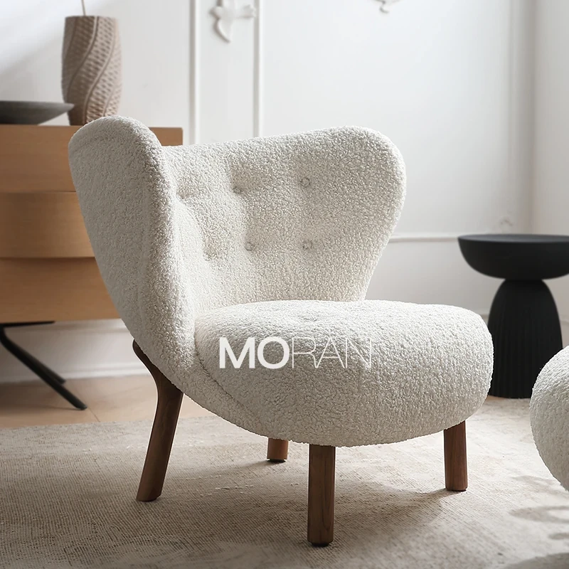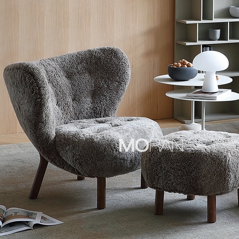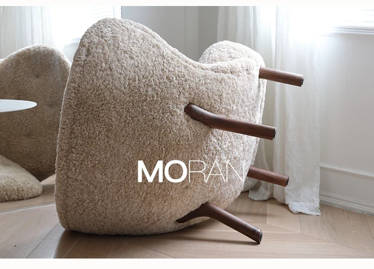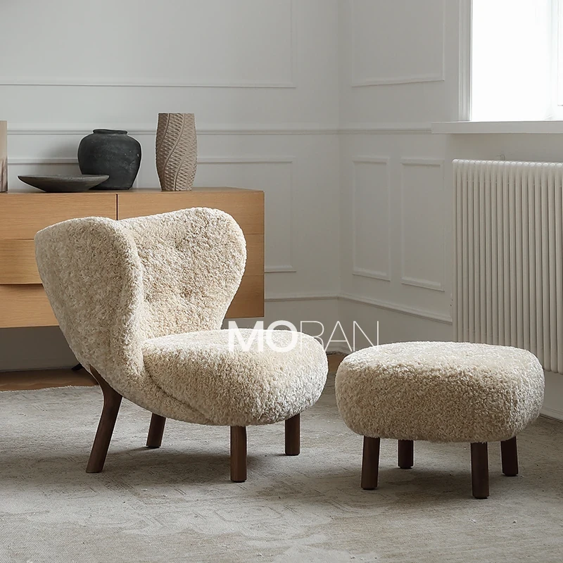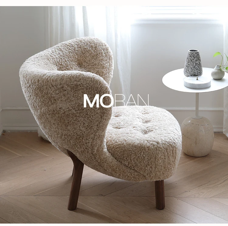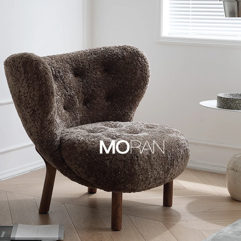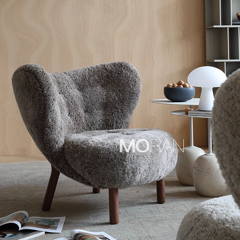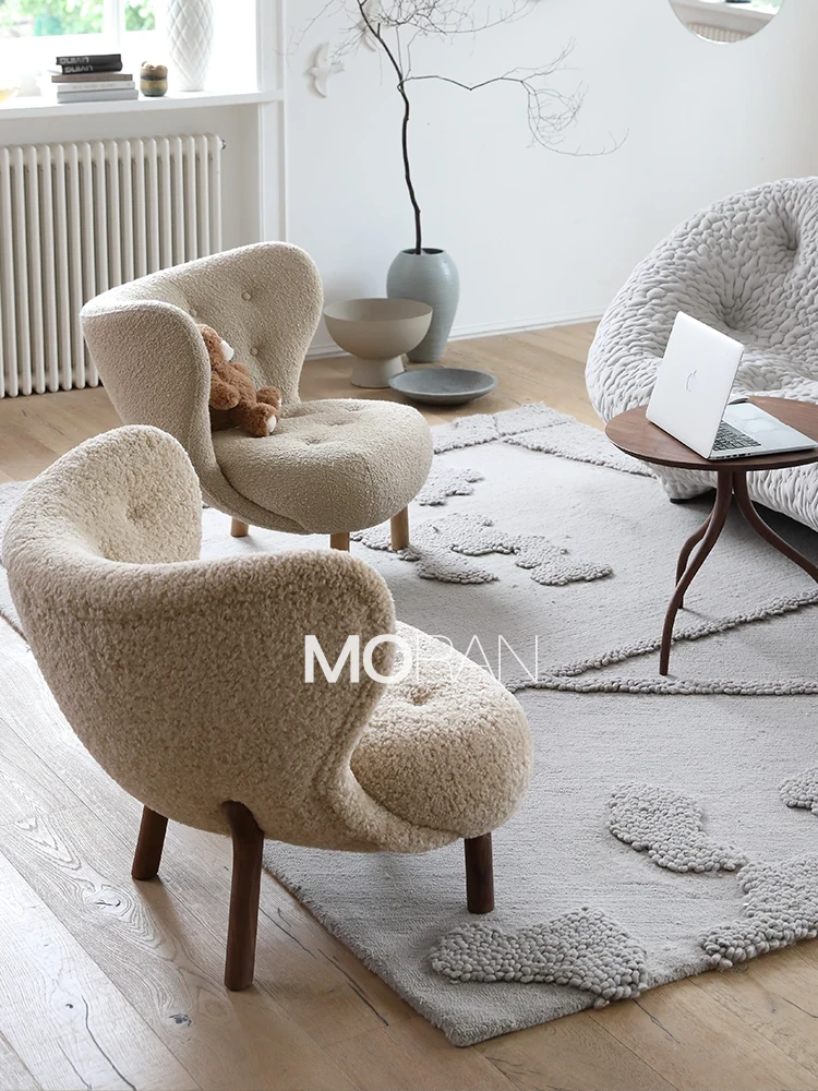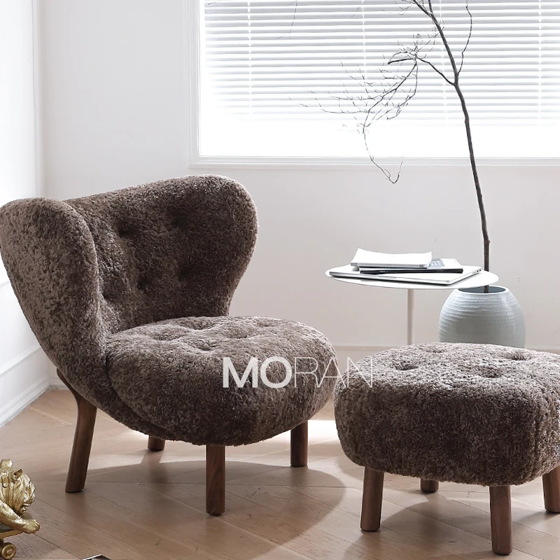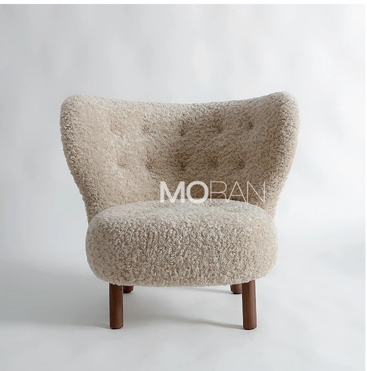 モダンデザインのデンマークスタイル、シンプルな無垢材とラムウールのコンビネーション。洗練された一人掛けソファチェア、ウォールナット仕上げで、あなたのリビングをより魅力的に演出します!