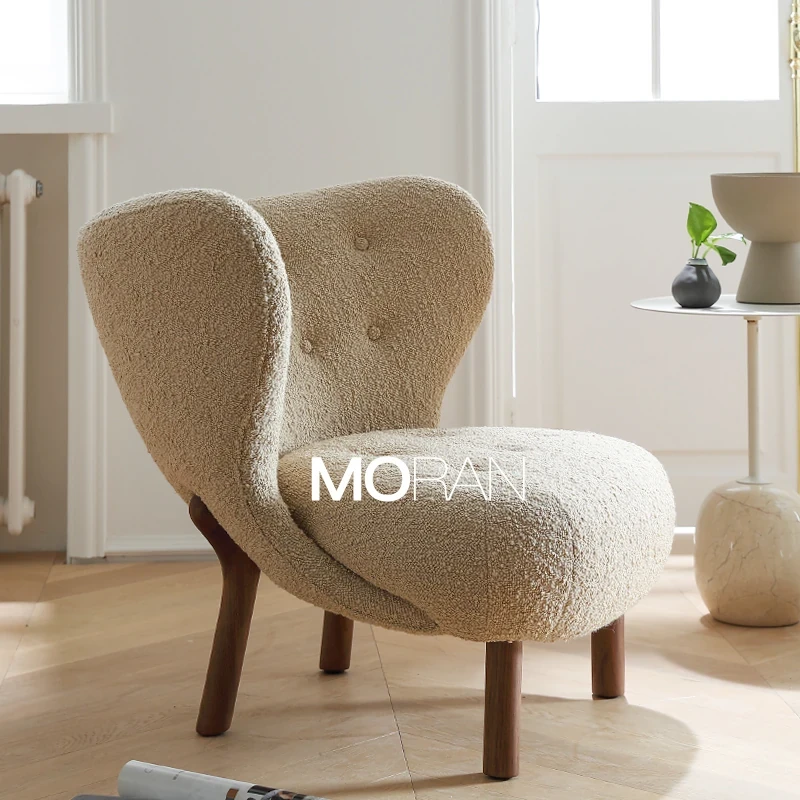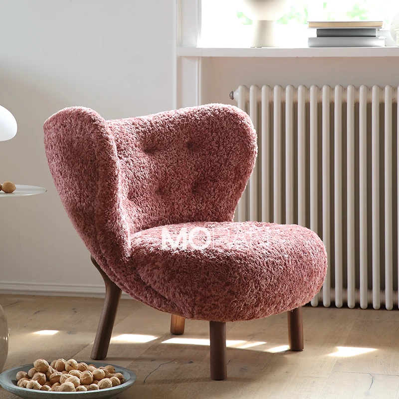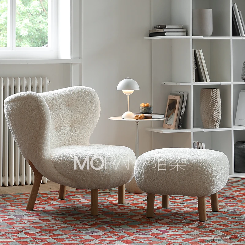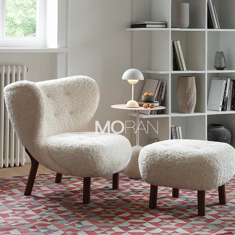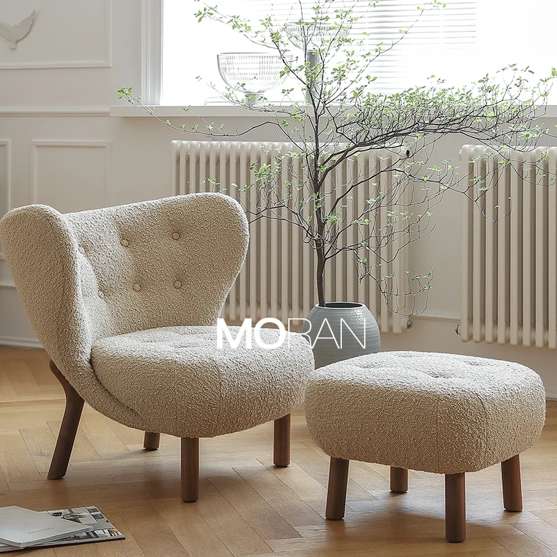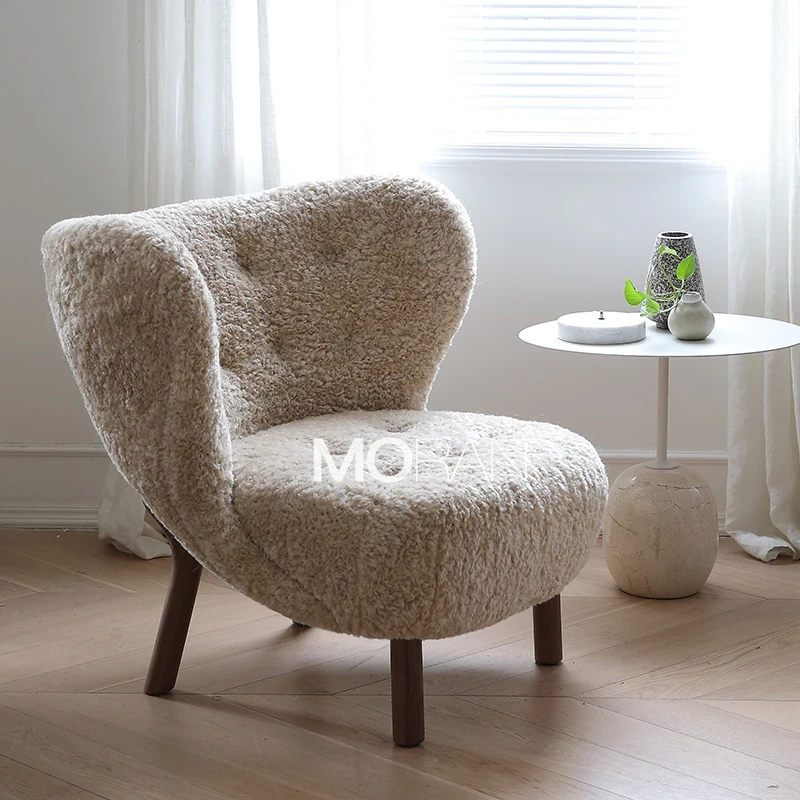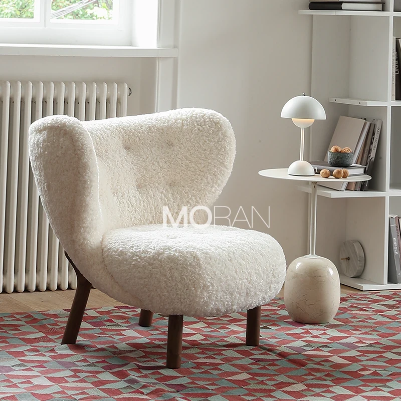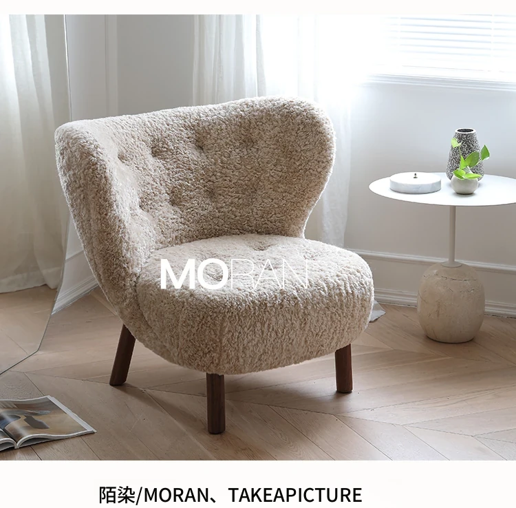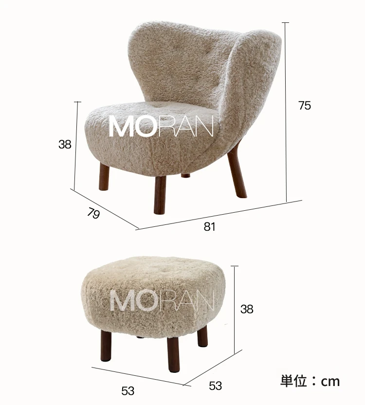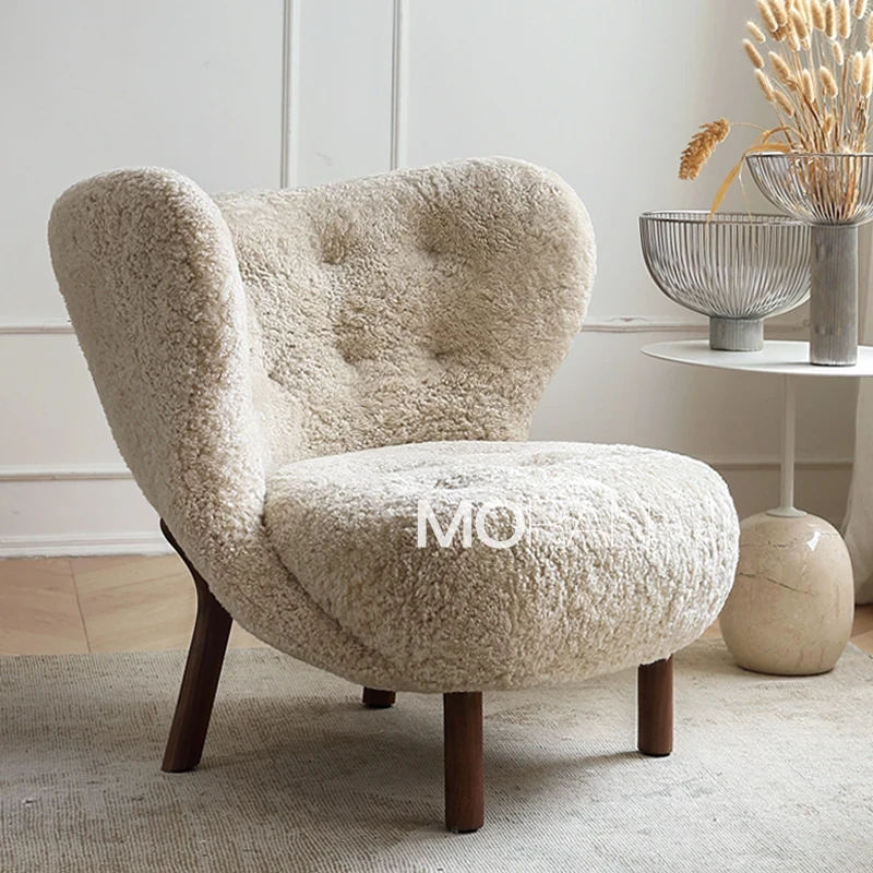 モダンデザインのデンマークスタイル、シンプルな無垢材とラムウールのコンビネーション。洗練された一人掛けソファチェア、ウォールナット仕上げで、あなたのリビングをより魅力的に演出します!