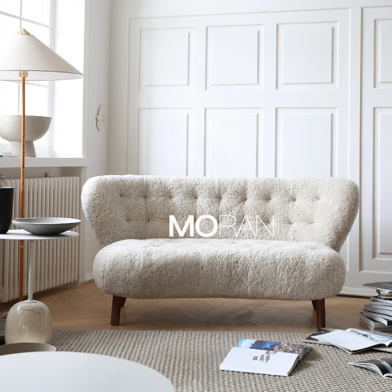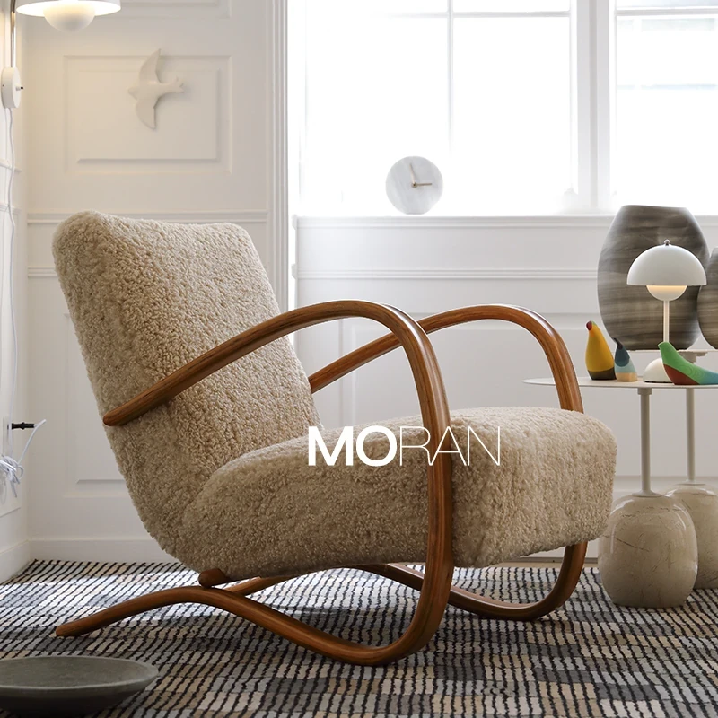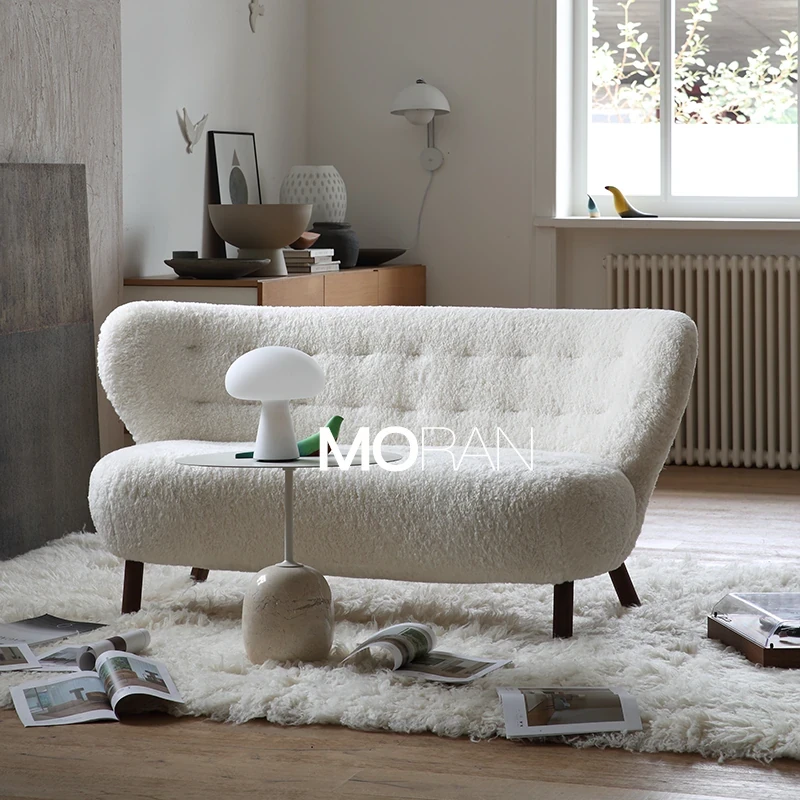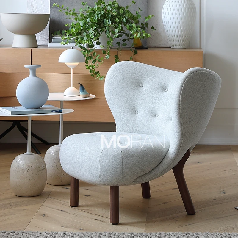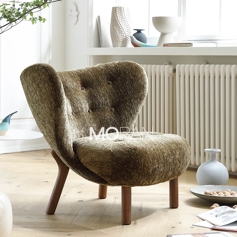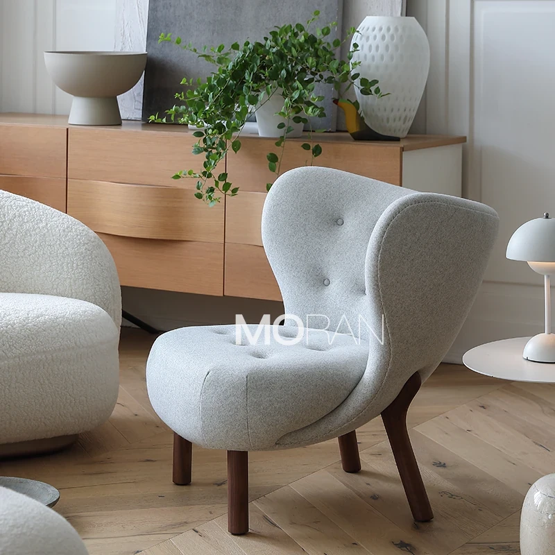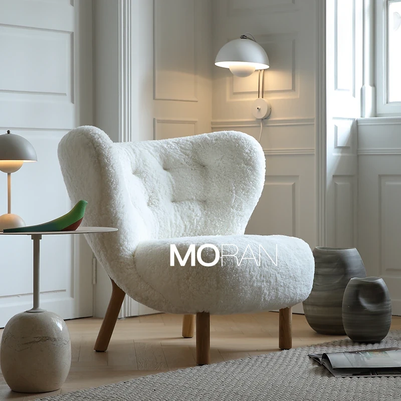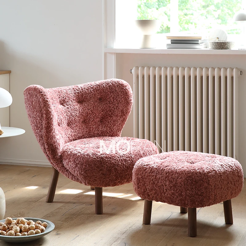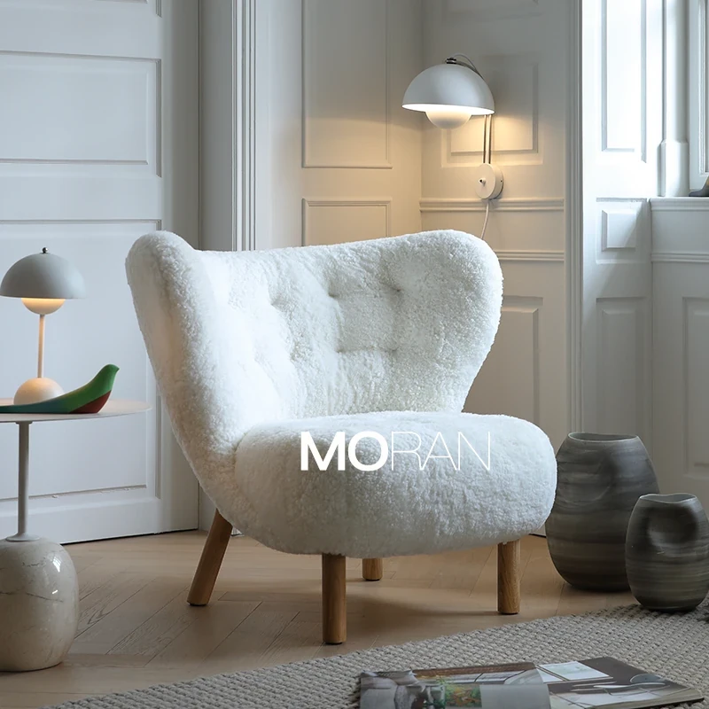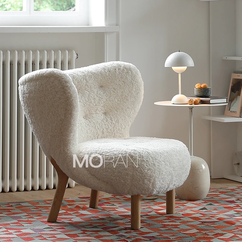 モダンデザインのデンマークスタイル、シンプルな無垢材とラムウールのコンビネーション。洗練された一人掛けソファチェア、ウォールナット仕上げで、あなたのリビングをより魅力的に演出します!