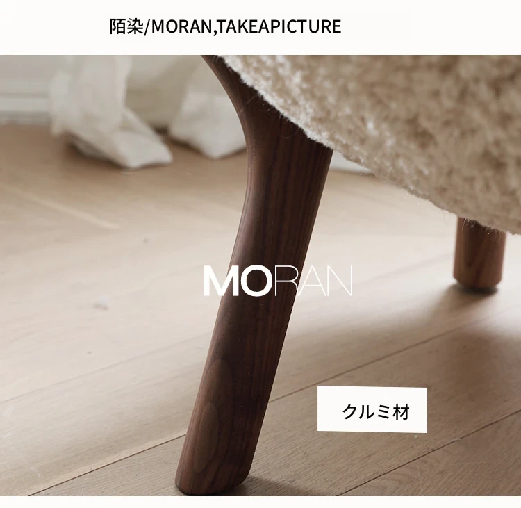 アイボリー色の本物のウールチェア+フットスツール「北米ホワイトオーク」