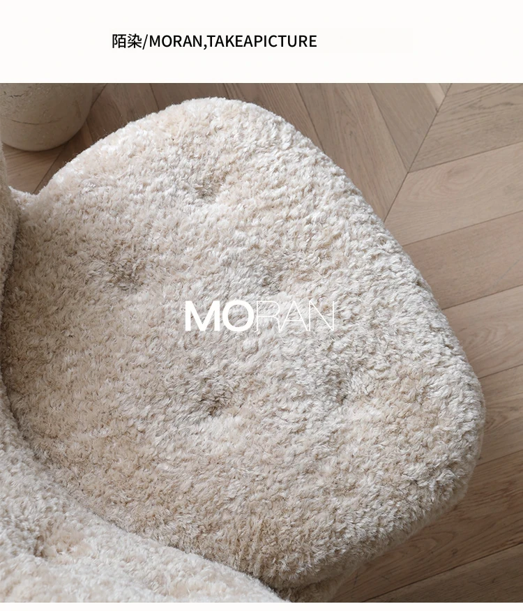 アイボリー色のショートファーアームチェア+フットスツール「北米ブラックウォールナット」