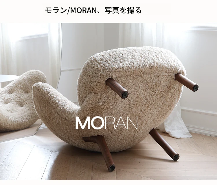 アイボリー色の本物のウールチェア「北米ホワイトオーク」