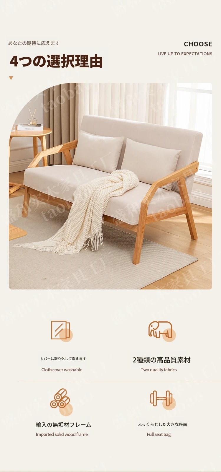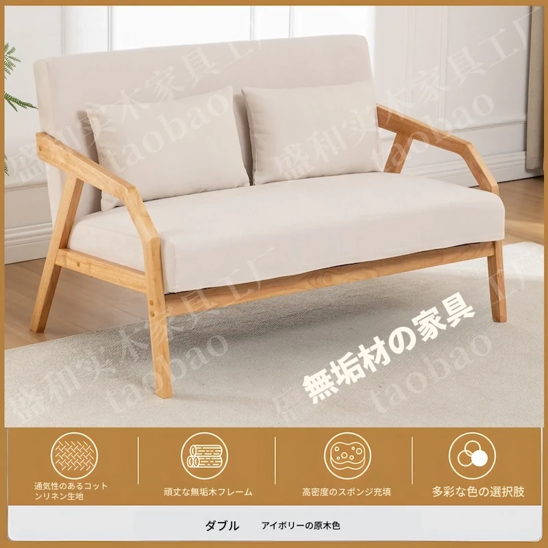 【天然木製】布製スモールサイズソファ 2人掛け&3人掛け リラックス簡約デザイン おしゃれなリビングにぴったりの原木風ソファ 家庭用