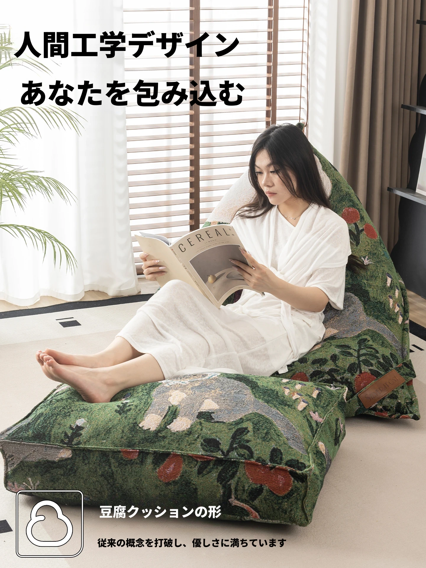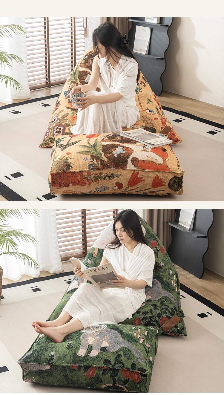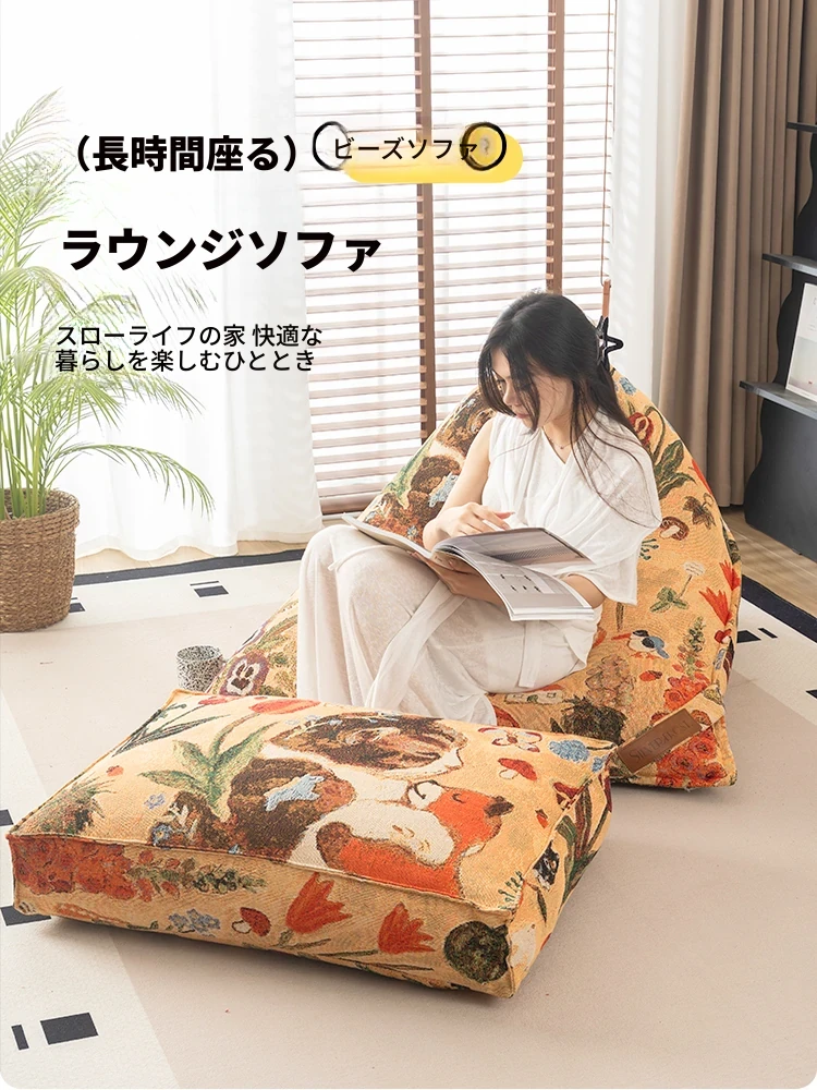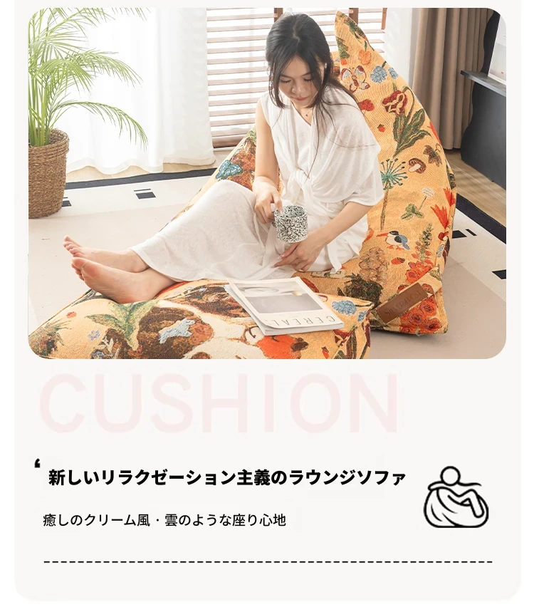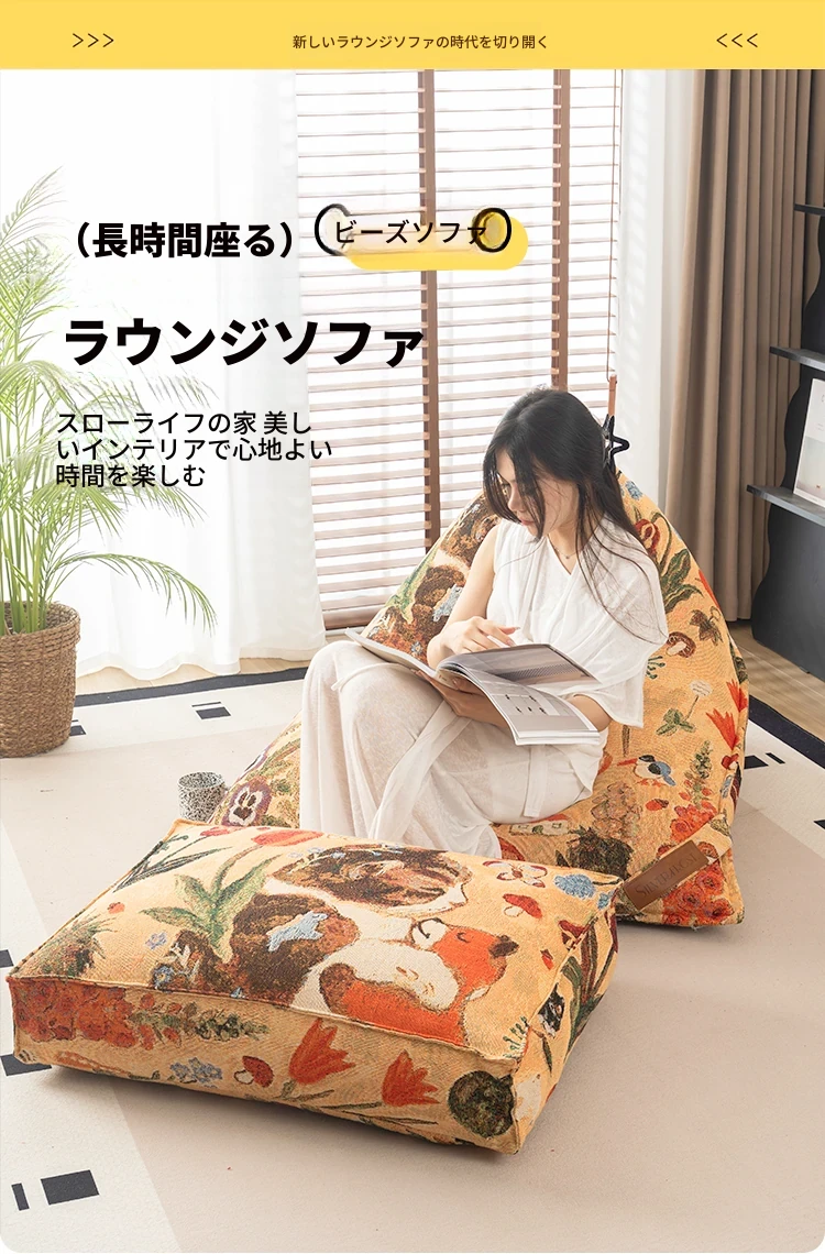 時を超えた布アートのリラックスソファ!寝転んでも心地よい、寝室や畳スペースにぴったりなビーンバッグ。あなたのくつろぎの時間をもっと特別に!