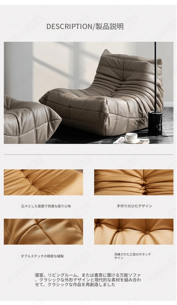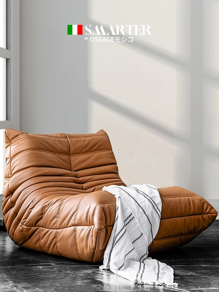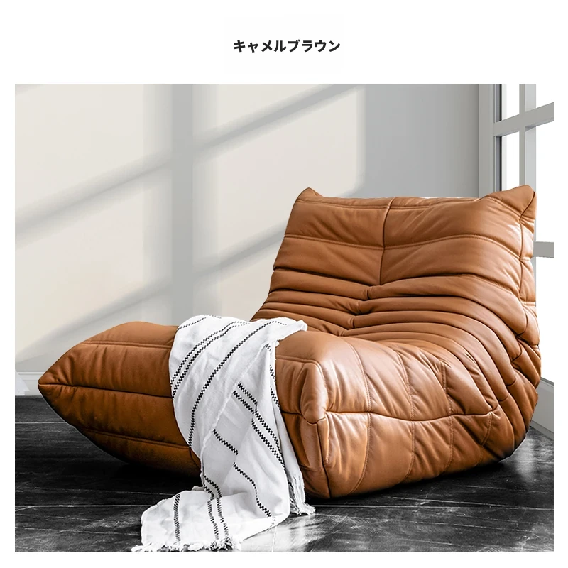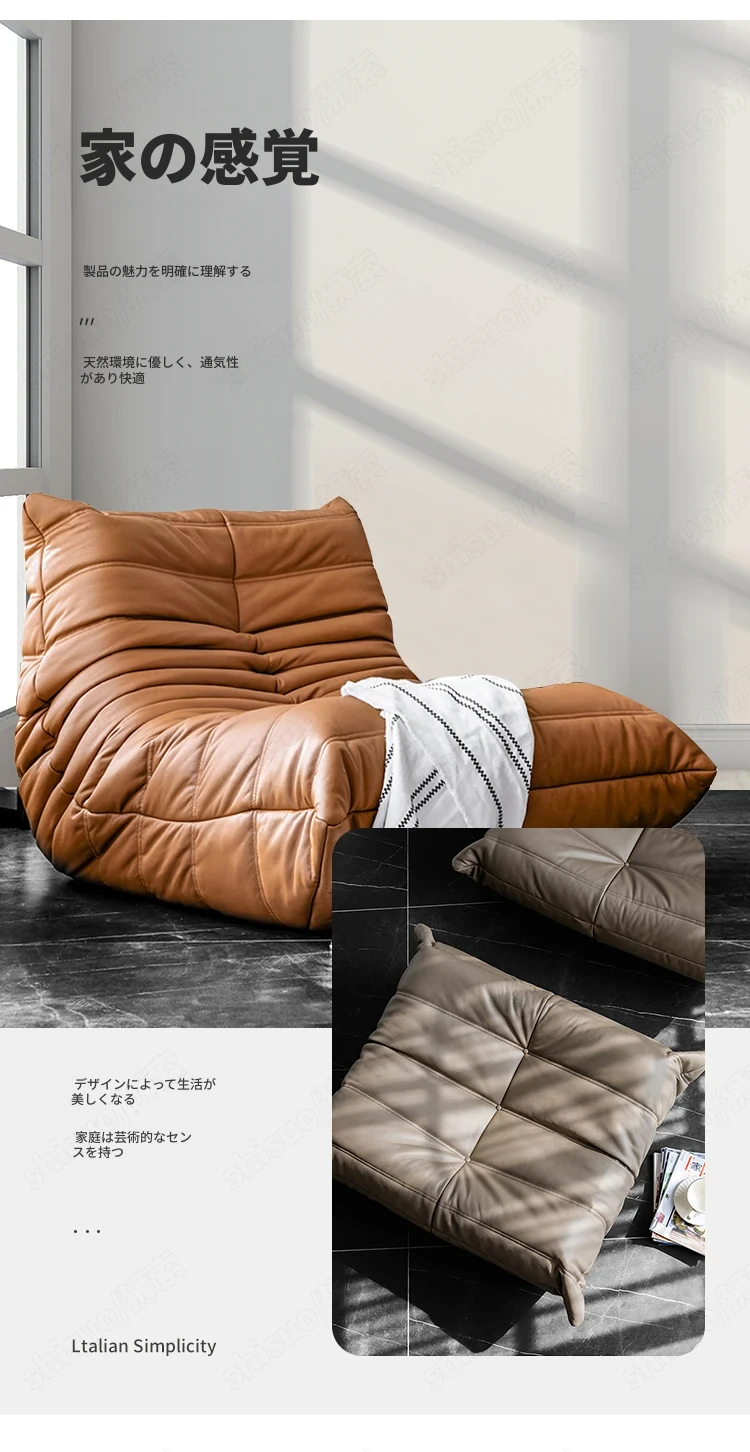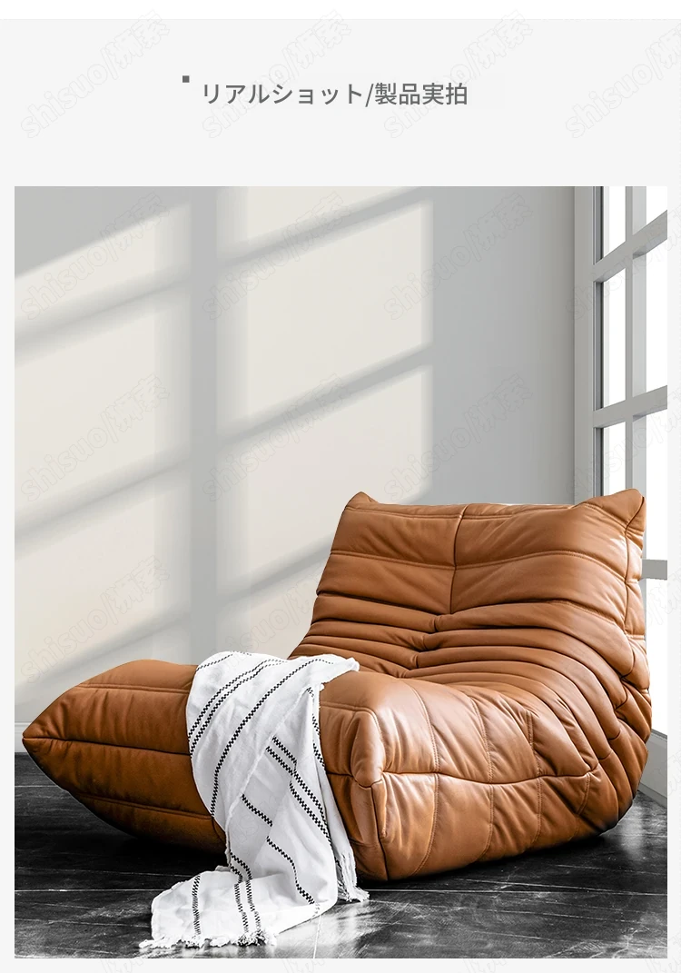 TOGO毛虫型ラウンジチェア - イタリア製本革デザイン、極上のリラックスを実現!ミニマルなスタイルの快適な一人掛けソファで、あなたのリビング空間をおしゃれに演出します。