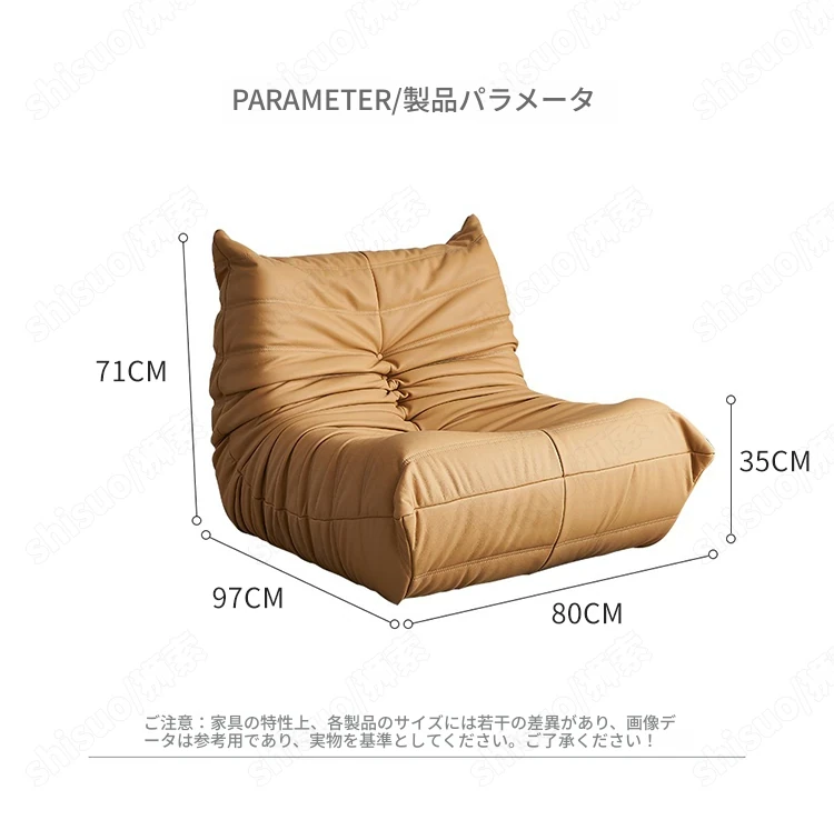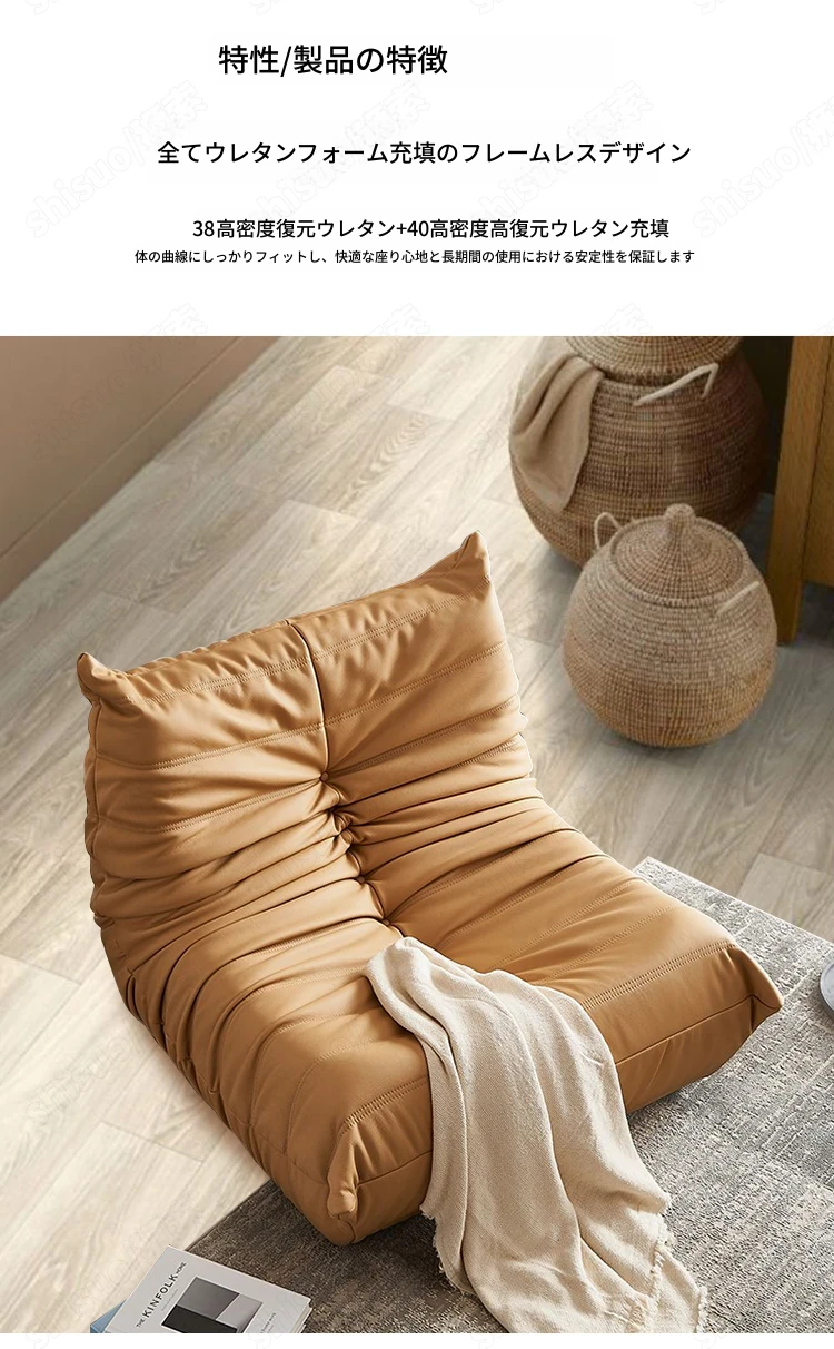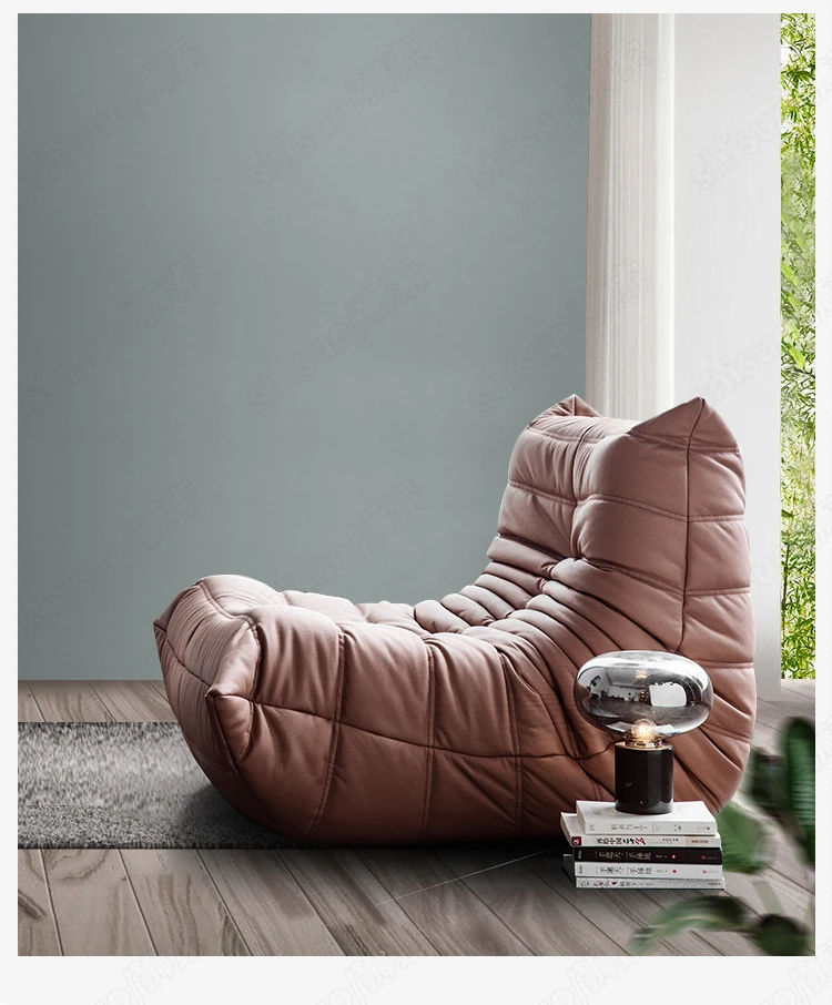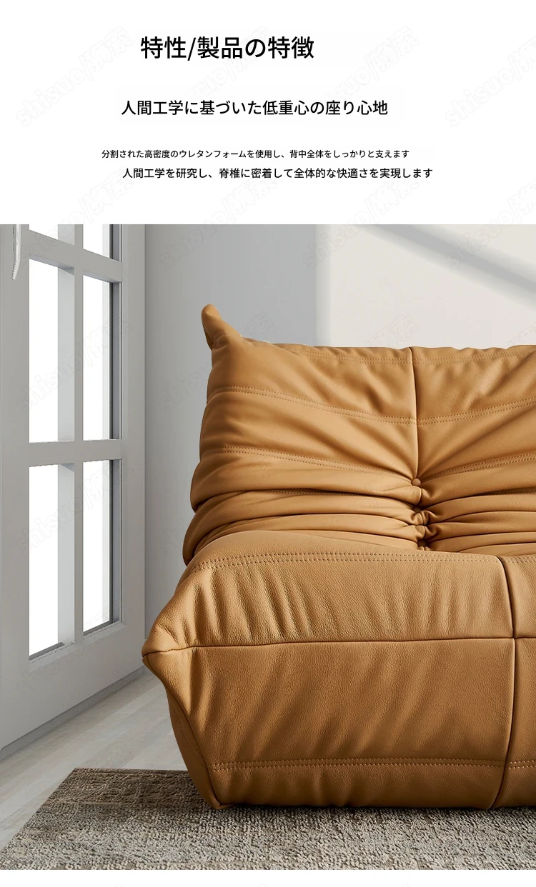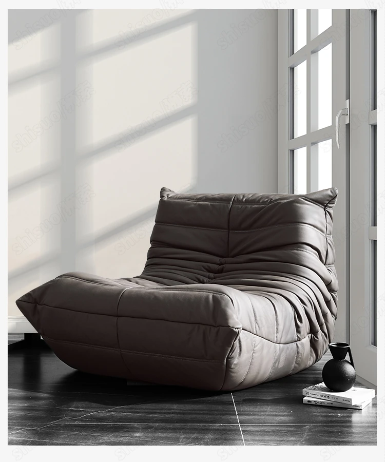 TOGO毛虫型ラウンジチェア - イタリア製本革デザイン、極上のリラックスを実現!ミニマルなスタイルの快適な一人掛けソファで、あなたのリビング空間をおしゃれに演出します。