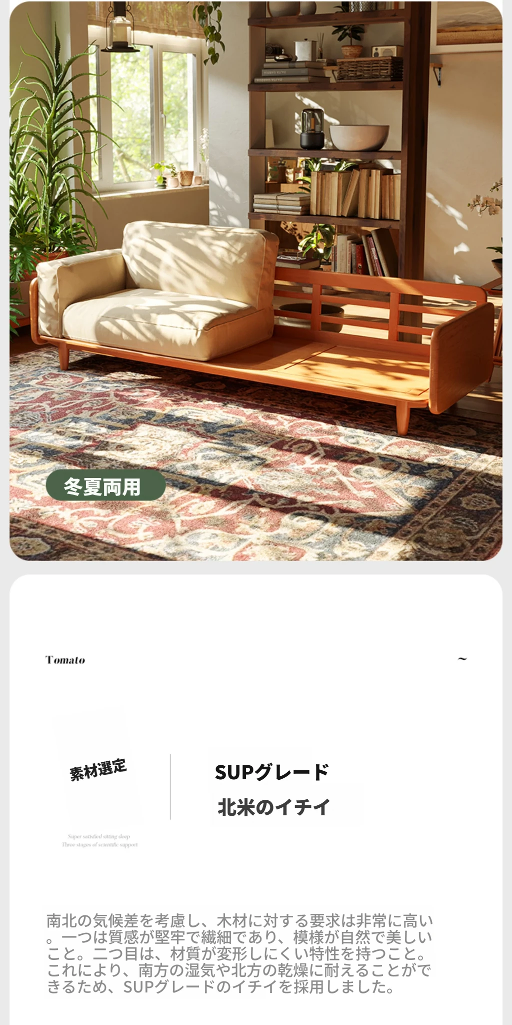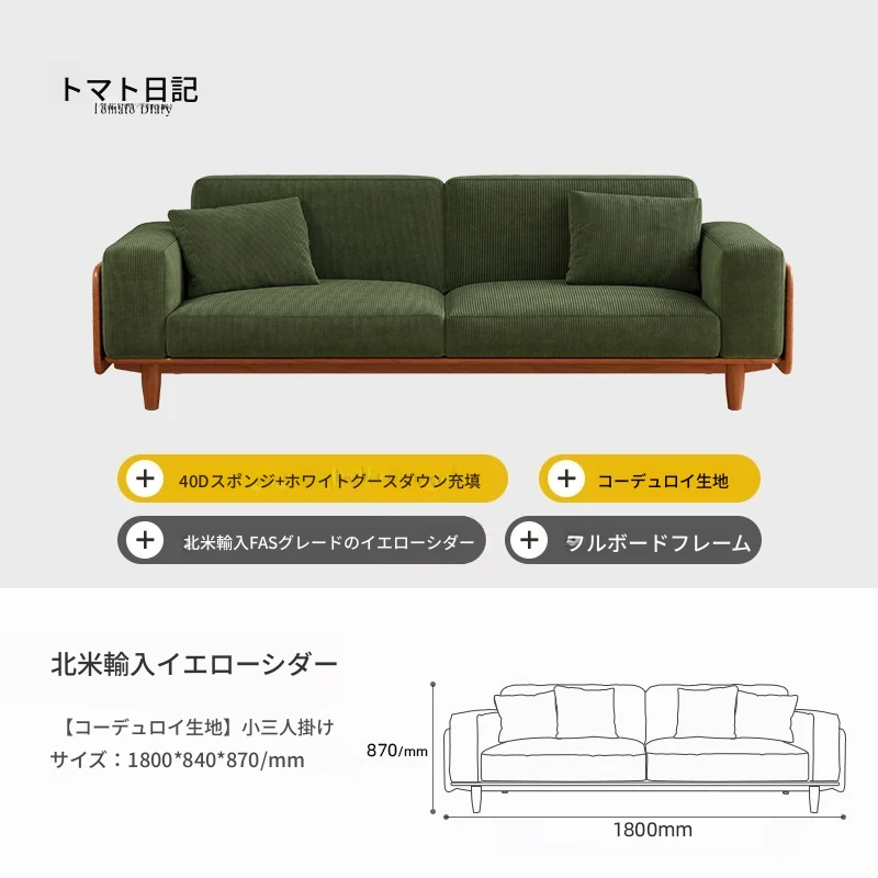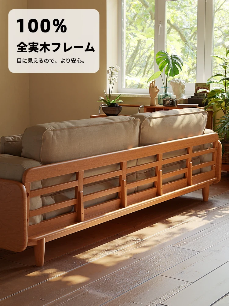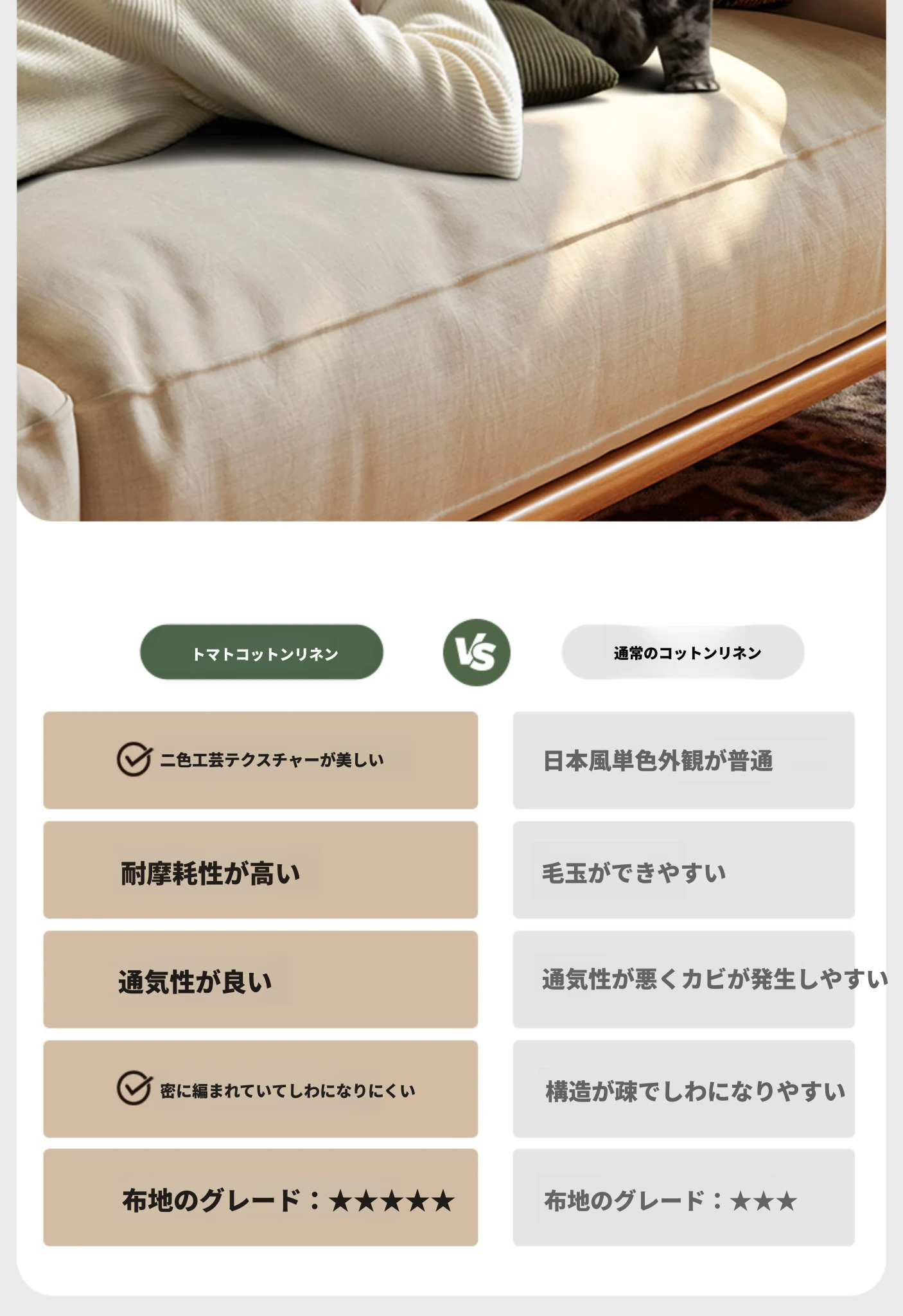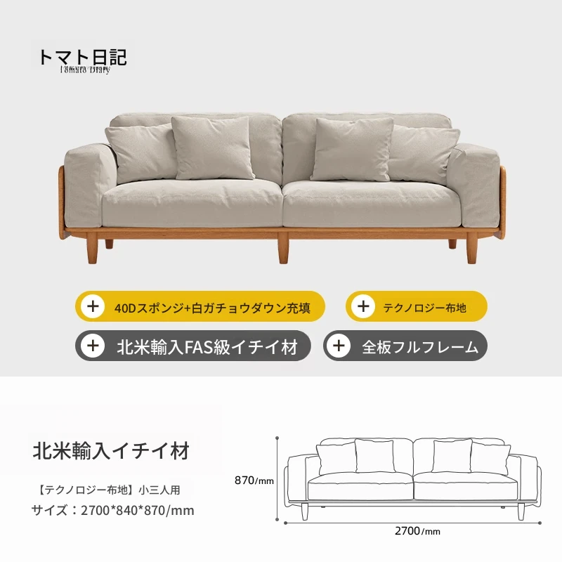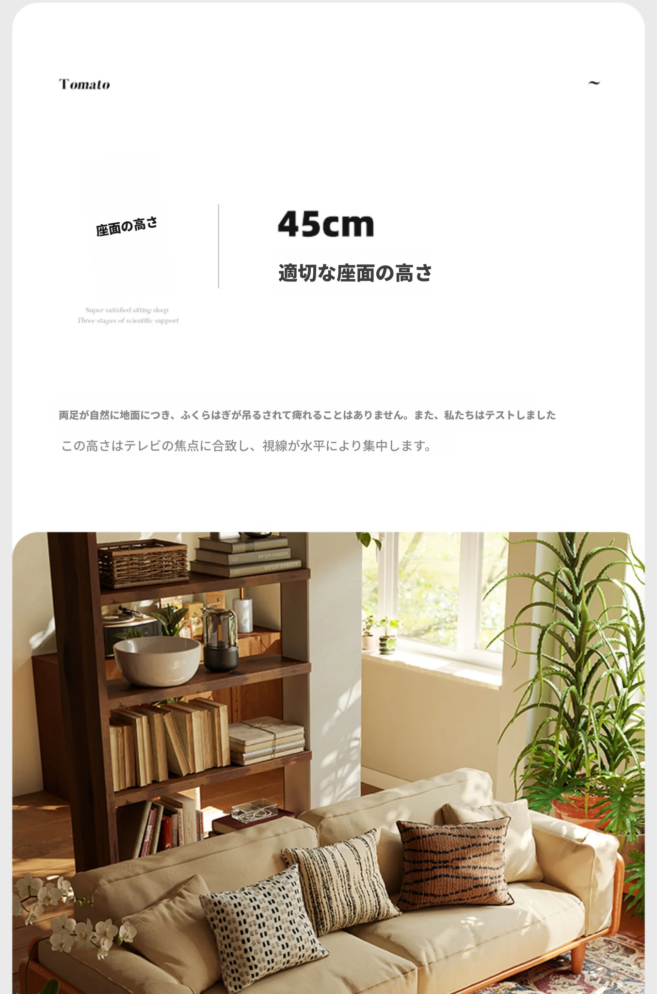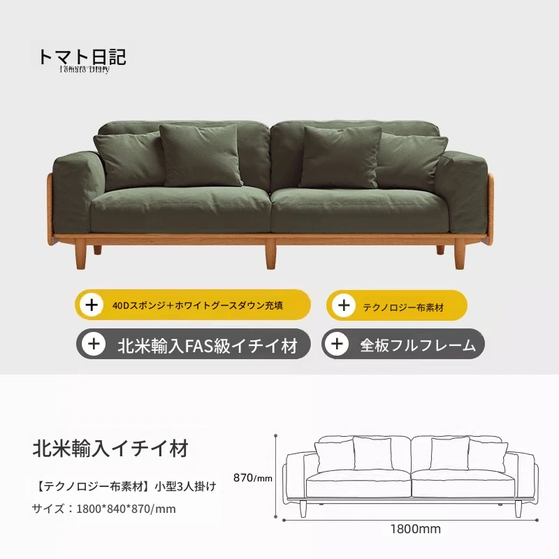 トマト日記 オシャレな北欧スタイルの本革&麻混合ソファ 小型住宅に最適な実木製リビングソファ 自然素材の温もりを感じる、快適な空間を演出!