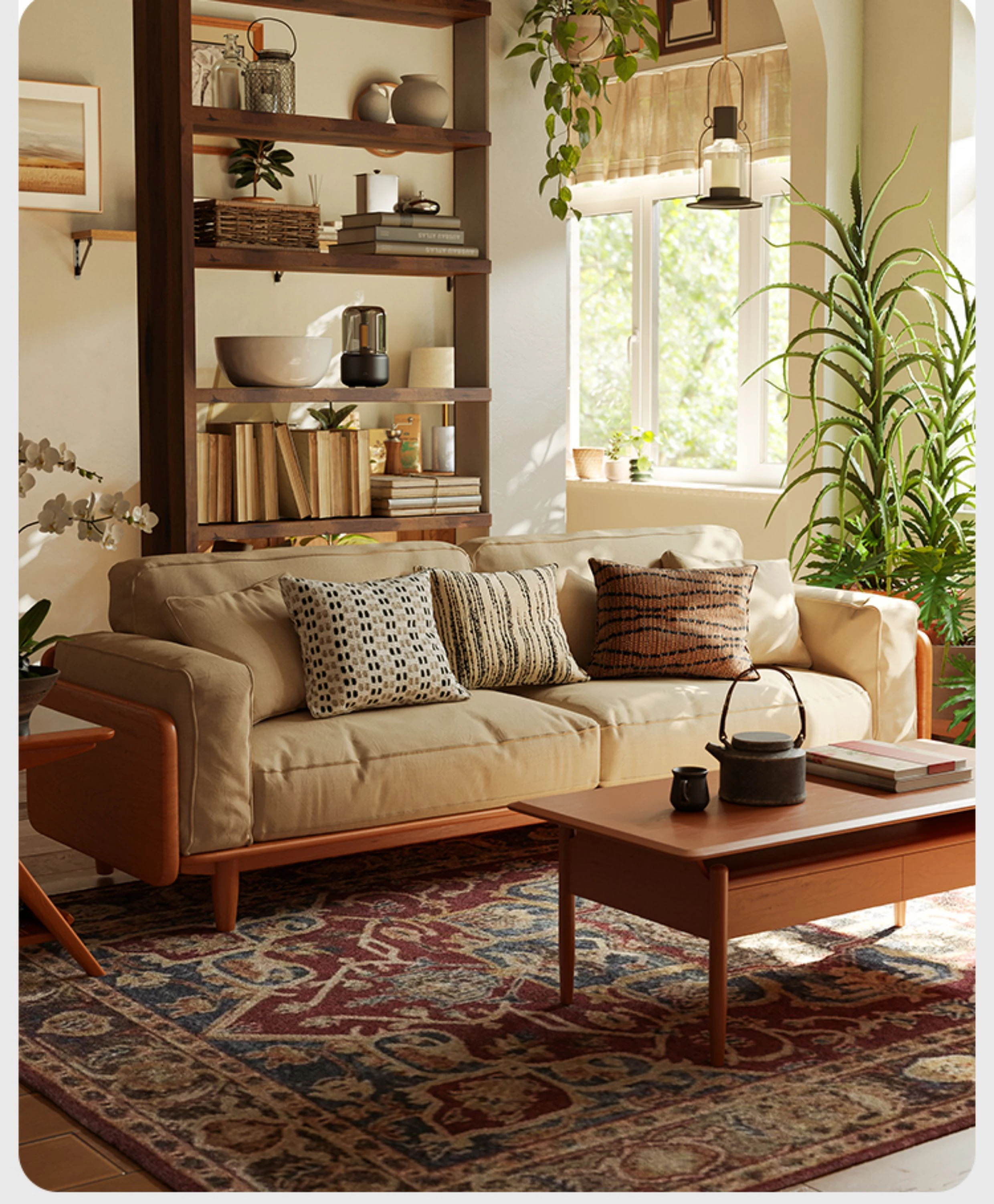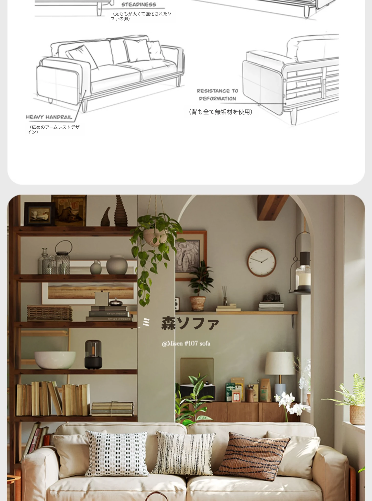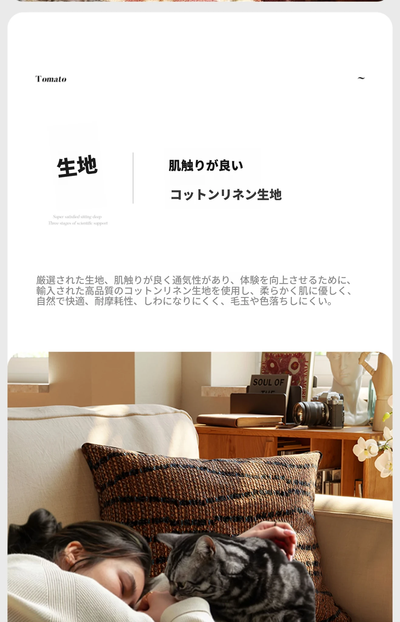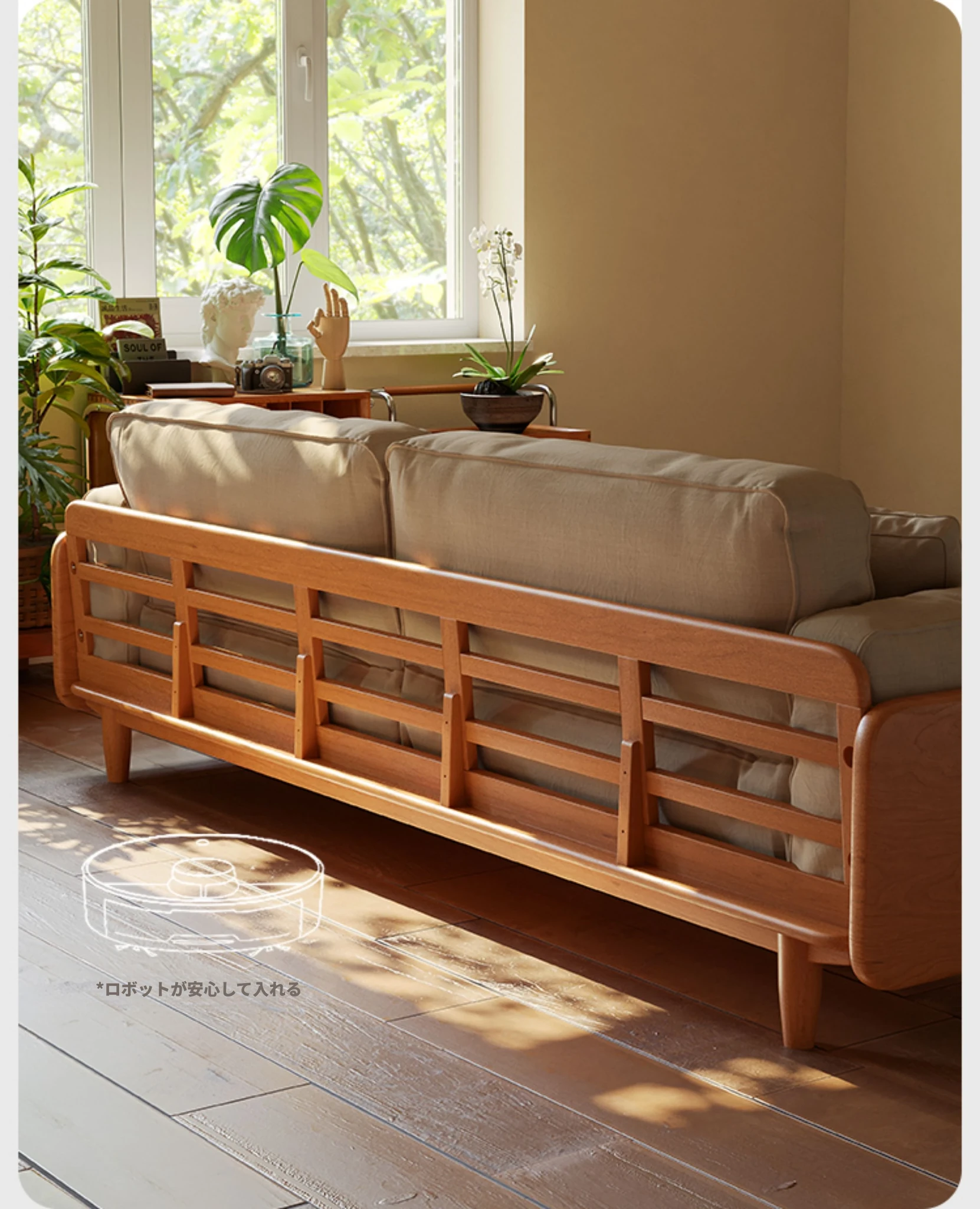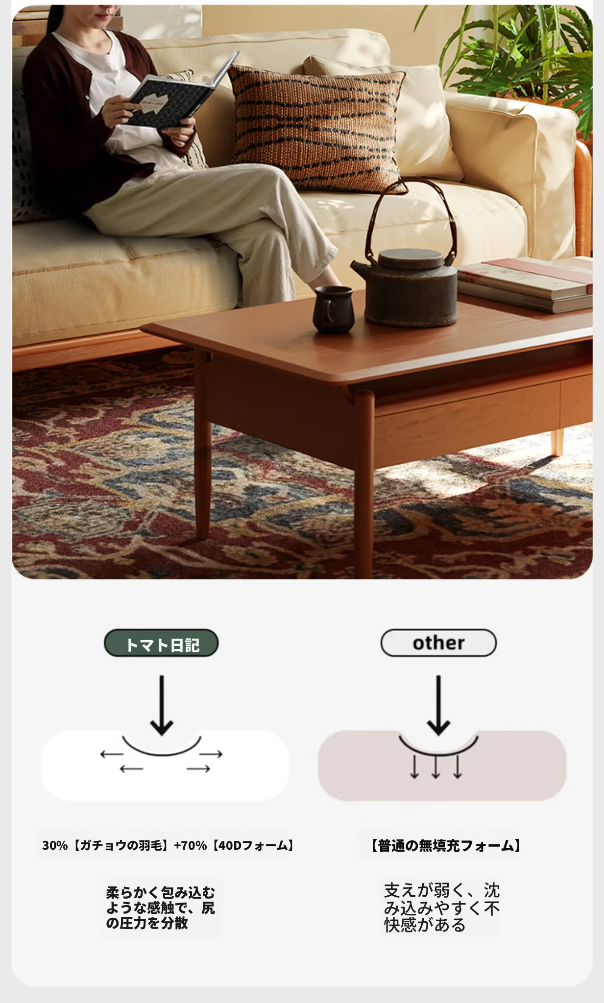 トマト日記 オシャレな北欧スタイルの本革&麻混合ソファ 小型住宅に最適な実木製リビングソファ 自然素材の温もりを感じる、快適な空間を演出!