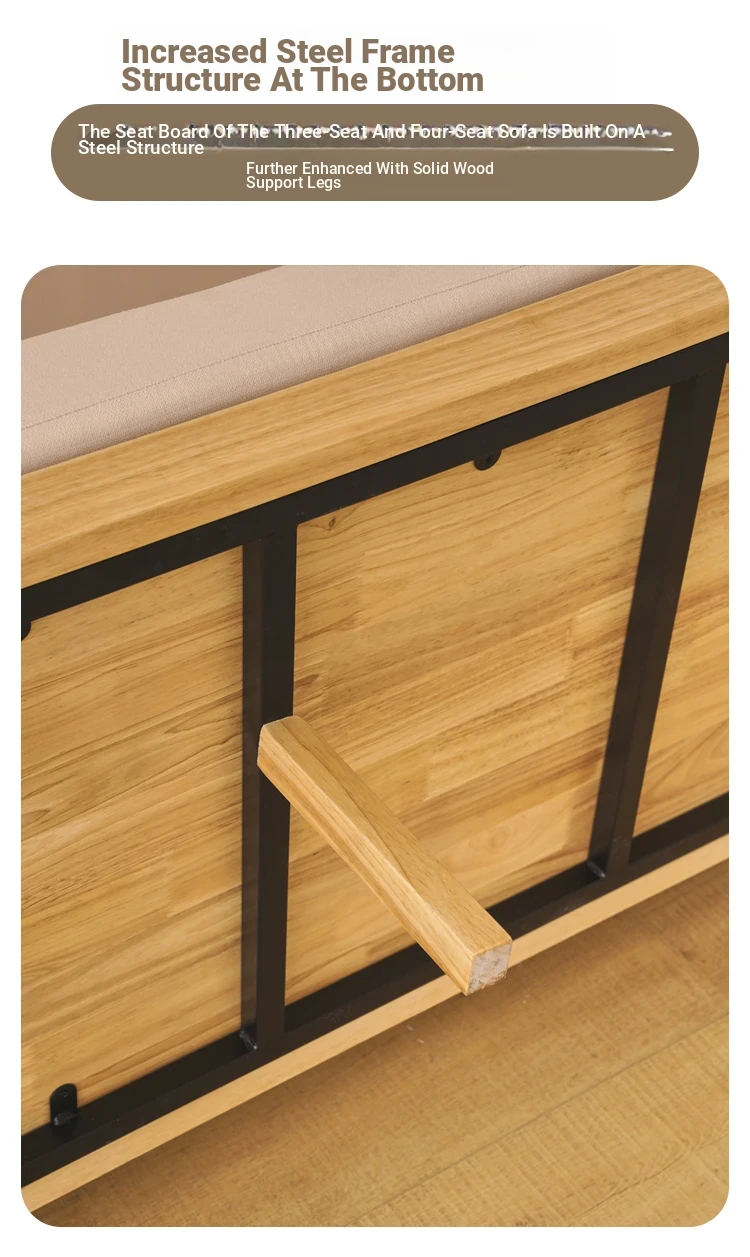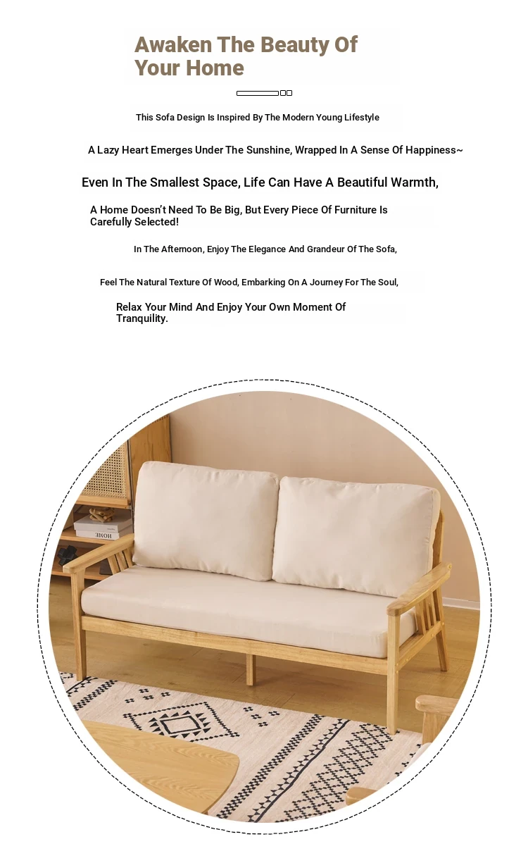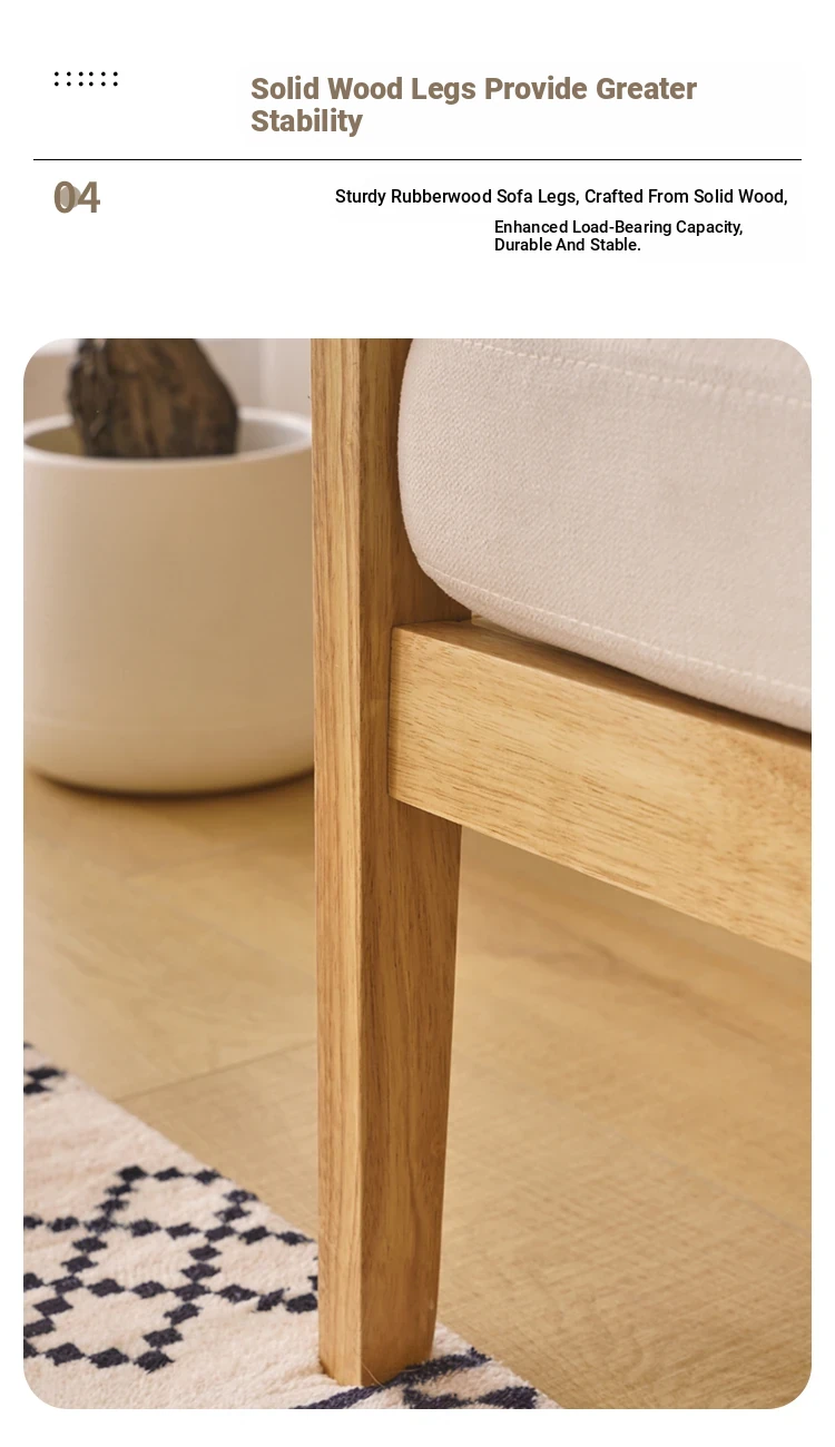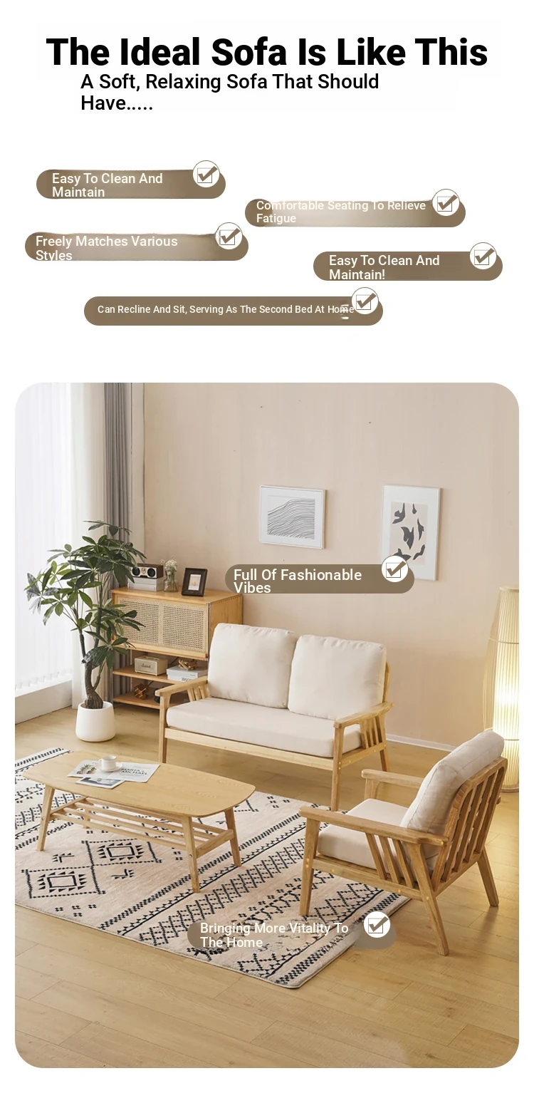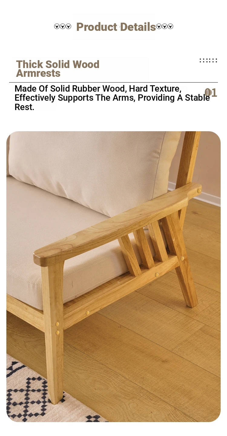 "Versatile Solid Wood Fabric Sofa Set for Small Living Rooms - Double Three-Person Combination, Washable, in Natural Wood Color for Year-Round Comfort"