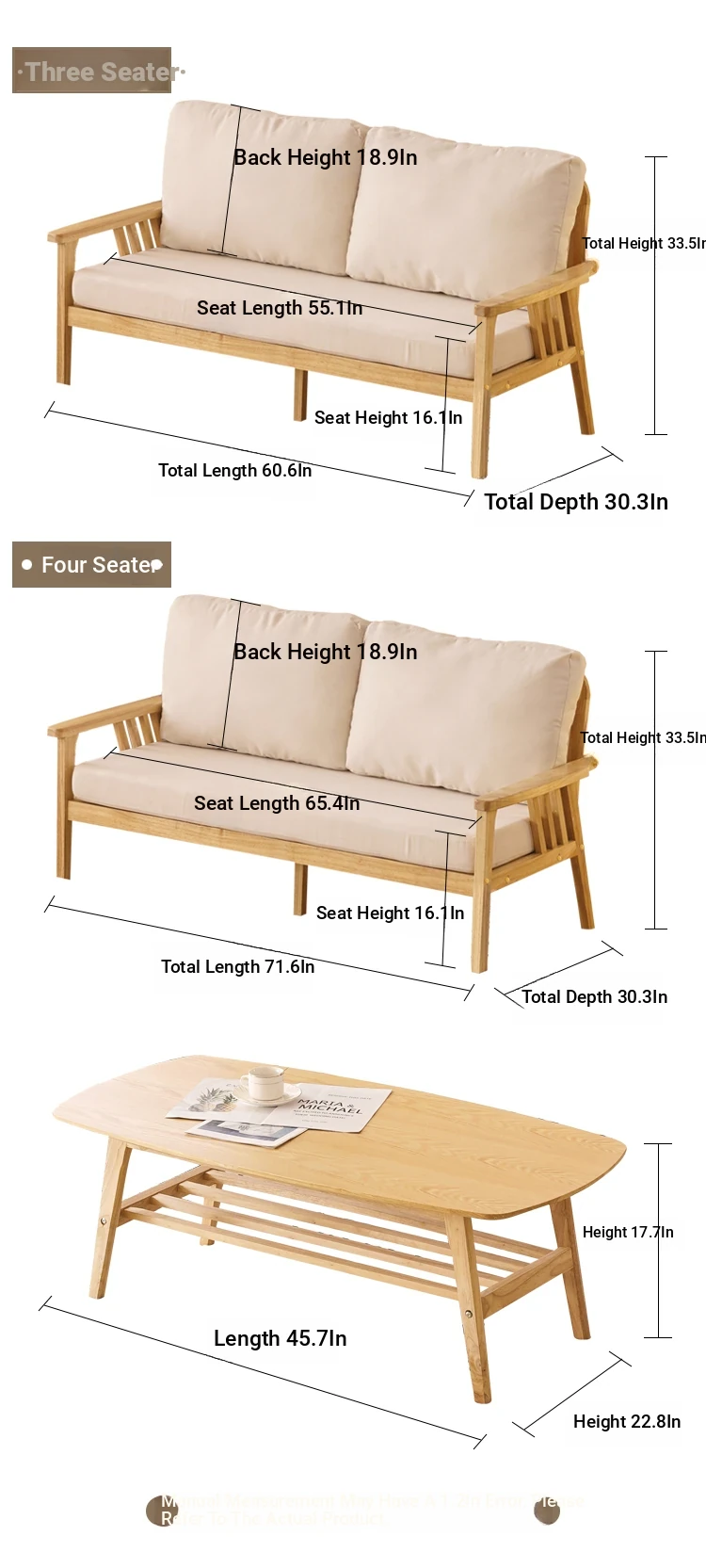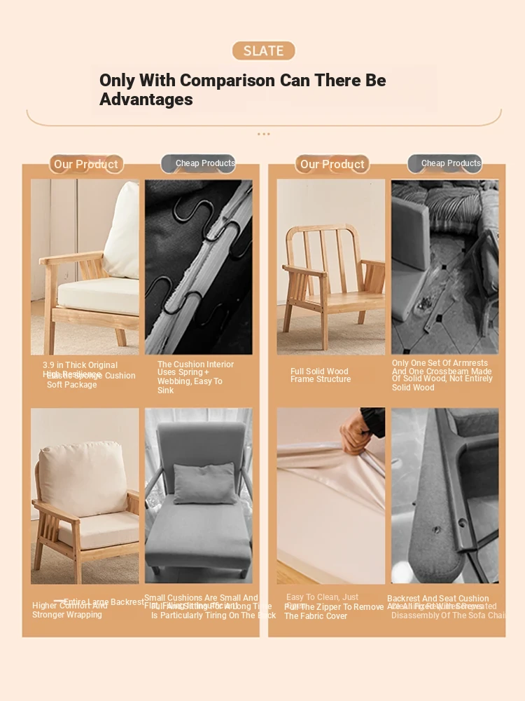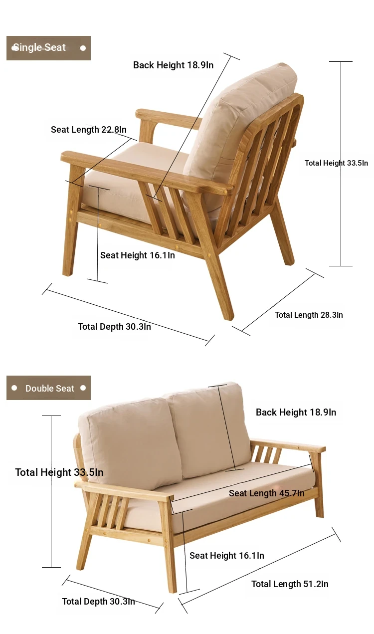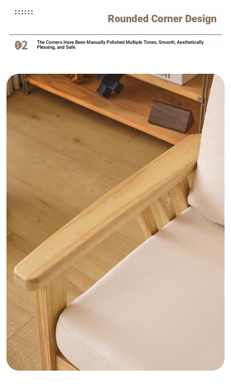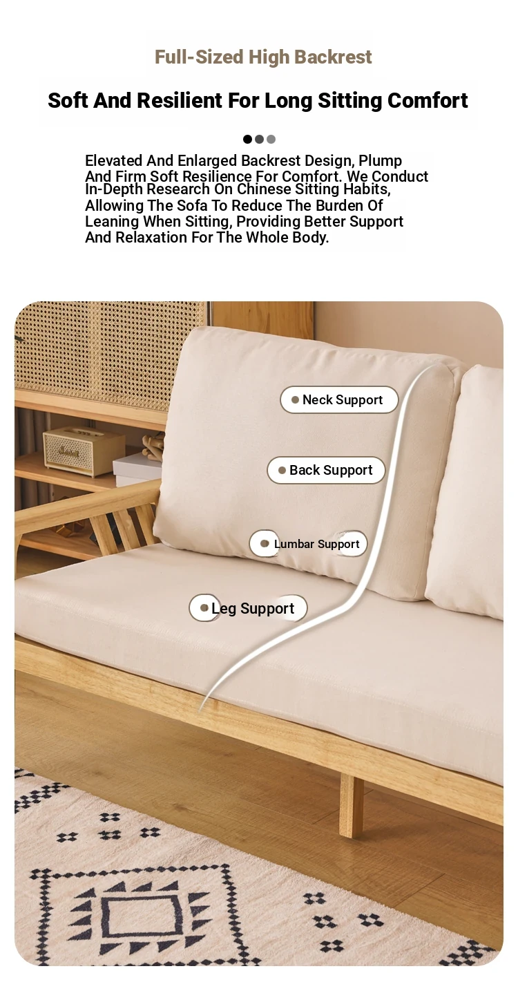 "Versatile Solid Wood Fabric Sofa Set for Small Living Rooms - Double Three-Person Combination, Washable, in Natural Wood Color for Year-Round Comfort"