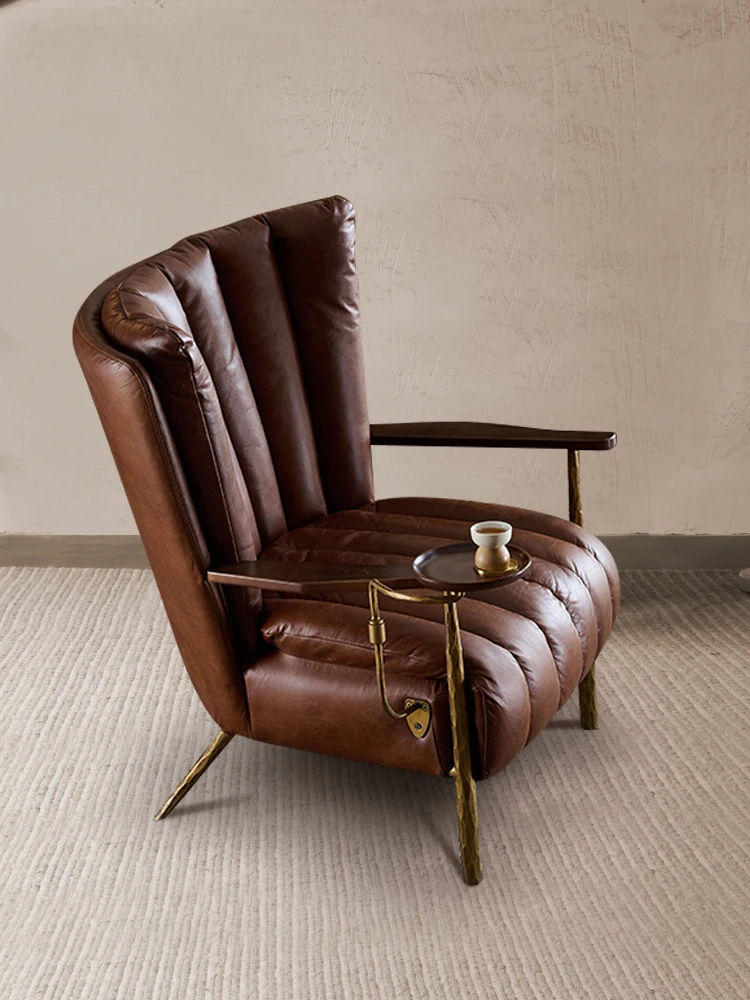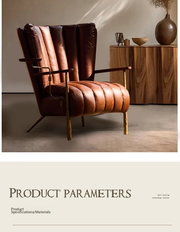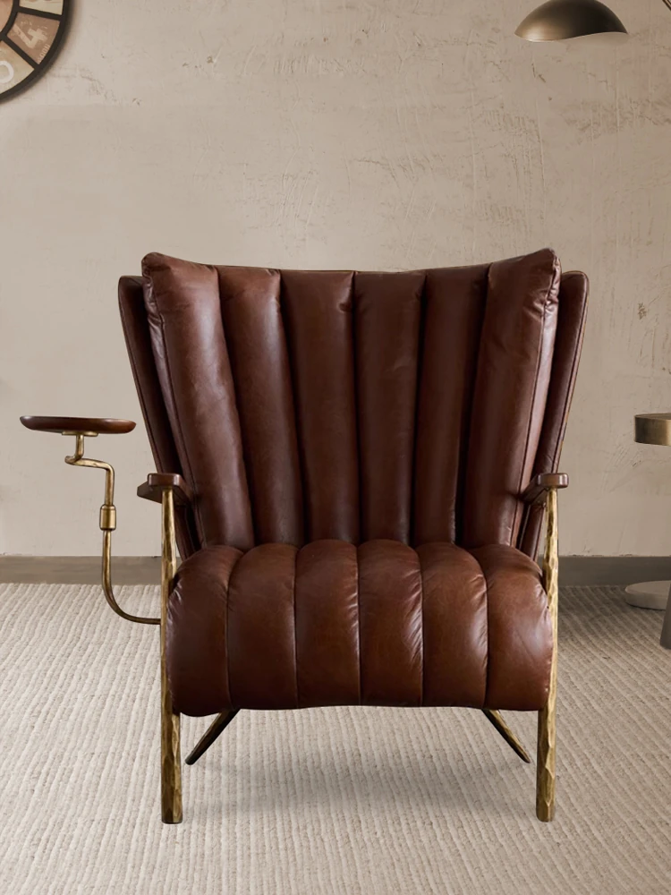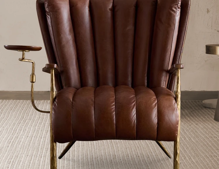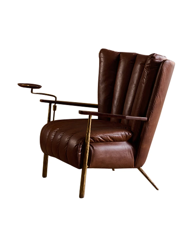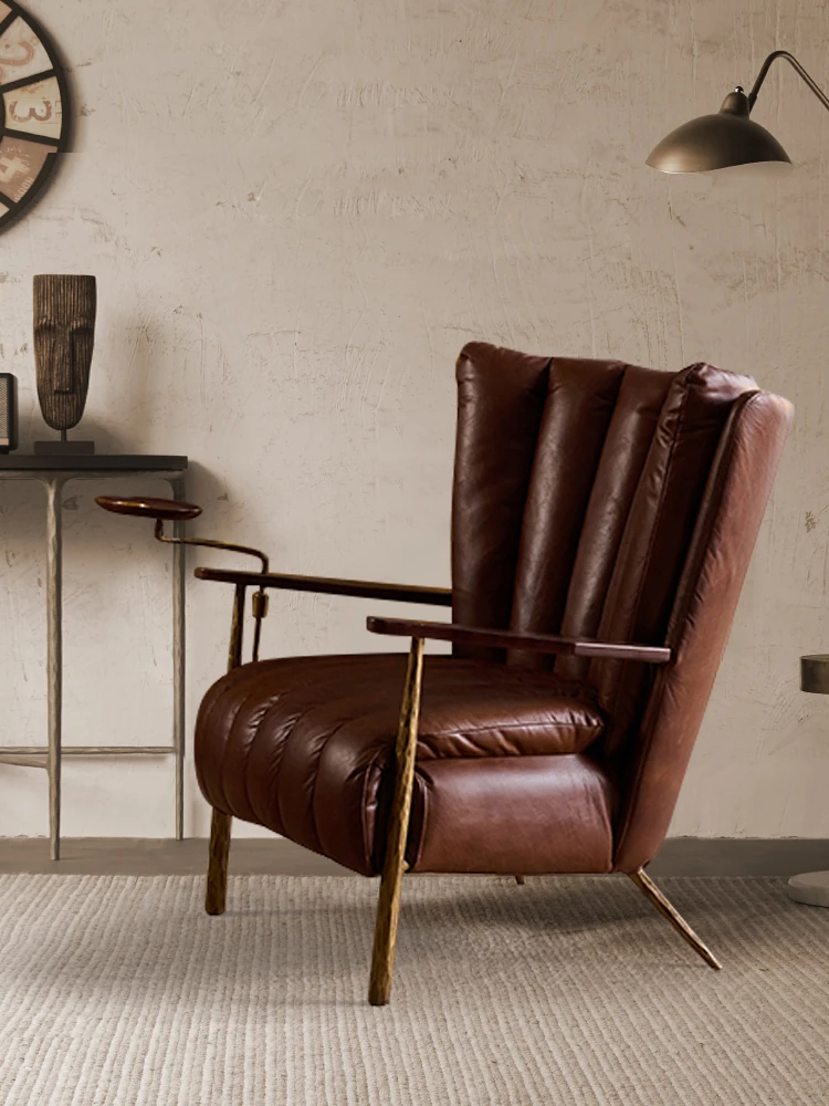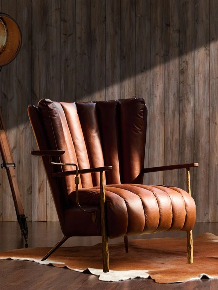 Vintage-Style Harp Back Cigar Godfather Chair - Genuine Leather Oil Wax Chaise Lounge, Hand-Forged Design, Designer Armchair for Relaxation and Elegance.