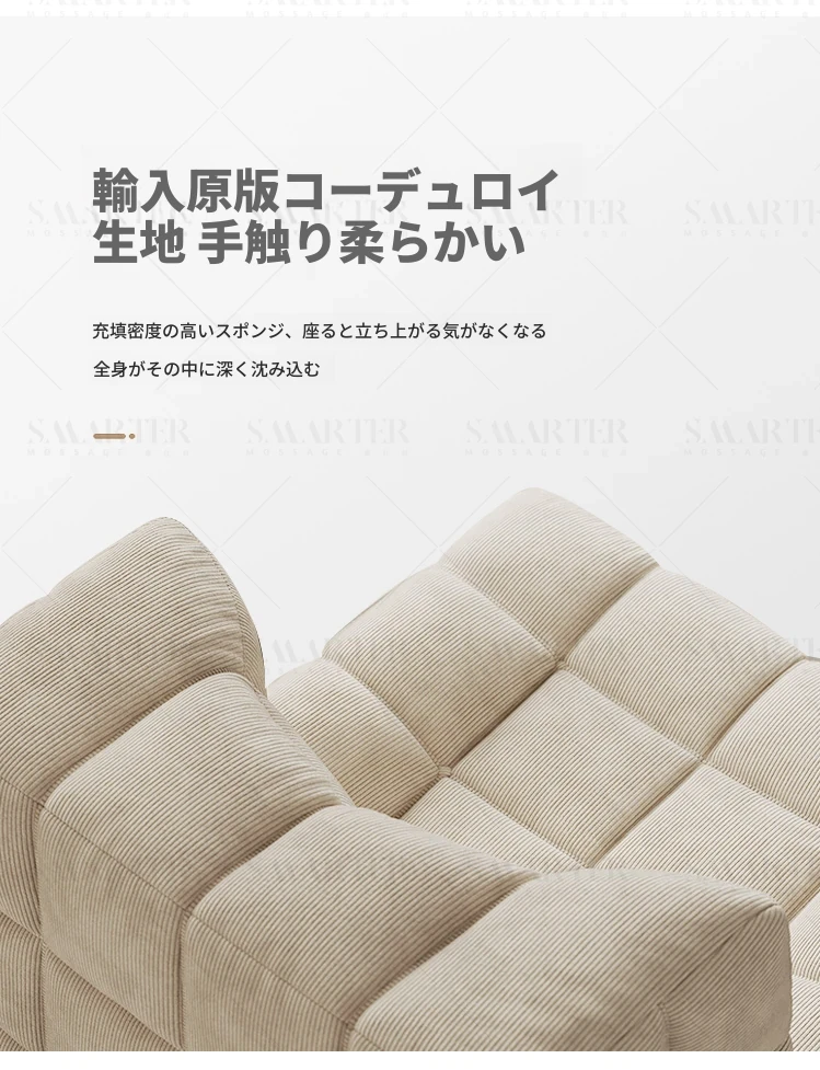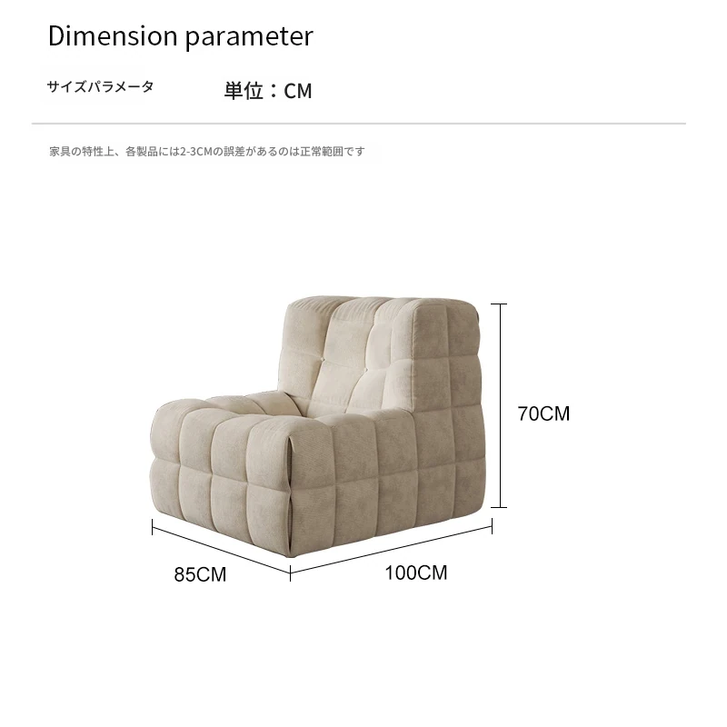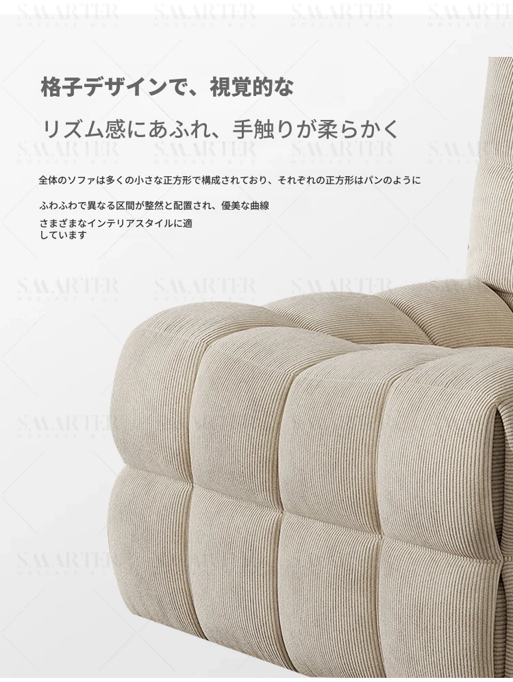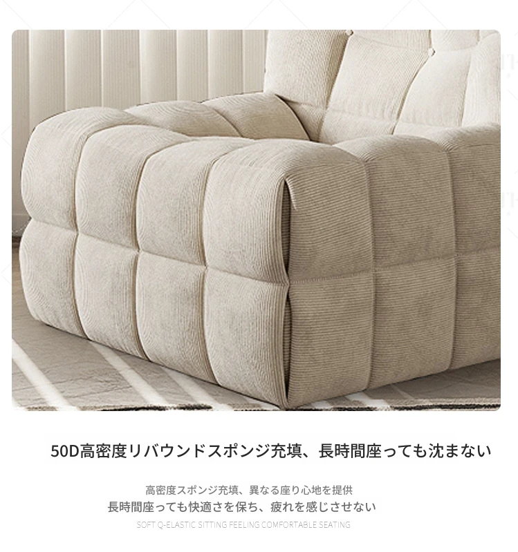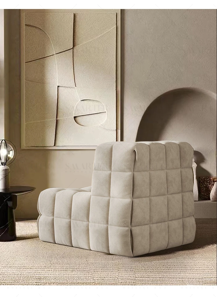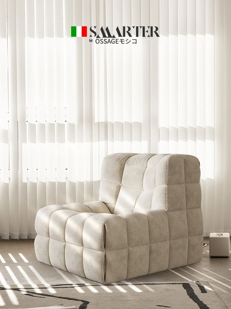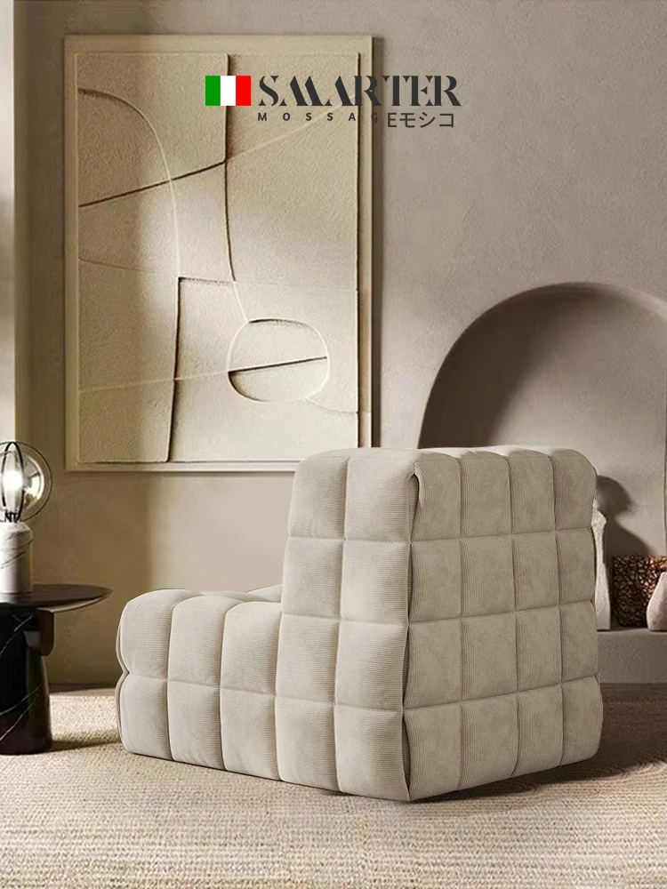 ワッフル鹿島ソファチェア - イタリアンミニマリズムデザインのリラックスチェア、くつろぎのひとときを提供する豆腐ブロックスタイルのクリーム風単独椅子。あなたのリビングルームにぴったりのデザインです!