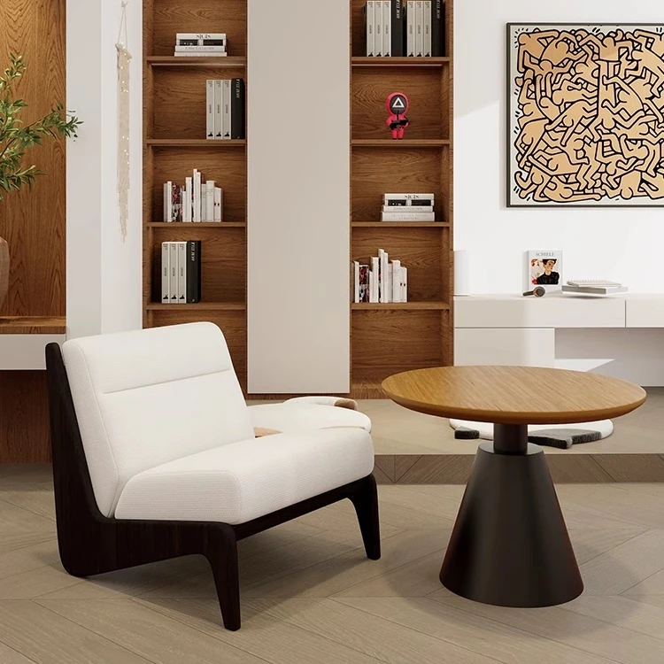 シンプルでスタイリッシュな一人用ソファチェア - リビングルームや書斎、カフェ、ホテル、民宿に最適!心地よい実木製、バルコニーやティーテーブルにぴったりなコンビネーション。リラックスした時間をお楽しみください!