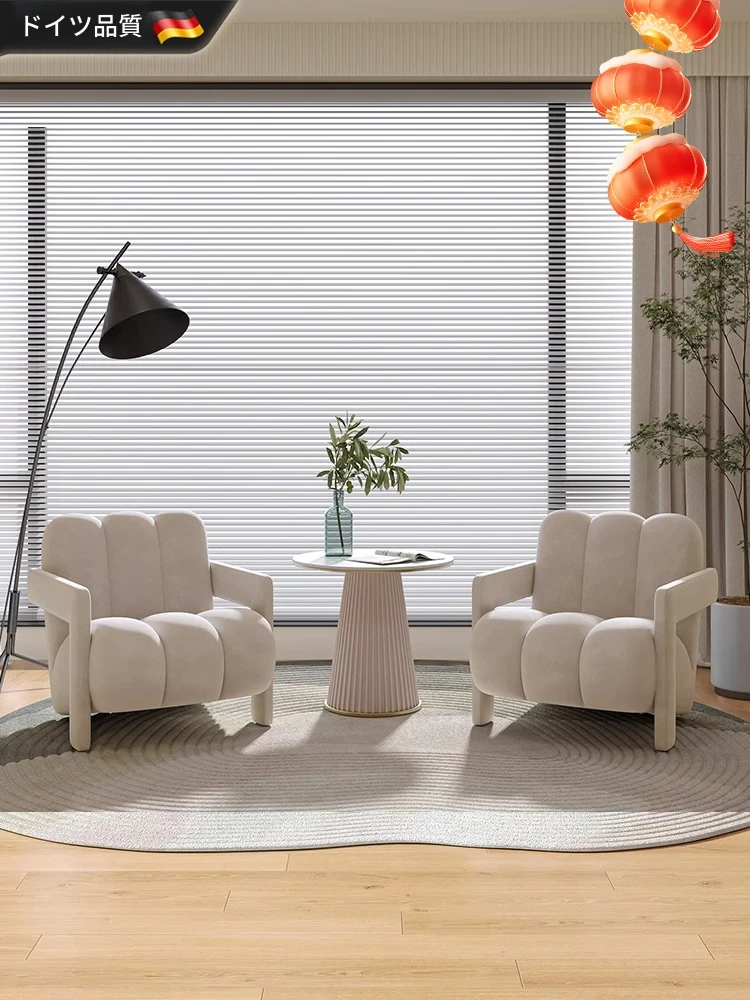 ドイツ製クリーム風リビングモダンミニマリスト一人掛けソファチェア、リラックスチェア、デザイナーの怠け者用、家庭用ラムフリース素材で贅沢なくつろぎを実現!