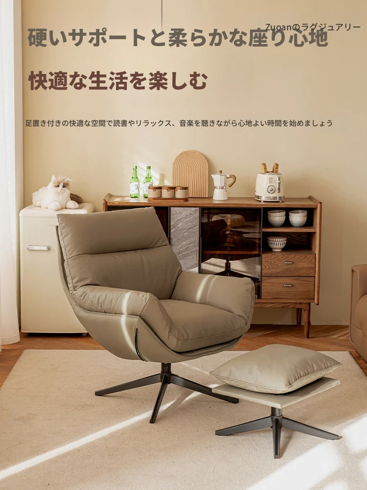 高級リビング用回転リクライニングチェア - ラグジュアリーな本革製、快適さとスタイルを兼ね備えた一人用リラックスチェア。洗練されたローレンスソファチェアで、あなたの贅沢な空間を演出!