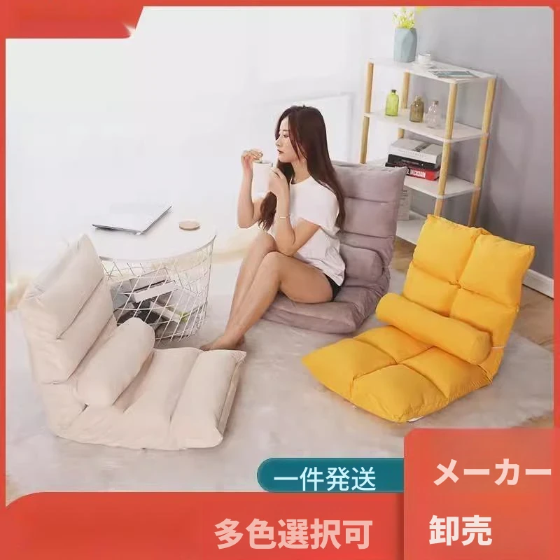 リラックスできる一人用ソファ|畳の部屋やバルコニーに最適|可愛い折りたたみ式フロアチェア|寝転んでも快適な背もたれ付き|寮や小さなお部屋にぴったり!
