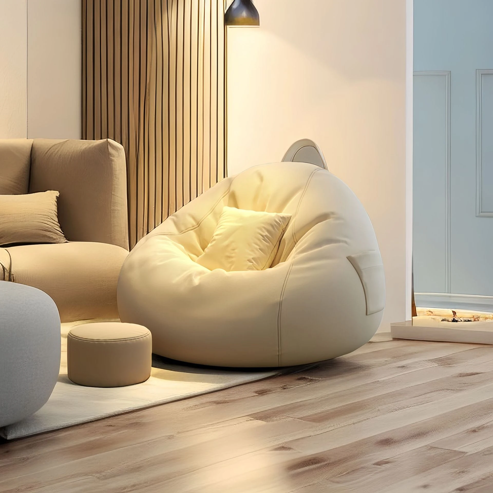 超大型ラウンジソファ!一人用も二人用も可能な豆型クッション、タタミスタイルのリラックスチェア。狭い部屋でもぴったりフィット!人気のインフルエンサー推奨、快適な睡眠とくつろぎの空間を実現します。