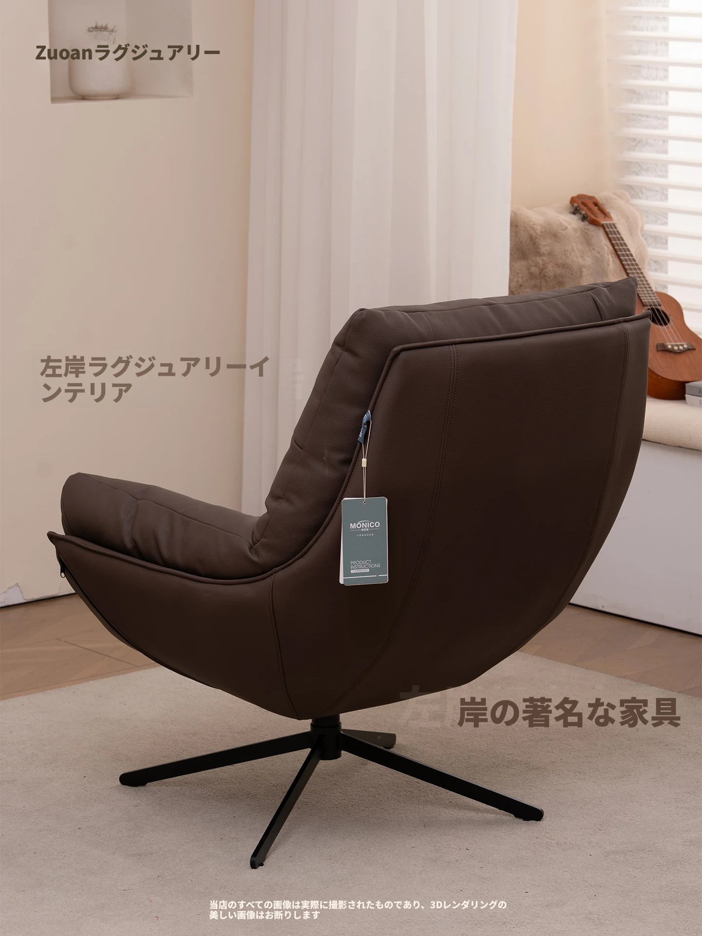 ラウレンス高級レザー回転一人掛けソファ - リビングルームやバルコニーに最適な軽やかなラグジュアリー。おしゃれなデザインで、快適さとスタイルを両立した一品。