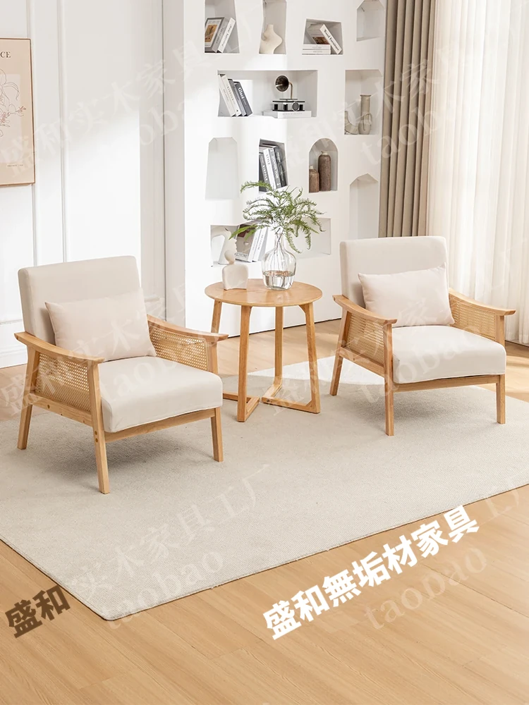 北欧スタイルのシンプルな無垢材ソファチェア – 民宿やホテルのモデルルームにぴったり!侘寂の美学を取り入れたクリエイティブなファブリックリクライニングチェアで、リラックスしたひとときをお楽しみください。