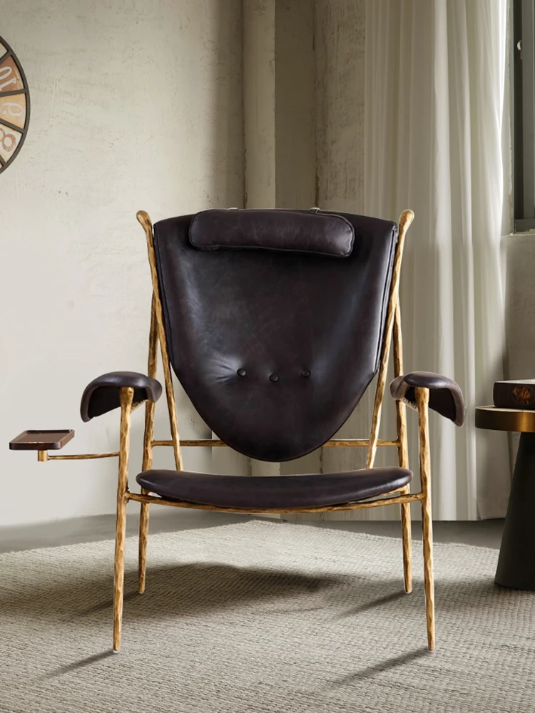 イタリアン古式鍛造エルクの椅子 輸入オイルワックスレザー デザイナーによるレトロミニマリストのリラックスチェア リビングルームソファの椅子で、スタイリッシュな空間を演出します!